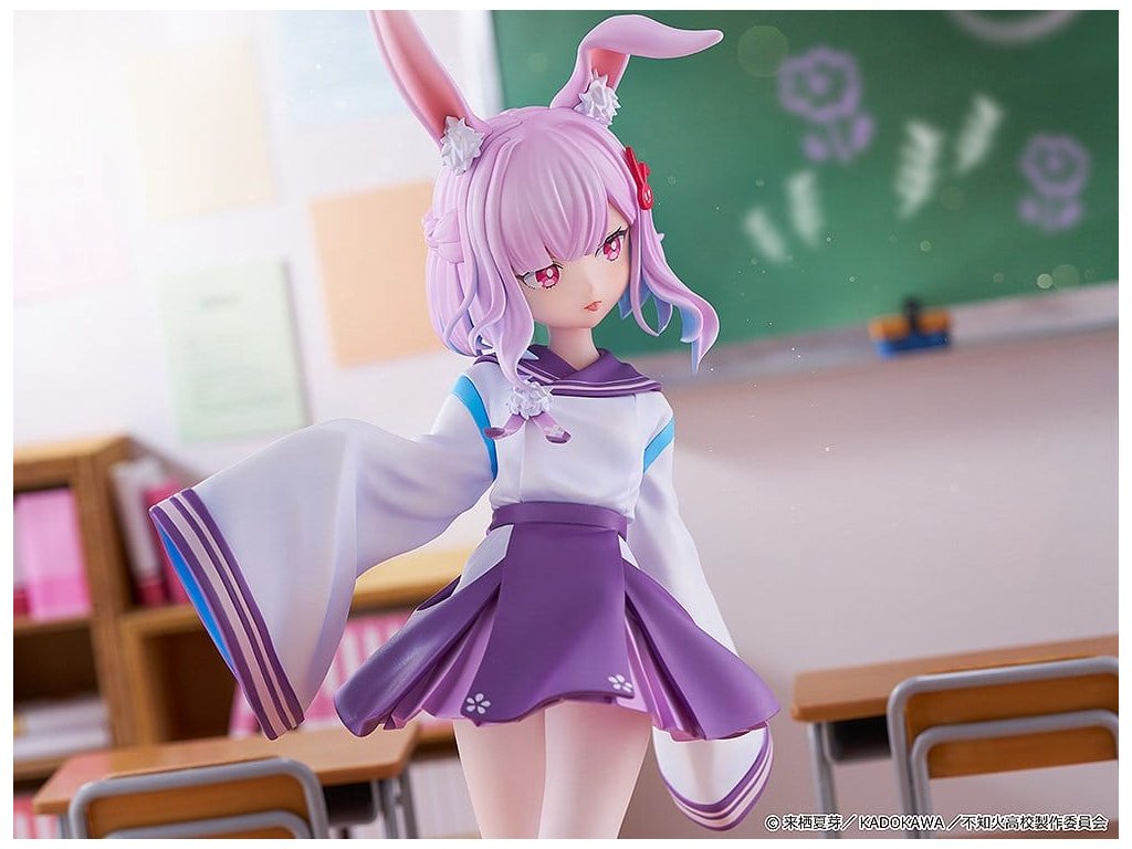 Sui Usami, králíčí studentka z TV anime série 'Misanthrop učí hodinu pro Demi-Lidi', byla ztvárněna jako mírně velká figura v měřítku 1/6! Obdržela unikátní pózu speciálně pro tuto figurku, kde je zachycena v okamžiku, kdy ladně skáče. Její chlupaté, dlouhé uši a ocas, a dokonce i její dvoubarevné vlasy vlnící se na větru, byly pečlivě rekreovány. Byly také detailně zreprodukovány textury jejího ikonického širokorukávního unifornu a svítivých bílých punčocháčů, a její rošťácký výraz, když vyplazuje jazyk s provokativním pohledem, plně vynáší její jedinečný šarm. Určitě přidejte do své sbírky tuto verzi Sui Usami, králičí dívky, která si přeje stát se lidskou. Orientační datum vydání: prosinec 2026