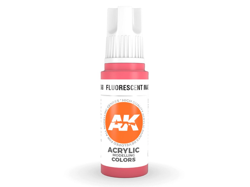Akrylová barva Fluorescent Magenta od výrobce AK Interactive je vhodná pro nanášení štetcem i airbrushem. Akrylové modelářské barvy 3. generace (3Gen) jsou doposud nejpropracovanější recepturou akrylových barev. Barvy General Series mají vynikající krytí, úžasnou přilnavost a nové složení zabraňuje ucpávání trysky bez nutnosti barvy zdlouhavě rozmíchávat.