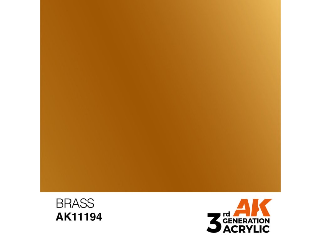 Akrylová barva Metallic Brass od výrobce AK Interactive je vhodná pro nanášení štetcem i airbrushem. Akrylové modelářské barvy 3. generace (3Gen) jsou doposud nejpropracovanější recepturou akrylových barev. Barvy General Series mají vynikající krytí, úžasnou přilnavost a nové složení zabraňuje ucpávání trysky bez nutnosti barvy zdlouhavě rozmíchávat.