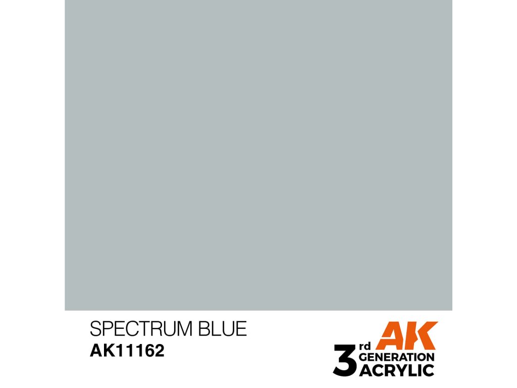 Akrylová barva Spectrum Blue od výrobce AK Interactive je vhodná pro nanášení štetcem i airbrushem. Akrylové modelářské barvy 3. generace (3Gen) jsou doposud nejpropracovanější recepturou akrylových barev. Barvy General Series mají vynikající krytí, úžasnou přilnavost a nové složení zabraňuje ucpávání trysky bez nutnosti barvy zdlouhavě rozmíchávat.