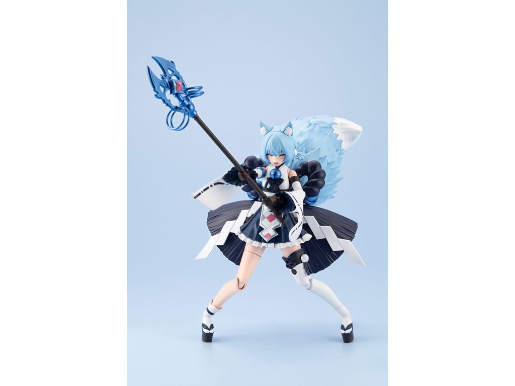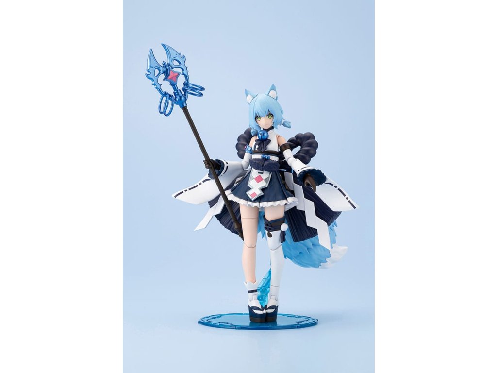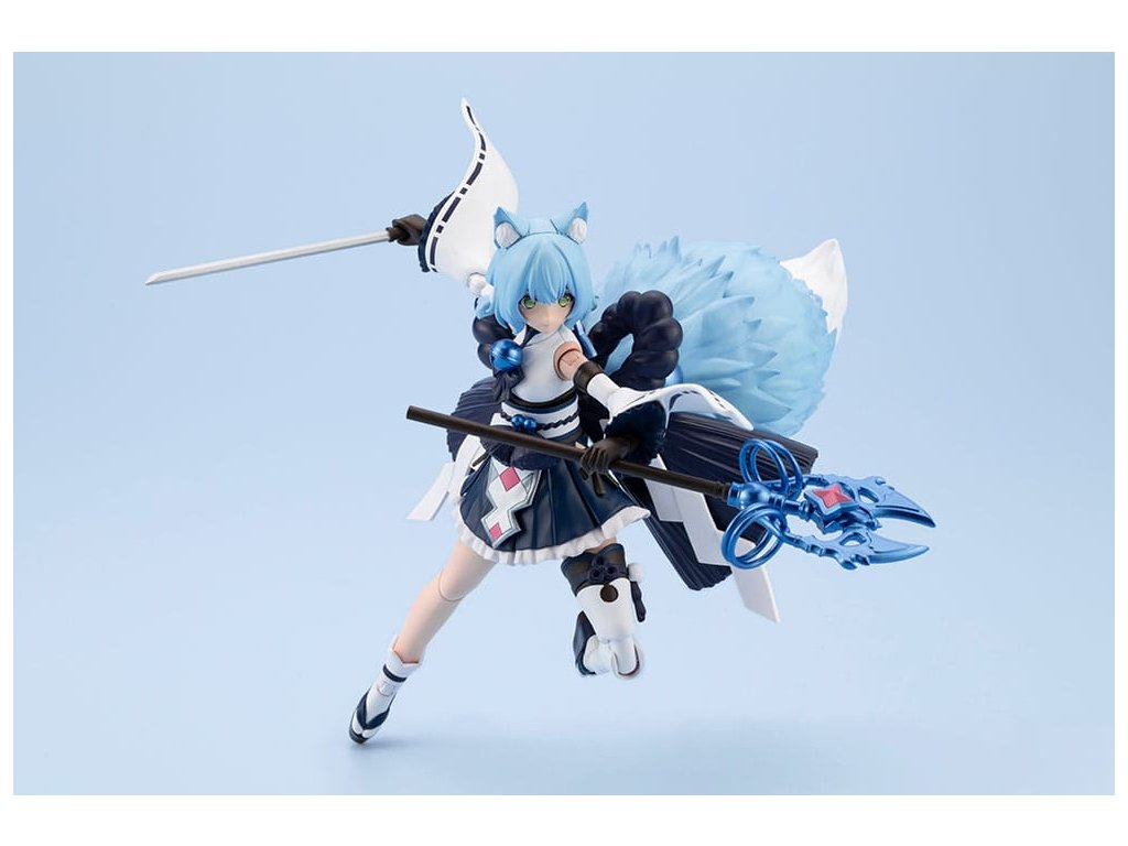 Představujeme třetí model v sérii ReACT, kde postavy znovu vystupují s naprosto novým prvkem! Z série ARCANADEA je zde znovu zvířecí Dears, Yukumo, v zcela nové sněhem inspirované "vodní verzi" s Yukumo ReACT-C. S čtyřmi novými částmi obličeje nabízí Yukumo ReACT-C zcela odlišnou postavu od původního Yukuma. Výměnou určitých částí lze model sestavit v "normálním režimu" nebo v "režimu Wilize" při boji. Model je vybaven několika 3mm spoji, což ho činí kompatibilním s díly z ostatních původních sérií Kotobukiya. Součástí balení a vlastnosti: - model lze sestavit v "normálním režimu" nebo v "režimu Wilize" výměnou určitých částí. - Souprava obsahuje čtyři tváře, které byly předtištěny pomocí tampografie (boční oko, pláč, křik a hvězdné oči). - Pro uživatele jsou k dispozici dekály, aby si mohli vytvořit svůj oblíbený výraz. - Oba boční copánky jsou propojeny s kloubem, což umožňuje nezávislé pohyby. - Souprava obsahuje kroužkovou část (límec) pro zapojení s Yukumo. - Kruhová spojovací část na jejím zádech má HEXA G-R.A.M kloub s 3mm spojovacím bodem uprostřed a je vyměnitelný s dalšími magickými díly z série ARCANADEA. - "Shimenawa" lano se táhne po stranách jejích zad je připojeno pomocí kloubu u základny, což umožňuje jejich přeúhlování. - Zvony a díly proužků papíru "shide" jsou spojeny s lanem "shimenawa" pomocí koulích kloubů, což umožňuje také jejich pohyb. - Normální nožní díly využívají pro koleno vyskakovací spoje, které nejsou viditelné zepředu, když model stojí, čímž se udržuje tvar nohou a zároveň se zajišťuje široký rozsah pohybu. - Součástí je výhradní hůl mnicha. Všechny kroužky na holi lze nezávisle volně posouvat. - Součástí je výhradní mečová zbraň. - Přední strana sukně je složena z oddělených dílů, což umožňuje pohyb bez omezení akcí postavy. - Velký ocas je připojen v pase pomocí kloubu, který umožňuje jeho pózování v synchronizaci s postavou. - Ocas je složen ze tří částí, které lze každou volně pohybovat pomocí spoje koulí. - Špička ocasu v normálním režimu je připojena pomocí kloubu, který umožňuje jeho pohyb o 360 stupňů. - Souprava obsahuje speciální stojan. - Je připojen speciální kloub pro spojení dolní části ocasu se základnou. Základna může být použita ke stabilizaci ocasu. - Speciální zápěstní klouby na držení zbraní jsou součástí. - Modelová sada obsahuje šest setů PVC dílů na ruce. Mohou držet stávající zbraně z série M.S.G, Frame Arms a Frame Arms Girl. - 3mm spojovací body na každé části je činí kompatibilní se stávajícími díly M.S.G, Frame Arms a Frame Arms Girl. - Souprava obsahuje díly krku pro připojení hlav série Frame Arms Girl a Megami Device.