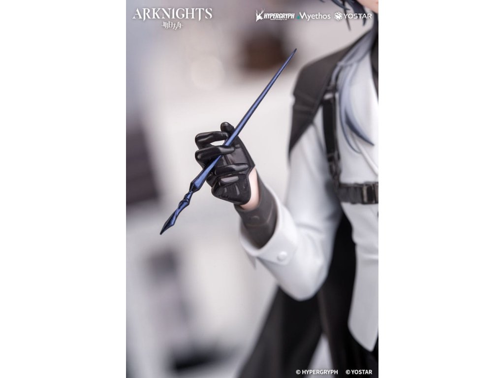 Od velmi oblíbené mobilní hry Arknights přichází nová figura měřítku 1/8 série Dárek+ Logos: Cesta hudby VER.! Logos, elitní operátor Rhode Islandu, je oděn do dlouhého trenčkotu s proudící siluetou. Bílý oblek pod tím je dokonale ušit, aby zdůraznil jeho vzpřímené držení těla. Kovové přezky na jeho hrudi dodávají jeho oděvu vytříbený dotek. Modro-bílé stužky šikmo obepínají jeho zápěstí. Jeho pravá ruka, oděná do černých kožených rukavic, pevně svírá kostěné pero, jako by chtěla rekonstruovat rytmické jádro pódia pomocí tajemných zaklínadel. Prameny stříbrošedých vlasů stékají podél jeho krku a jeho ledový pohled vybízí Doktora, aby se k němu přidal na tomto uměleckém hostině vytvořeném racionalitou. V tuto chvíli, s kostěným perem jako jeho kůzlem, ať se tento koncert stane nesmrtelnou souřadnicí vaší sbírky.