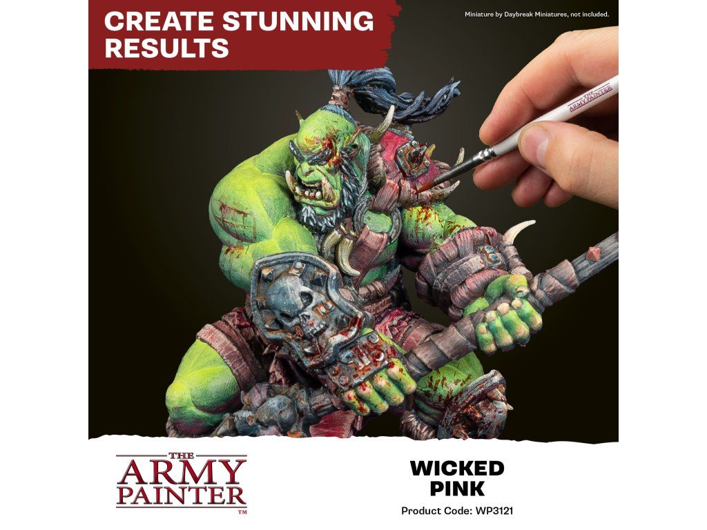 Akrylová barva Warpaints Fanatic - Wicked Pink od výrobce Army Painter je vhodná pro miniatury jakéhokoliv druhu.Barvy Warpaints Fanatic nabízejí bezkonkurenční krytí, intenzivní pigmentaci, hladkou aplikaci a zároveň se neuvěřitelně snadno používají. Barvu bohatou na pigmenty lze ředit až do extrémních úrovní pro pokročilé techniky nebo nanášet přímo na miniaturu pro snadné pokrytí při zachování rozptylu pigmentu.Objem každé lahvičky je 18 ml a obsahuje dvě míchací kuličky.