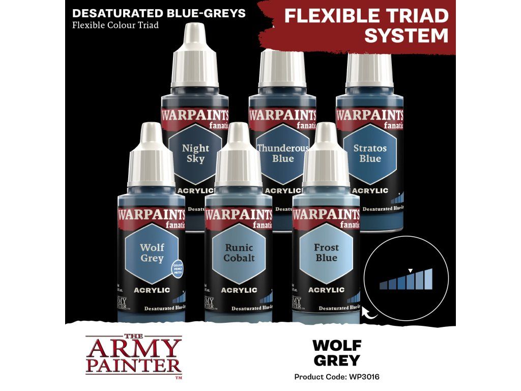 Akrylová barva Warpaints Fanatic - Wolf Grey od výrobce Army Painter je vhodná pro miniatury jakéhokoliv druhu.Barvy Warpaints Fanatic nabízejí bezkonkurenční krytí, intenzivní pigmentaci, hladkou aplikaci a zároveň se neuvěřitelně snadno používají. Barvu bohatou na pigmenty lze ředit až do extrémních úrovní pro pokročilé techniky nebo nanášet přímo na miniaturu pro snadné pokrytí při zachování rozptylu pigmentu.Objem každé lahvičky je 18 ml a obsahuje dvě míchací kuličky.