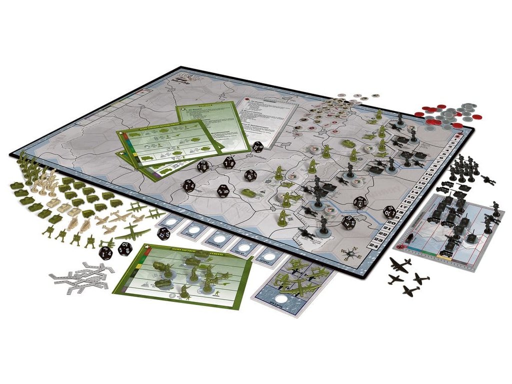 Německé tanky hučí do zasněženého lesa Ardennes, proti nimž stojí jen několik nic netušících divizí vyčerpaných amerických vojáků. Když osy sil prorazí do venkovské krajiny, spojenecké jednotky musí zápolit s udržením frontové linie, aby odrazily úplný útok. Axis & Allies: Bitva o Bulge vyzývá dva hráče, aby ovládali území a zvládli nedostatky zásob, zatímco řídí pěchotu, dělostřelectvo, tanky a letadla v jednom z rozhodujících konfliktů druhé světové války.Vlastnosti- Znovu v tisku po 18 letech!- Ovládejte území a zvládněte nedostatek zásob, zatímco řídíte pěchotu, dělostřelectvo, tanky a letadla v jednom z rozhodujících konfliktů druhé světové války.- Hrajte jako Spojené státy a Spojené království nebo Německo v této bitvě vedené hlava nehlava pro 2 hráče!- Obsahuje hru s hexagonální hrací deskou!- Více než 130 plastových figurinek je v balení!Na první pohled- Pro věk: 14+- Typ hry: Strategie- Hráči: 2- Délka hry: 3-4 hodiny.