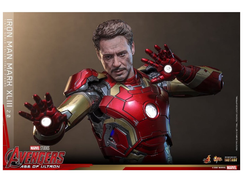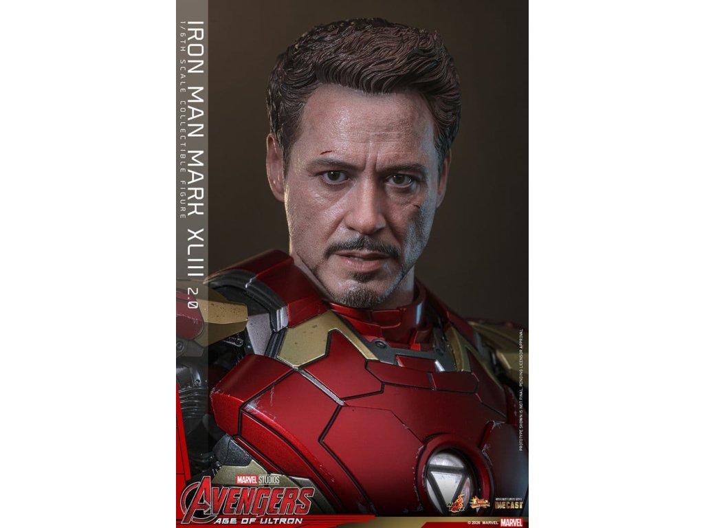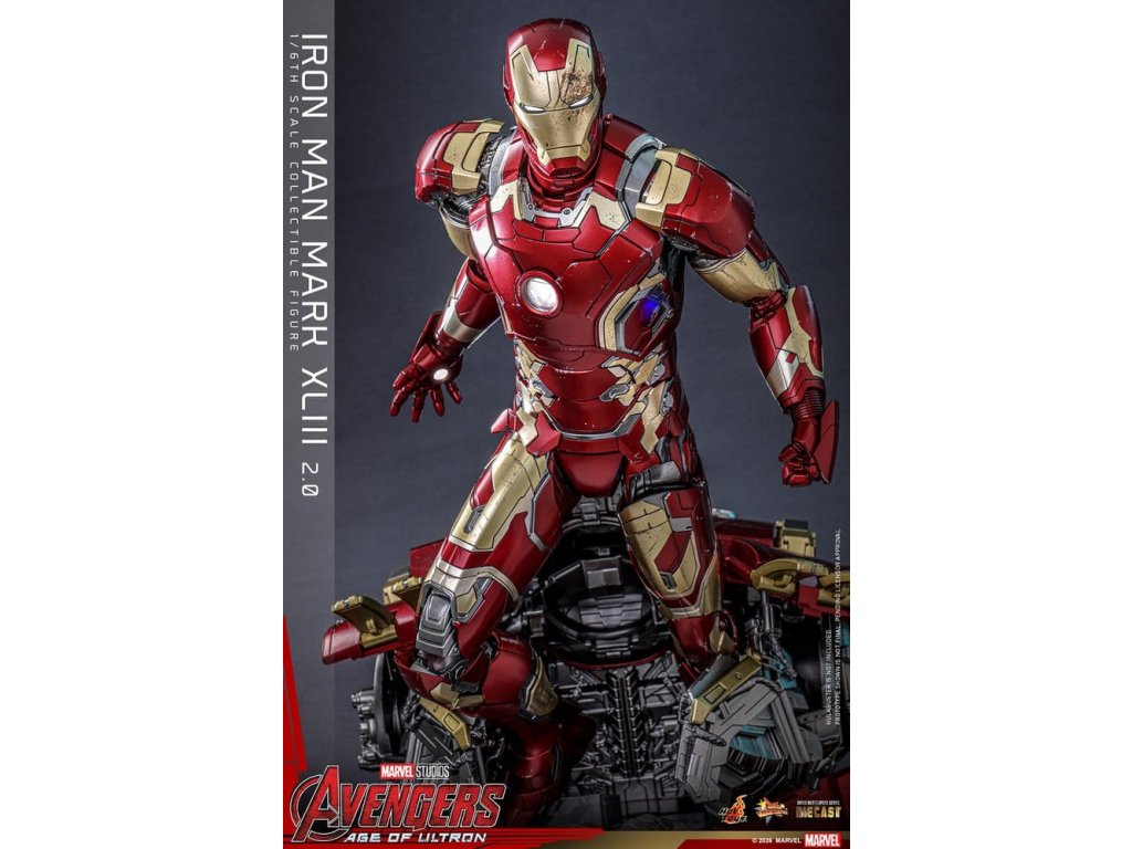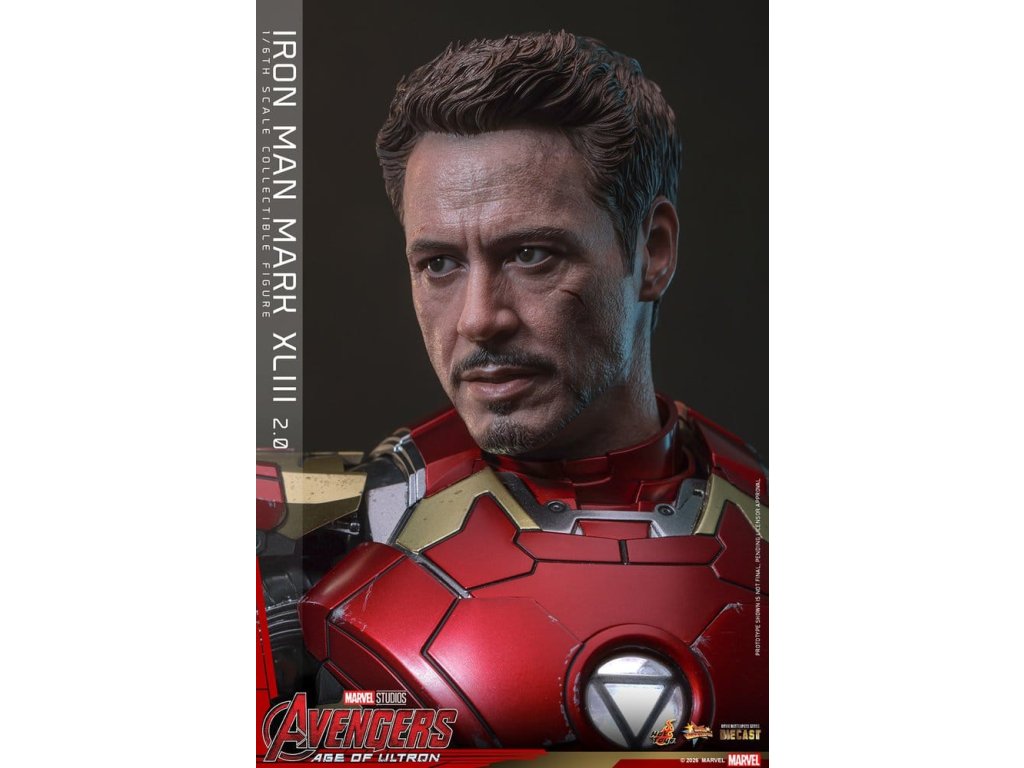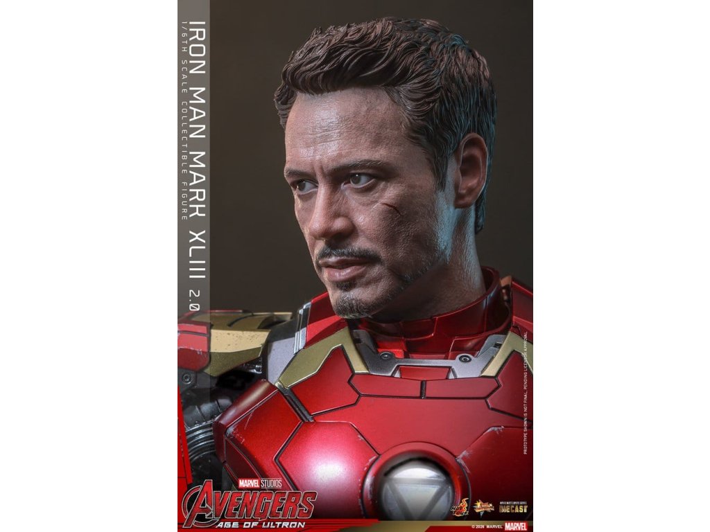 "Ve skutečnosti je šéfem on. Já jen všechno platím a navrhuji, a dělám, že všichni vypadají cool." - Tony StarkBrnění Mark XLIII, které debutuje v akcí nabité úvodní scéně Avengers: Age of Ultron, patří mezi nejikoničtější brnění Tonyho Starka. Je známé svým elegantním designem a návratem klasické červené a zlaté barevné schématy a v tomto filmu hrálo klíčovou roli.Sideshow a Hot Toys s potěšením oficiálně uvádí vysoce očekávanou sběratelskou figuru Iron Man Mark XLIII (2.0) v měřítku 1/6. Tato figura v šesté velikosti byla oživena s neuvěřitelnou pozorností k detailem, představuje přesnou hlavu Tonyho Starka vybavenou oddělenými otáčecími očima a bojem poškozenými malířskými aplikacemi, které přinášejí postavu Roberta Downeyho Jr. do života jako nikdy předtím. Helmetová figurka Iron Mana s funkcí LED osvětlení a dvěma výměnnými obličeji (normální a poškozený v boji) je také součástí balení pro alternativní možnosti zobrazení.Červená, zlatá a stříbrná odlitá brnění s efektem otěru zachycují intenzitu bitvy. LED osvětlené oči, arc reaktor, repulsory a zadní strana svítí bílým světlem, zatímco modré světlo prosvítá stranami hrudníku, předloktí a nohou - napájené systémem, který pohodlně využívá jediný USB-C port pro moderní setup. Mark XLIII (2.0) je vybaven výměnnými částmi brnění, včetně raket magneticky připevnitelných na předloktí a ramenní střely. Figurka Iron Mana odpočívá na speciálně navrženém stojanu s LED osvětlením, na kterém je logo Avengers.Předobjednávejte teď a vylepšete svou sbírku Iron Mana a Avengers touto definitivní verzí Mark XLIII!