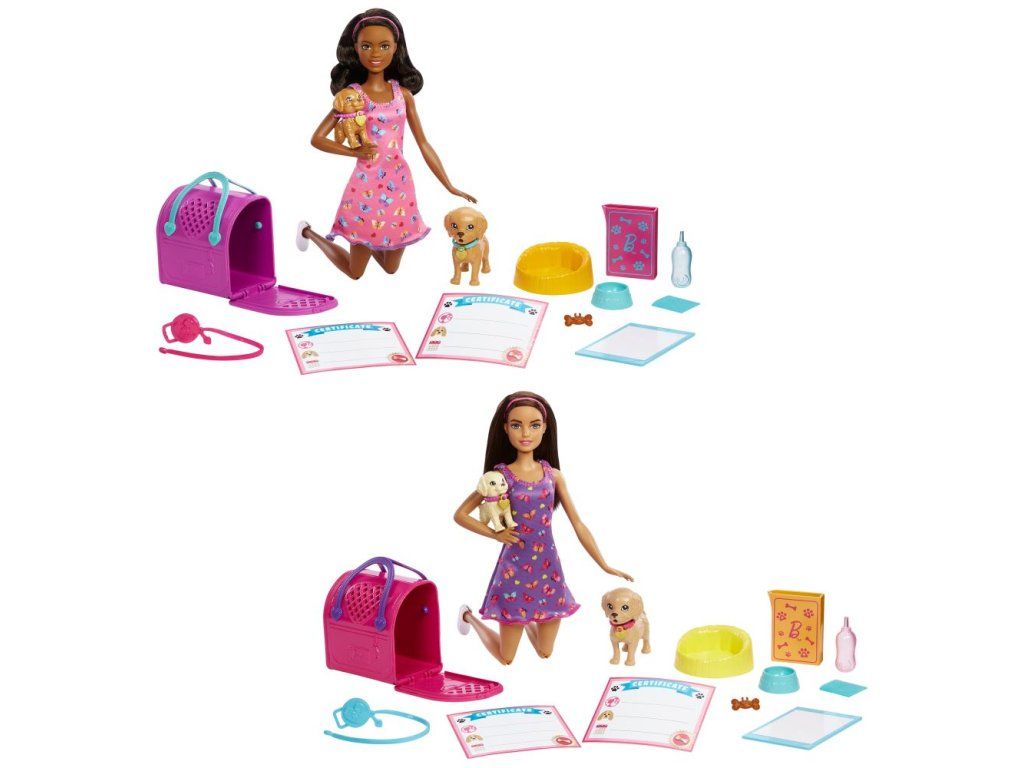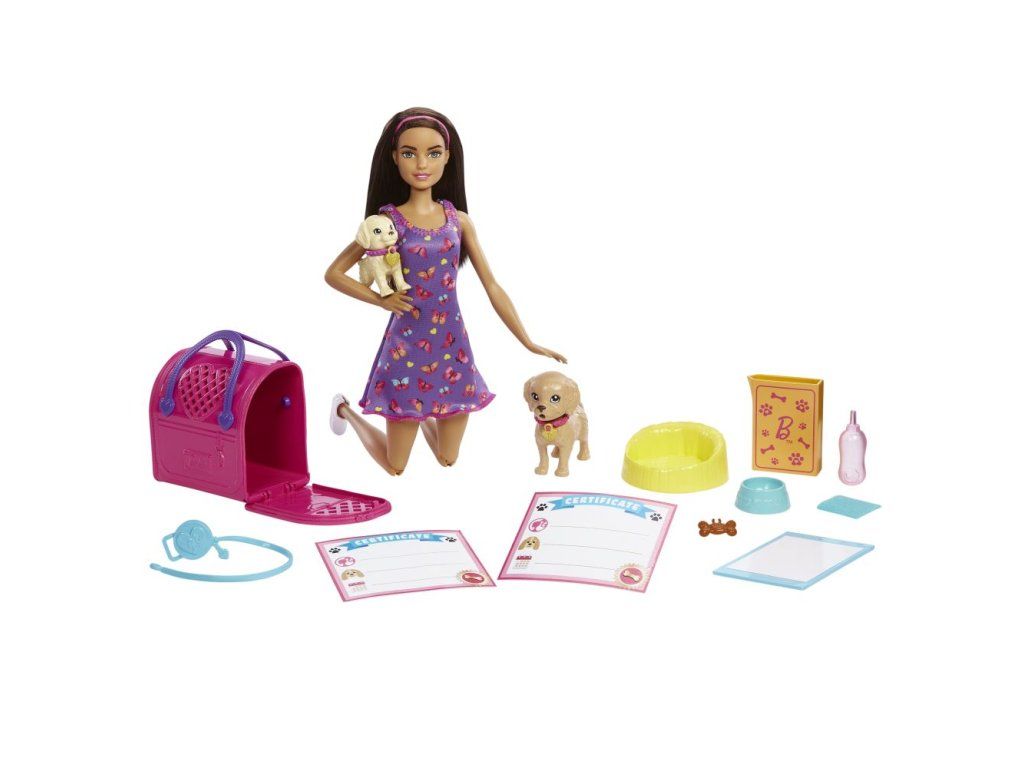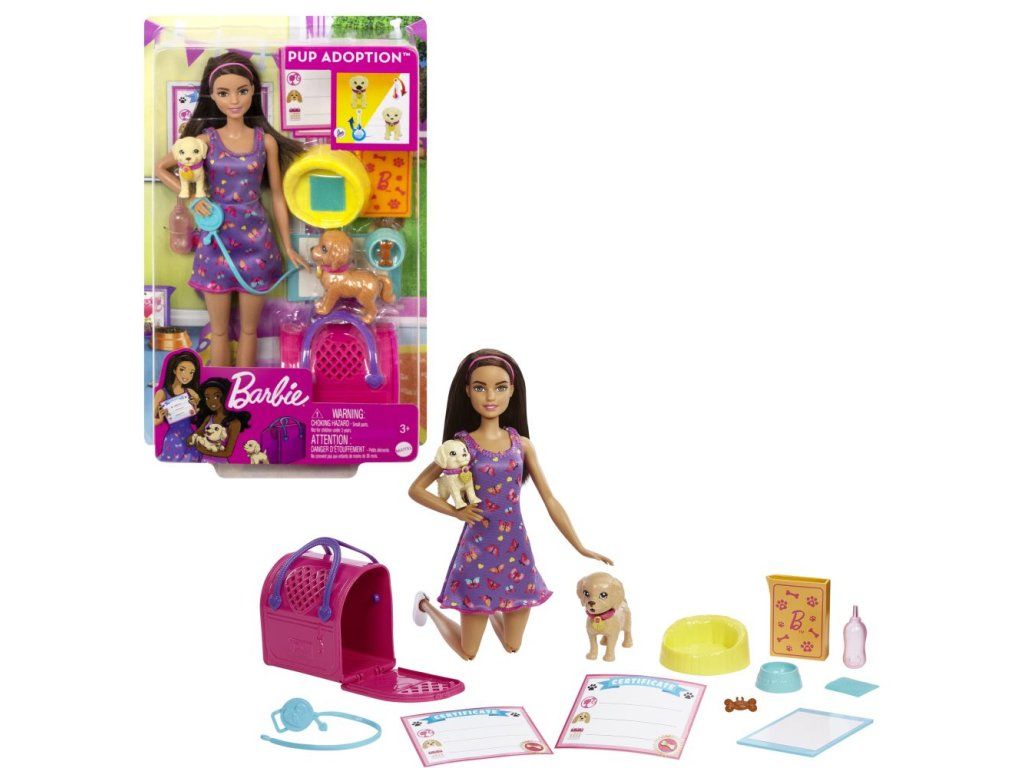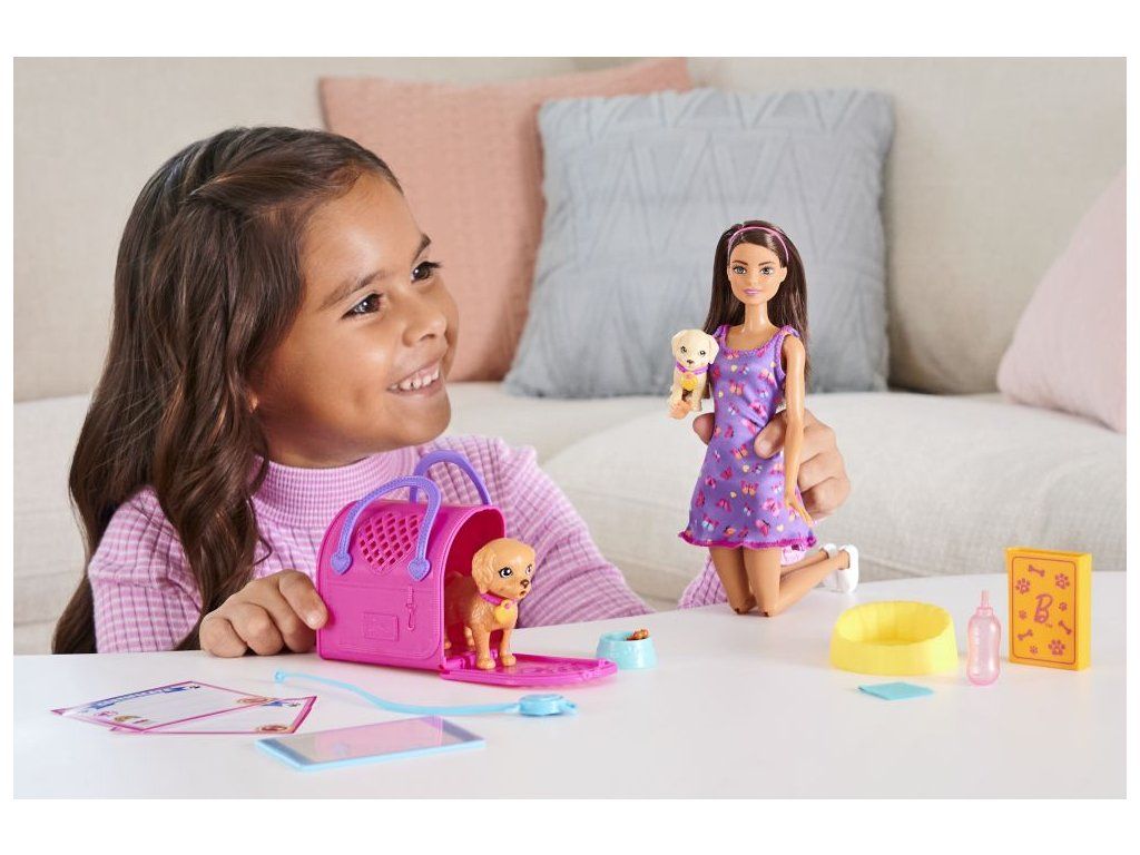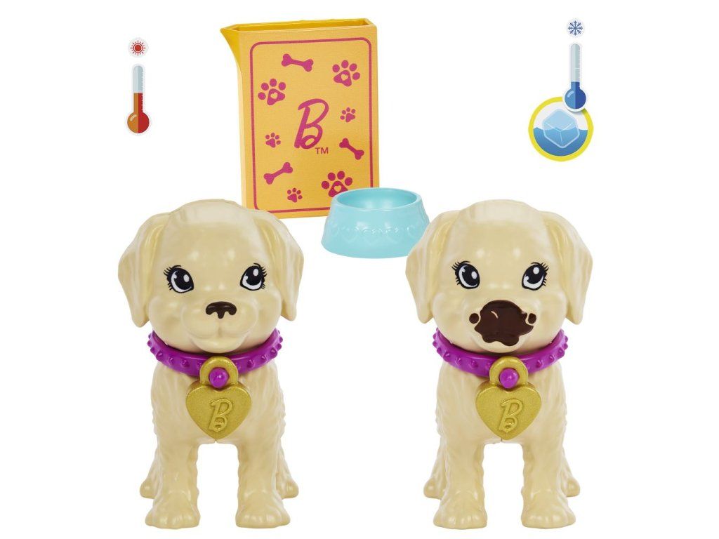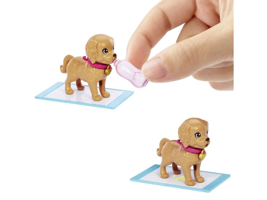 Herní set Barbie™ Panenka s pejsky podněcuje dětskou lásku ke zvířátkům a pečovatelské instinkty. Tento herní set obsahuje panenku Barbie® a roztomilá štěňátka k adopci s funkcí přeměny barvy - děti mohou dát velkému štěňátku napít ledovou vodu z láhve a sledovat, jak čůrá na podložku pro štěňata, a nebo mohou "krmit" malé štěňátko a sledovat, jak se mu mění barva tlamičky. Mezi další vypravěčské doplňky, které podporují pečovatelskou hru, patří přenosná taška pro domácí mazlíčky, pelíšek, adopční certifikáty a další! Panenka neumí samostatně stát. Barvy a vzhled výrobku se mohou lišit.