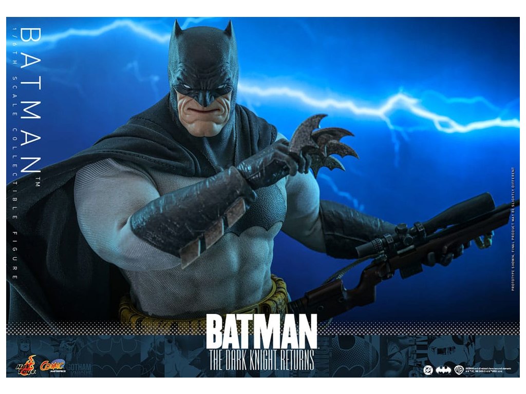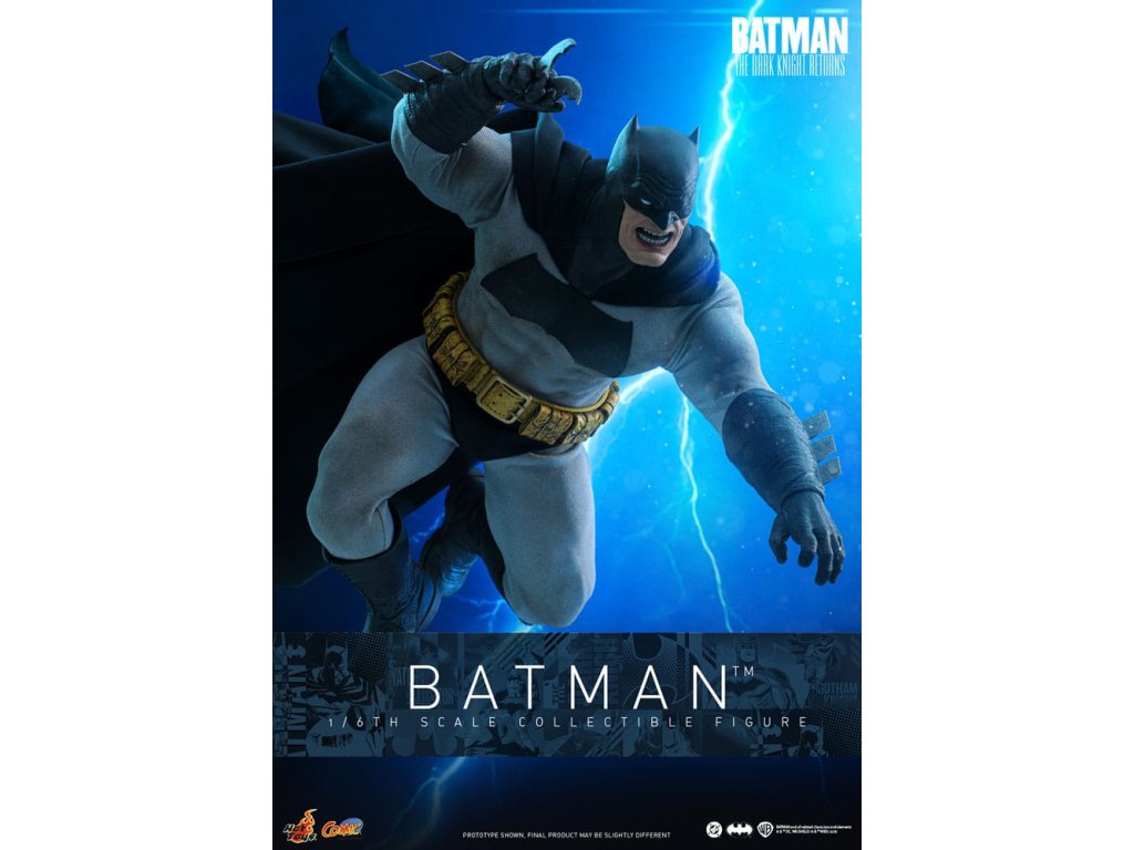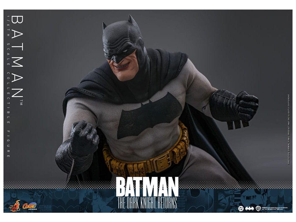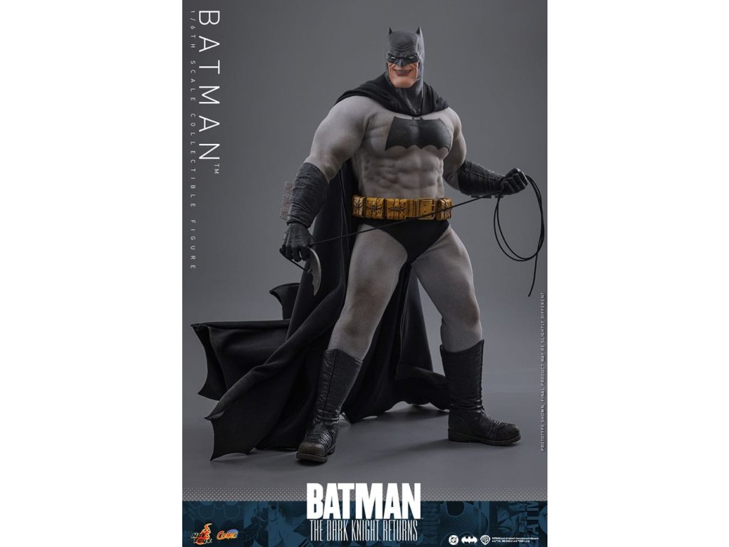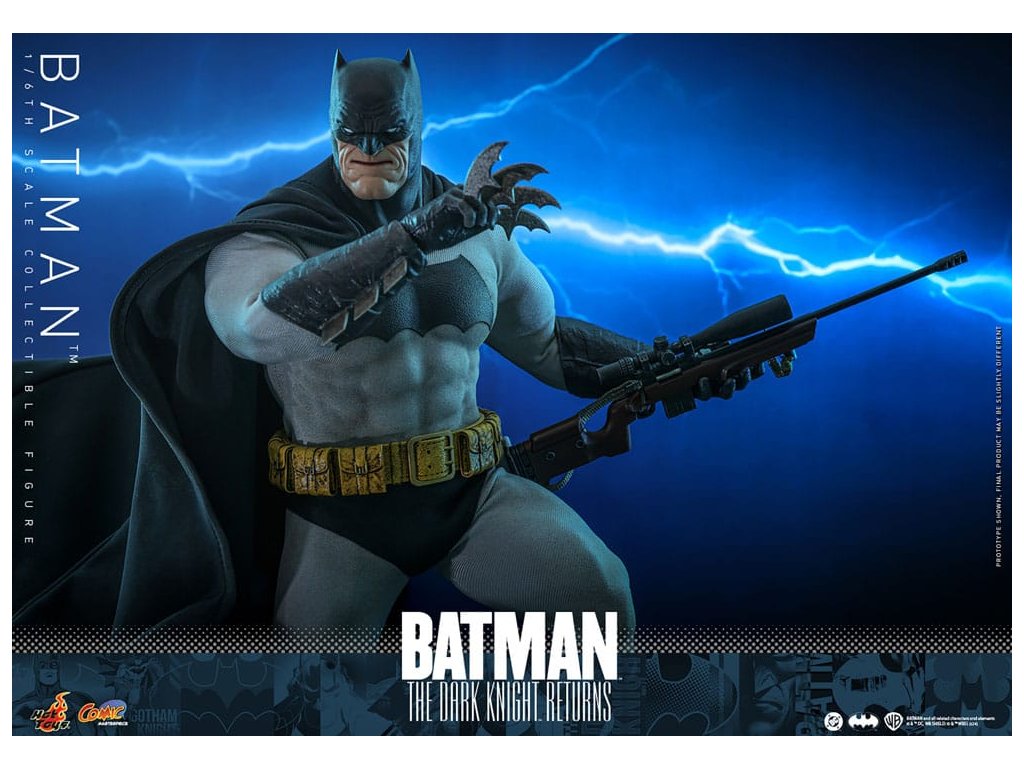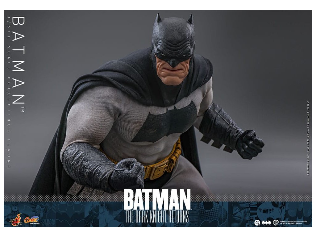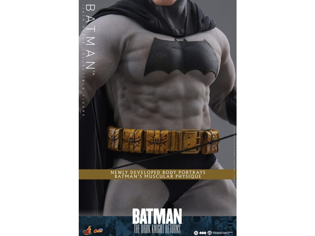 Ve spletitých příbězích DC Comics „Batman: Návrat Temného rytíře“, se starší Bruce Wayne vrací z důchodu, aby znovu získal svou roli Batmana, když Gotham City upadá do chaosu kvůli plošnému zločinu a korupci. Batman se střetává se svými obavami a následky své minulosti a bojuje s novou vlnou nepřátel. „Návrat Temného rytíře“ je opravdu klasika, která redefinovala Batmana a zanechala významnou stopu v žánru superhrdinů. Hrdinský obraz a svalnatá postava Batmana v komiksu jsou ikonické. Sideshow a Hot Toys přinášejí tohoto legendárního charakter na živobytí s touto batmanovskou kolekcí šestého měřítka. Inspirace pro tento pečlivě vytvořený model šestého měřítka pochází z Batmanova ztvárnění v „Batman: Návrat Temného rytíře“. Figurka má nově vyvinuté tělo s 30 body artikulace, které zobrazuje Batmanovu svalnatou postavu, a maskovanou hlavu s vyměnitelnými dolními partiemi obličeje. Kolekcí figurka také přichází s speciálně upraveným Batsuit s velkým batmanovským symbolem a připojenou drátěnou pláštěnku, opasek utility s patinou, Batarangy, puškou a speciálně navrženou figurkovou stojankou s označením jména postavy. Nenechte si ujít příležitost přidat tuto úžasnou Batmanovu figurku do své DC sbírky!