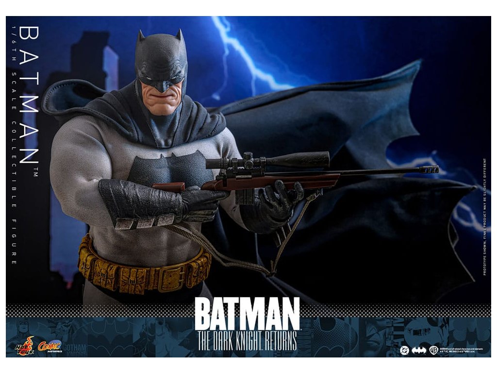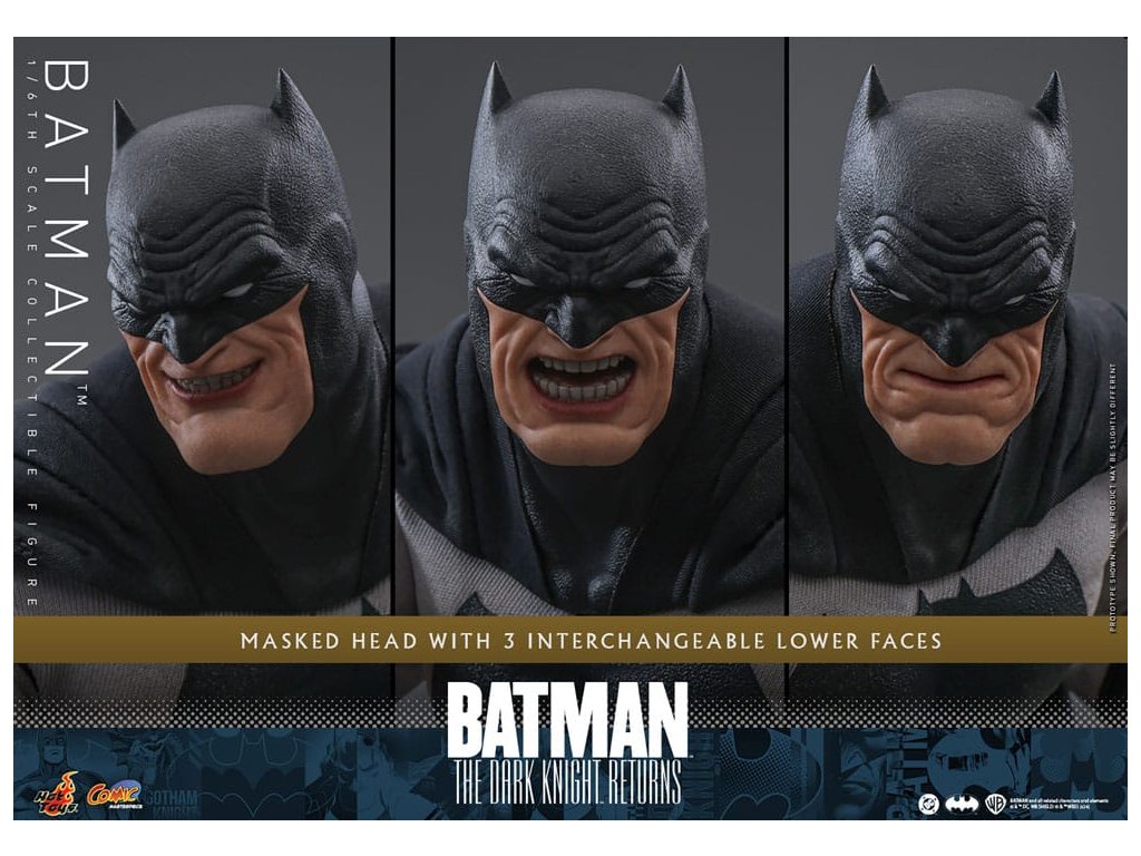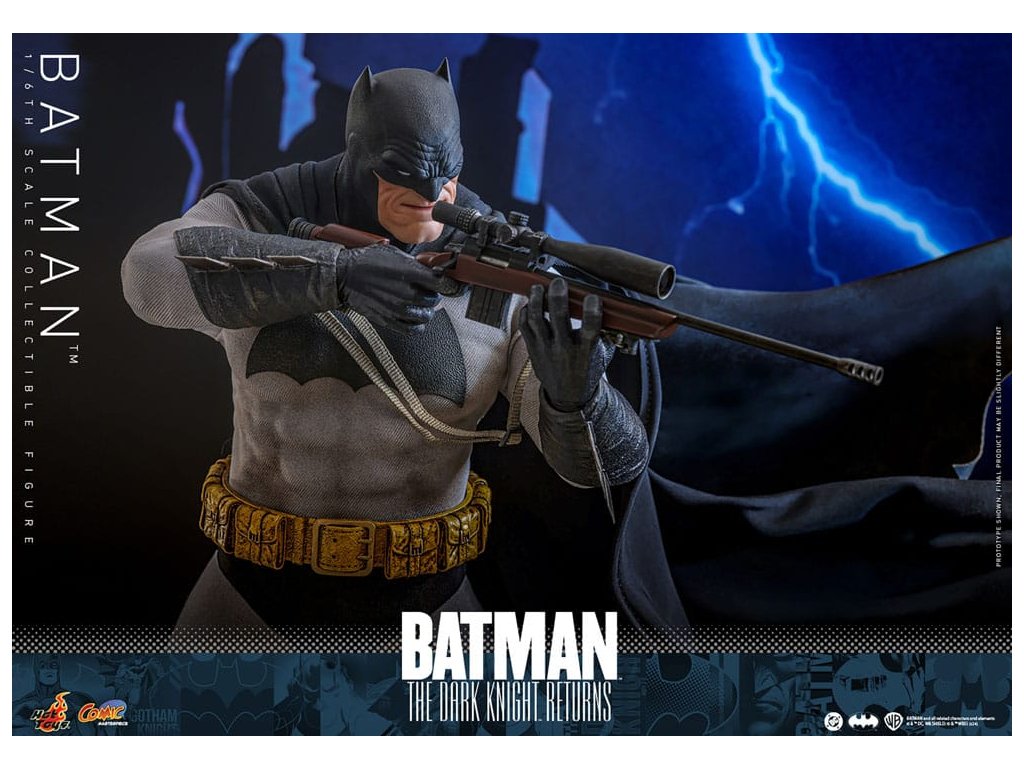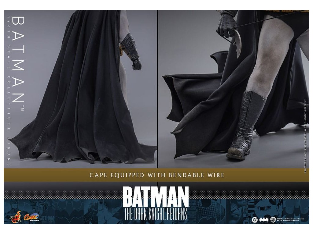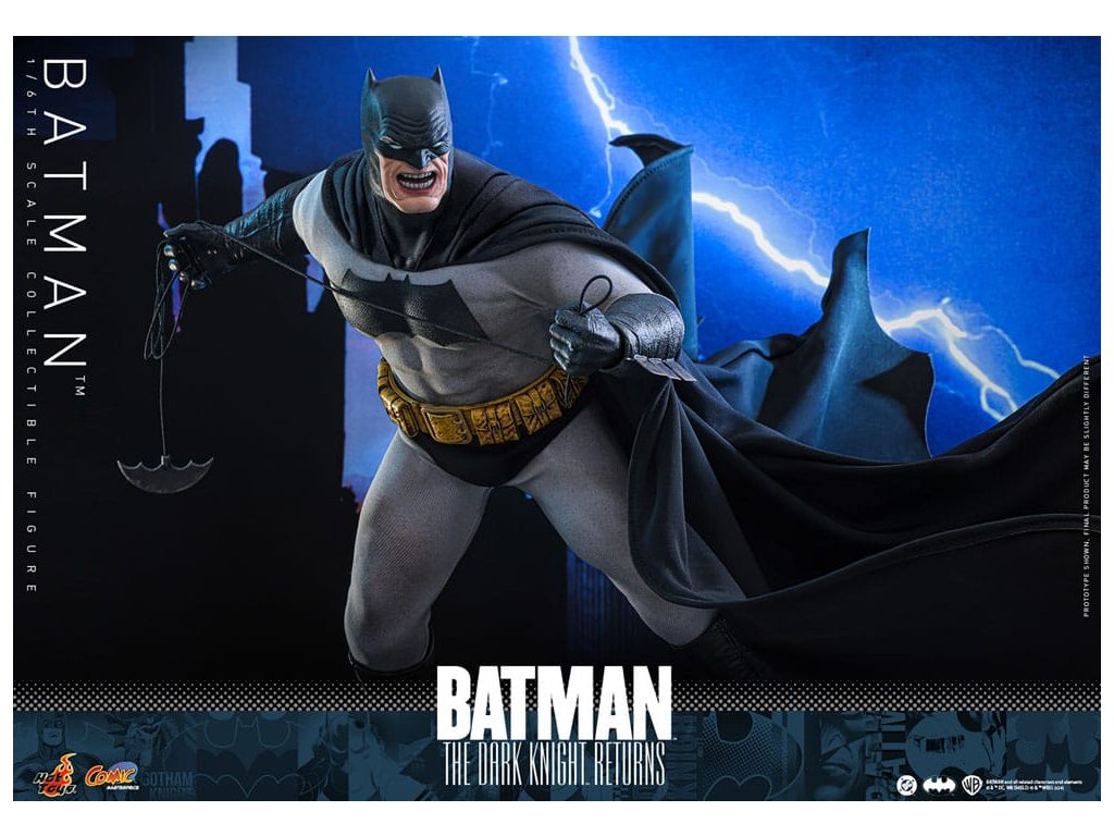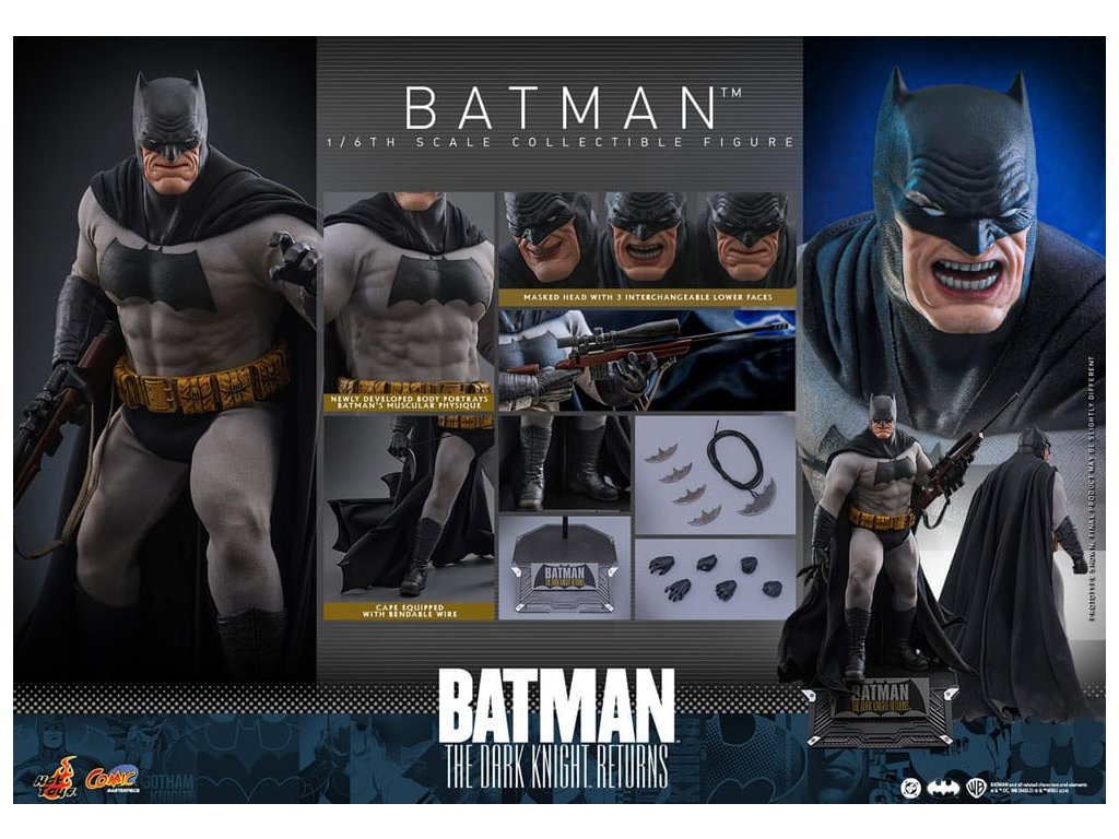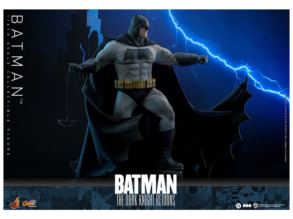 Ve spletitých příbězích DC Comics „Batman: Návrat Temného rytíře“, se starší Bruce Wayne vrací z důchodu, aby znovu získal svou roli Batmana, když Gotham City upadá do chaosu kvůli plošnému zločinu a korupci. Batman se střetává se svými obavami a následky své minulosti a bojuje s novou vlnou nepřátel. „Návrat Temného rytíře“ je opravdu klasika, která redefinovala Batmana a zanechala významnou stopu v žánru superhrdinů. Hrdinský obraz a svalnatá postava Batmana v komiksu jsou ikonické. Sideshow a Hot Toys přinášejí tohoto legendárního charakter na živobytí s touto batmanovskou kolekcí šestého měřítka. Inspirace pro tento pečlivě vytvořený model šestého měřítka pochází z Batmanova ztvárnění v „Batman: Návrat Temného rytíře“. Figurka má nově vyvinuté tělo s 30 body artikulace, které zobrazuje Batmanovu svalnatou postavu, a maskovanou hlavu s vyměnitelnými dolními partiemi obličeje. Kolekcí figurka také přichází s speciálně upraveným Batsuit s velkým batmanovským symbolem a připojenou drátěnou pláštěnku, opasek utility s patinou, Batarangy, puškou a speciálně navrženou figurkovou stojankou s označením jména postavy. Nenechte si ujít příležitost přidat tuto úžasnou Batmanovu figurku do své DC sbírky!