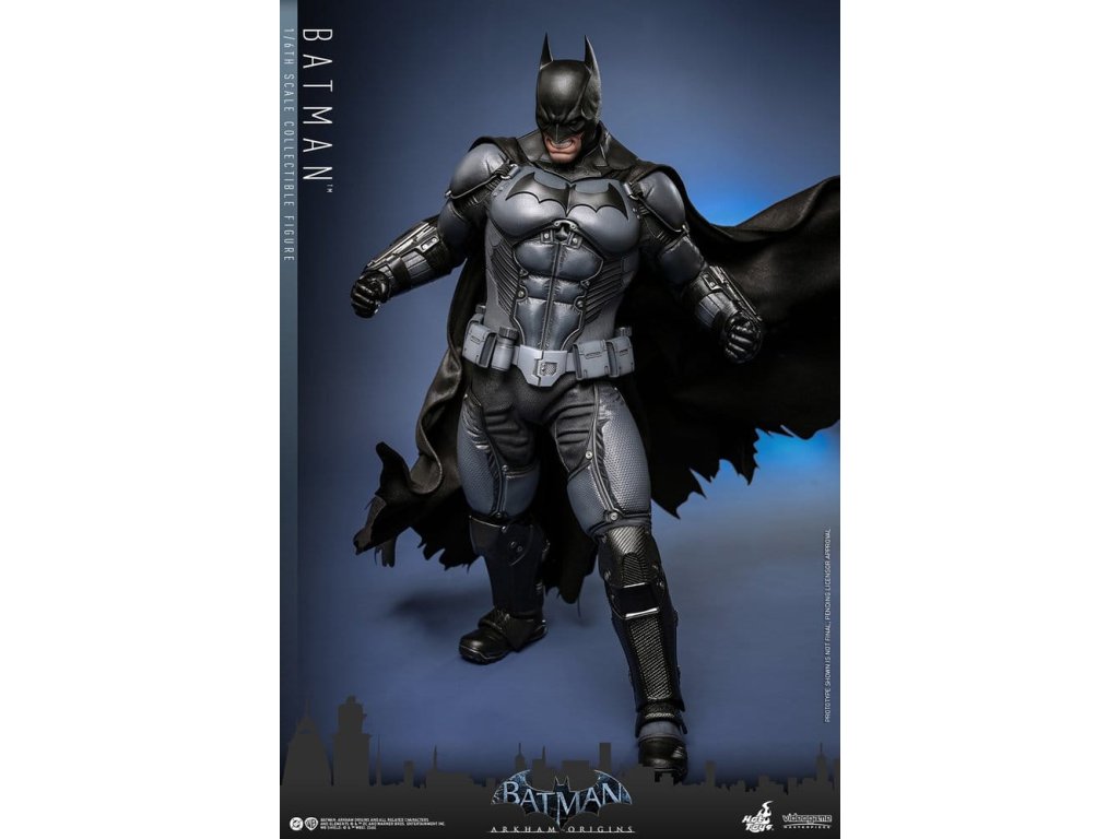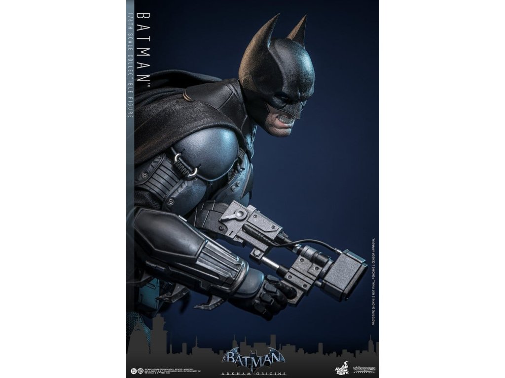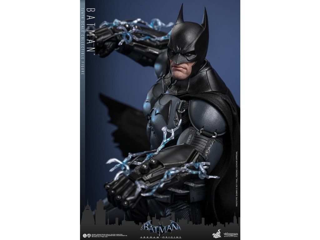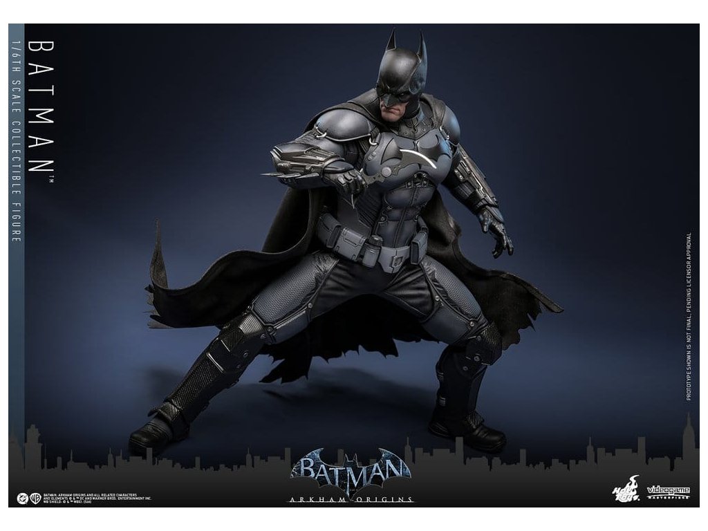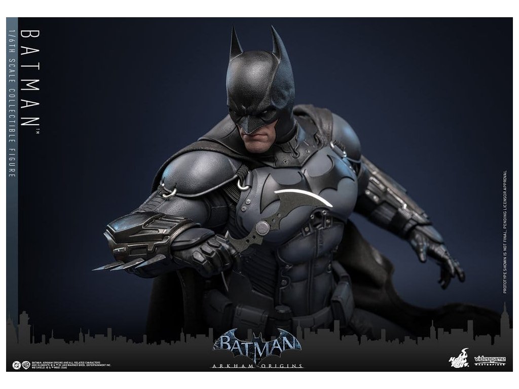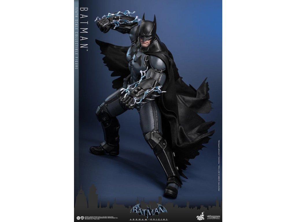 Videohra z roku 2013 Batman: Arkham Origins představuje hráčům prequel příběh odehrávající se několik let před Batman: Arkham Asylum a Batman: Arkham City. V Arkham Origins mladý, syrový a nevybroušený Batman čelí definujícímu momentu ve svém druhém roce jako ochránce Gothamu. Na zasněžený Štědrý den, když na něj Black Mask vypíše odměnu 50 milionů dolarů, se střetává s nejnebezpečnějšími žoldáky světa, včetně Killer Croca, Deathstrok a Bane. Uprostřed zmatků si vybuduje křehkou důvěru s několika členy GCPD a občany Gotham City. Sideshow a Hot Toys jsou hrdí na to, že mohou představit vysoce očekávanou sběratelskou figurku Batman™ v šesté škále z videohry Batman: Arkham Origins. Tato figurka v šesté škále má nově vyvinutou maskovanou hlavu se dvěma vyměnitelnými spodními tvářemi, které ukazují jak jeho zamračený výraz, tak jeho odhodlání a stisknuté zuby. Kostým Batmana je věrně zrekonstruován podle praktického designu hry, který je neforemný a obrněný, a obsahuje nově vyvinutý Batsuit s šedým a černým plně obrněným tělem vrstveným nad základní oblek na svalnatém těle. Pár těžkých rukavic, bot, užitkový opasek a plášť s dráty dokončují jeho oblek. Figurka také obsahuje pár desek s brněním Shock Gloves, které mají průhledné modré bleskové efekty, aby představovaly jejich elektrizovaný dopad. S sedmi výměnnými rukama, včetně pěstí, otevřených rukou a rukou držících zbraně, sběratelé mohou zobrazovat jeho dynamické pózy. Tato figurka DC Comics je vybavena arzenálem zbraní, které odrážejí Batmanovu inovaci v boji a utajení. Součástí je Grapnel Gun, Disruptor, Sonic Batarang, Batarang, Remote Claw, Smoke Pellet a Explosive Gel, které poskytují různé možnosti zobrazení a věrně reprezentují nástroje, které Batman používá v průběhu hry. Prezentace je dokončena speciálně navrženým stojanem na figurku. Tato dlouho očekávaná sběratelská akční figurka přináší původ Temného rytíře do života - nezbytný doplněk pro fanoušky Batman: Arkham Origins a pro každého, kdo oceňuje jemně vyrobené videoherní figurky. Orientační datum vydání: květen 2027