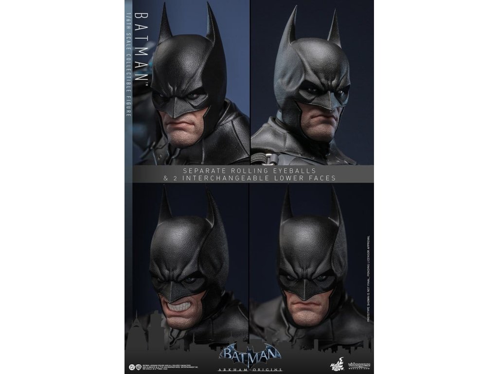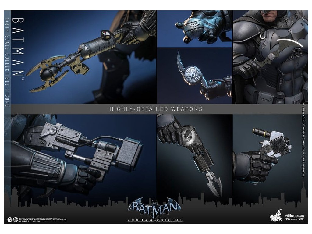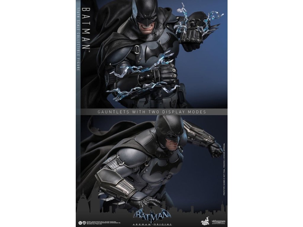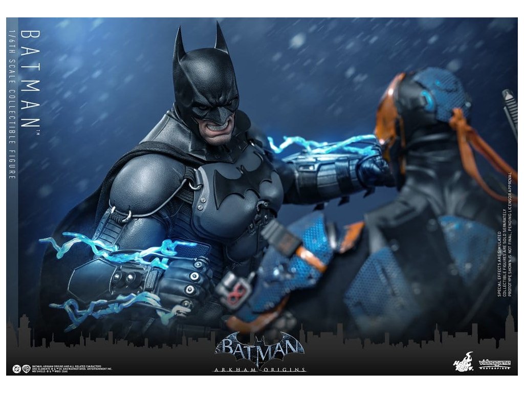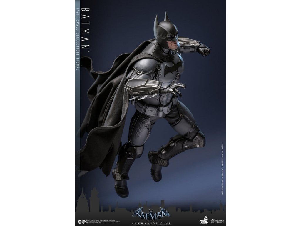 Videohra z roku 2013 Batman: Arkham Origins představuje hráčům prequel příběh odehrávající se několik let před Batman: Arkham Asylum a Batman: Arkham City. V Arkham Origins mladý, syrový a nevybroušený Batman čelí definujícímu momentu ve svém druhém roce jako ochránce Gothamu. Na zasněžený Štědrý den, když na něj Black Mask vypíše odměnu 50 milionů dolarů, se střetává s nejnebezpečnějšími žoldáky světa, včetně Killer Croca, Deathstrok a Bane. Uprostřed zmatků si vybuduje křehkou důvěru s několika členy GCPD a občany Gotham City. Sideshow a Hot Toys jsou hrdí na to, že mohou představit vysoce očekávanou sběratelskou figurku Batman™ v šesté škále z videohry Batman: Arkham Origins. Tato figurka v šesté škále má nově vyvinutou maskovanou hlavu se dvěma vyměnitelnými spodními tvářemi, které ukazují jak jeho zamračený výraz, tak jeho odhodlání a stisknuté zuby. Kostým Batmana je věrně zrekonstruován podle praktického designu hry, který je neforemný a obrněný, a obsahuje nově vyvinutý Batsuit s šedým a černým plně obrněným tělem vrstveným nad základní oblek na svalnatém těle. Pár těžkých rukavic, bot, užitkový opasek a plášť s dráty dokončují jeho oblek. Figurka také obsahuje pár desek s brněním Shock Gloves, které mají průhledné modré bleskové efekty, aby představovaly jejich elektrizovaný dopad. S sedmi výměnnými rukama, včetně pěstí, otevřených rukou a rukou držících zbraně, sběratelé mohou zobrazovat jeho dynamické pózy. Tato figurka DC Comics je vybavena arzenálem zbraní, které odrážejí Batmanovu inovaci v boji a utajení. Součástí je Grapnel Gun, Disruptor, Sonic Batarang, Batarang, Remote Claw, Smoke Pellet a Explosive Gel, které poskytují různé možnosti zobrazení a věrně reprezentují nástroje, které Batman používá v průběhu hry. Prezentace je dokončena speciálně navrženým stojanem na figurku. Tato dlouho očekávaná sběratelská akční figurka přináší původ Temného rytíře do života - nezbytný doplněk pro fanoušky Batman: Arkham Origins a pro každého, kdo oceňuje jemně vyrobené videoherní figurky. Orientační datum vydání: květen 2027