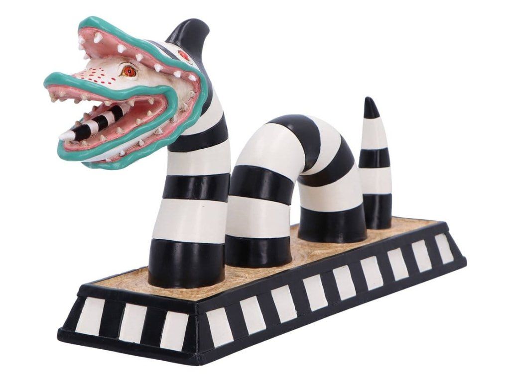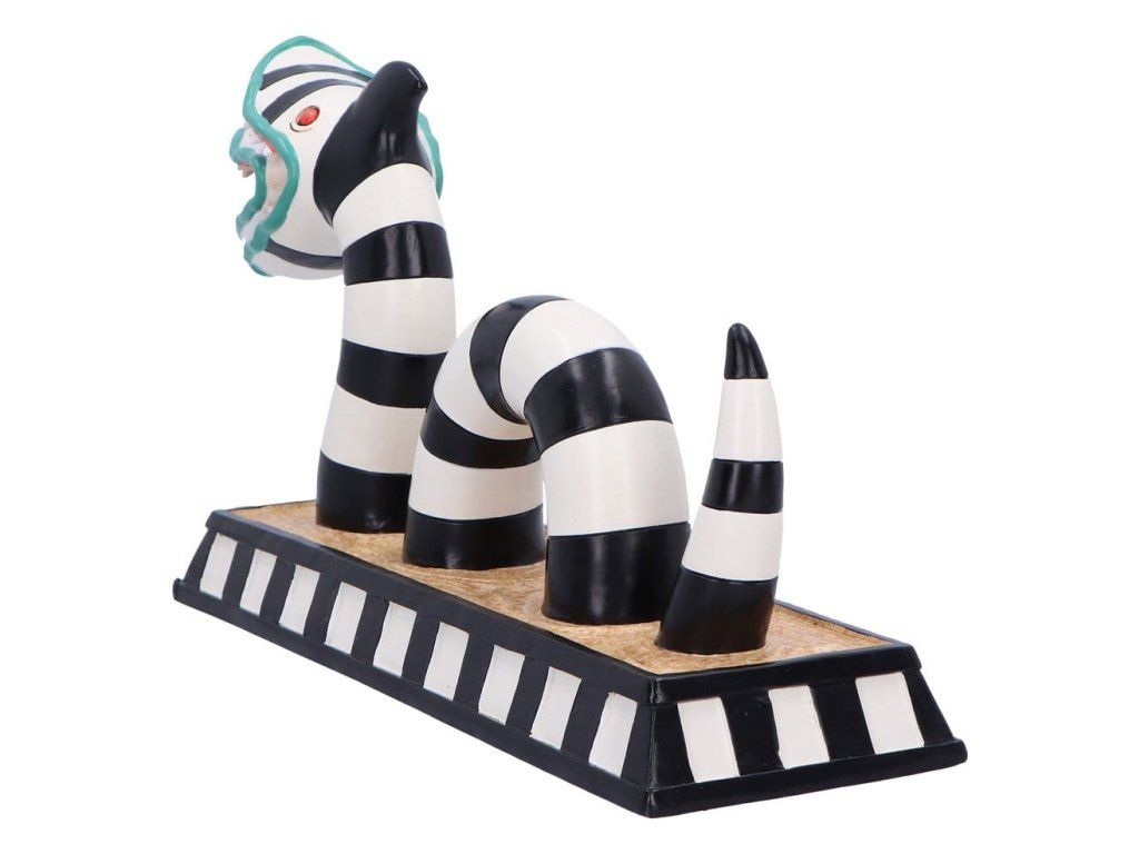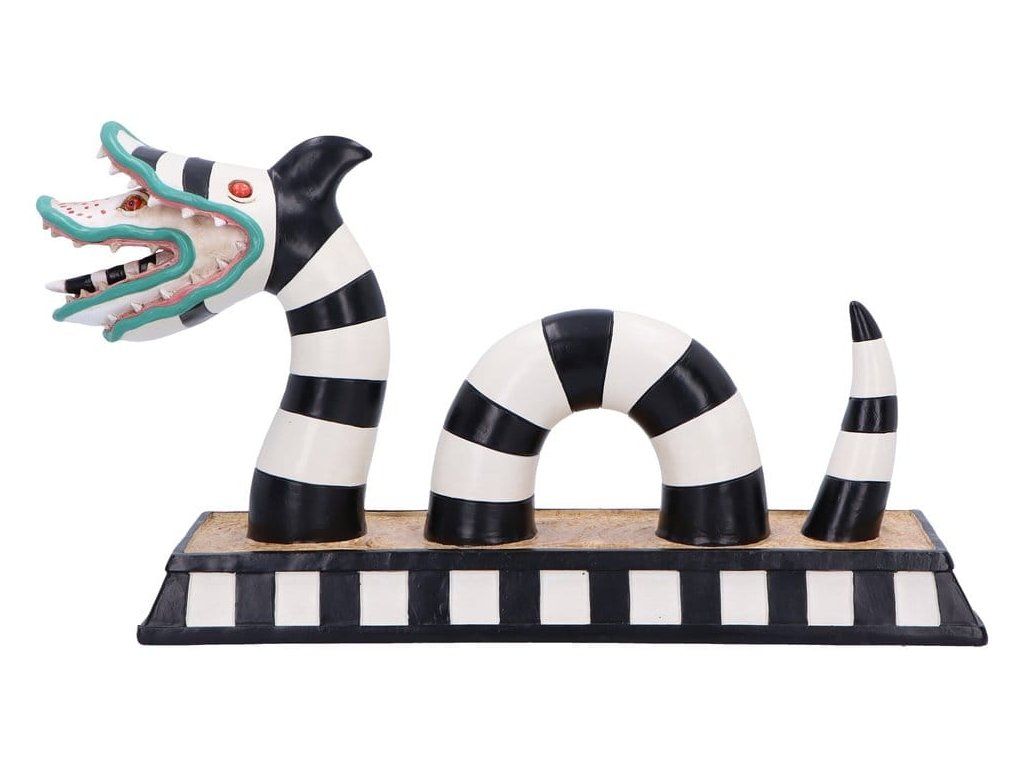 Figurka písečného červa z Beetlejuice je povinným sběratelským kouskem pro fanoušky kultovního filmu Tima Burtona. Díky propracovaným ručně malovaným detailům, výraznému černo-bílému pruhovanému provedení a charakteristickým dvojitým hlavám je tato figurka vyrobena z vysoce kvalitní pryskyřice a má stabilní podstavec pro vystavení. Je balena v barevné oficiálně licencované krabičce Beetlejuice, ideální k vystavení nebo jako dárek. Vhodná pro milovníky hororu, filmové nadšence a sběratele neobvyklé popkultury — tato figurka přidá na poličce strašidelný nádech. Přineste si domů kousek Neitherworldu a ukažte svou lásku ke všemu podivnému a neobvyklému.