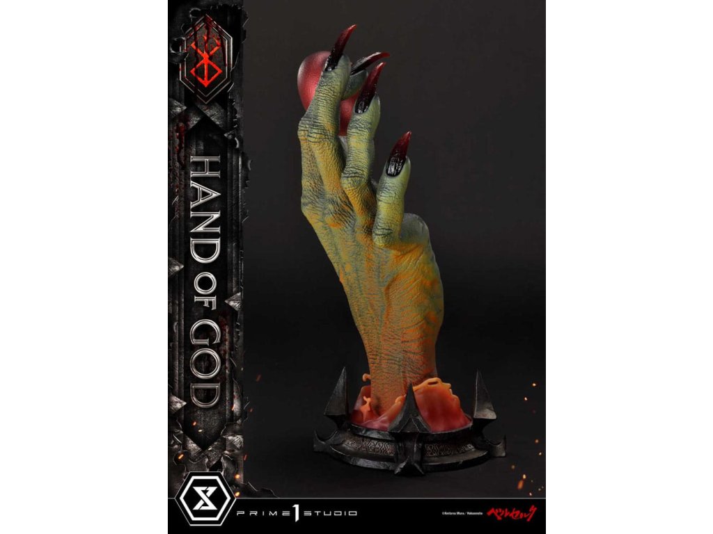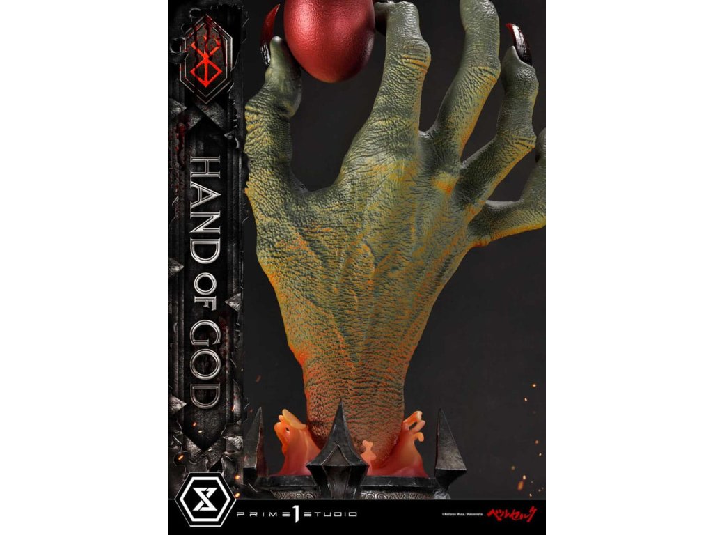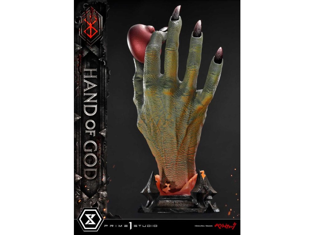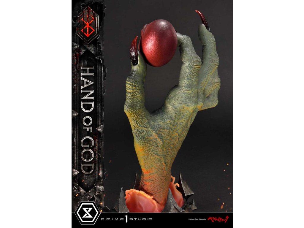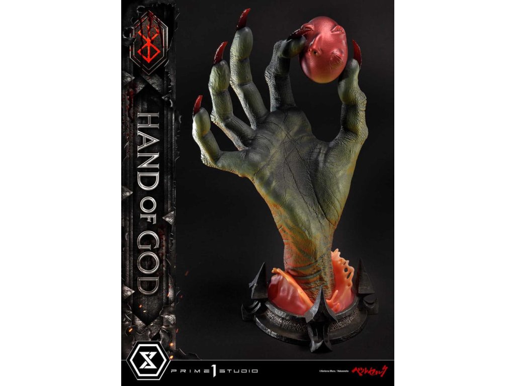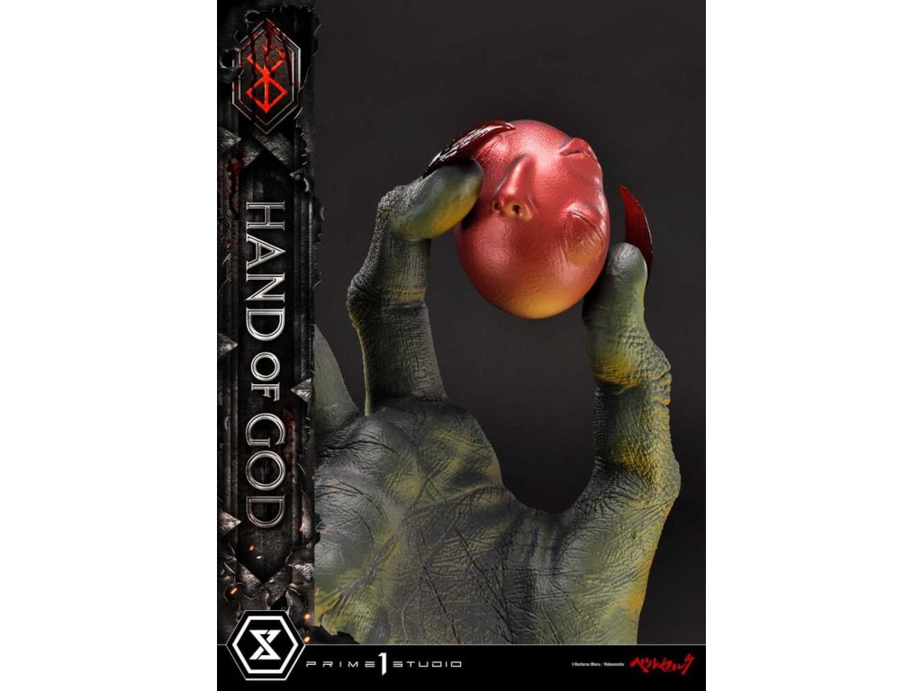 Existuje nějaký druh transcendentálního "Zákona" nebo "Ruky Boží", který určuje lidský osud v tomto světě? Prime 1 Studio je hrdé na prezentaci nejnovějšího přírůstku do série soch Berserk: Životní velikosti Ruka Boží z Berserku! Založeno přímo na revolučním umění Sensei Kentaro Miura přichází Ruka Boží. Držící rudý Behelit (také známý jako "Vejce Dobyvatele") Ruka Boží soudí neschopnost lidstva ovládat i svou vlastní vůli. Umělci Prime 1 Studio, s naprostou úctou k zesnulému Sensei Miura, věnovali čas a péči k výrobě hodného doplňku k zbytku úžasné řady soch Berserk. Přímo z mangy, téměř 25cm vysoká Ruka Boží prorazí vzhůru z primitivního bláta, s rudým Behelitem v palci a ukazováčku. Realistická, kovaná železná základna je minimální a dobře ladí s tématem Berserk. "Specifikace: - Založeno na umění Sensei Kentaro Miura". Orientační datum vydání: duben 2026