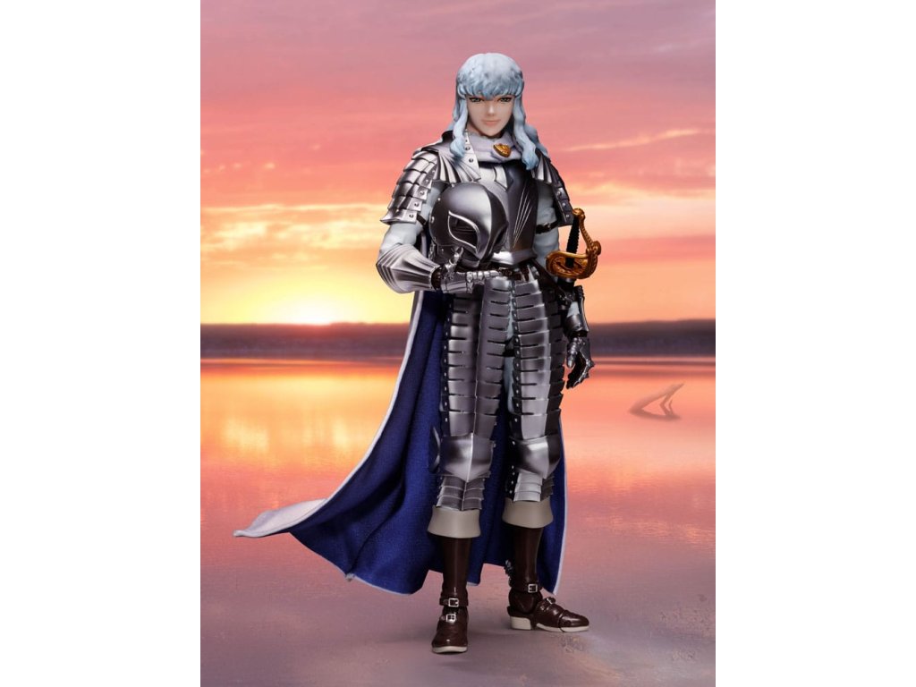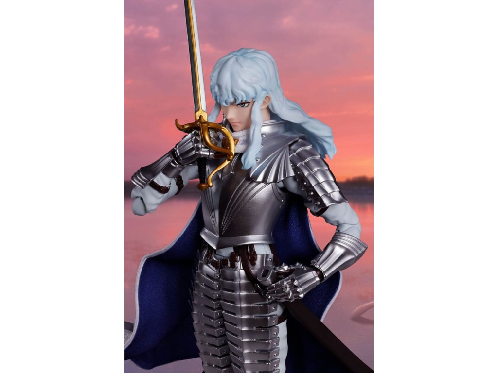 "Mezi tisíci soudruhů a deseti tisíci nepřáteli, jen ty jsi mě donutil zapomenout na můj sen." Z celosvětově oblíbeného temného fantasy klasiku "Berserk," se GRIFFITH přidává k S.H.Figuarts, jak se objevuje v oblouku "Zlatý věk". Byl sochářsky zpracován směrem ven od kostry, aby bylo dosaženo přirozeného pohybu a proporcí viděných v původním díle. Technologie digitálního kolorování Tamashii byla použita k věrnému zobrazení přesných výrazů. Jeho helma a meč také součástí. Jeho nohy mají nejnovější mechanismy (japonský patent čeká na schválení)! Souprava obsahuje:- Hlavní tělo s pláštěnkou- 3 x páry výměnných rukou- 2 x výměnné části výrazů- 2 x části výrazů pro použití s helmou- Helma- Část ofiny pro použití s helmou- Jílec meče- Meč. Orientační datum vydání: září 2026