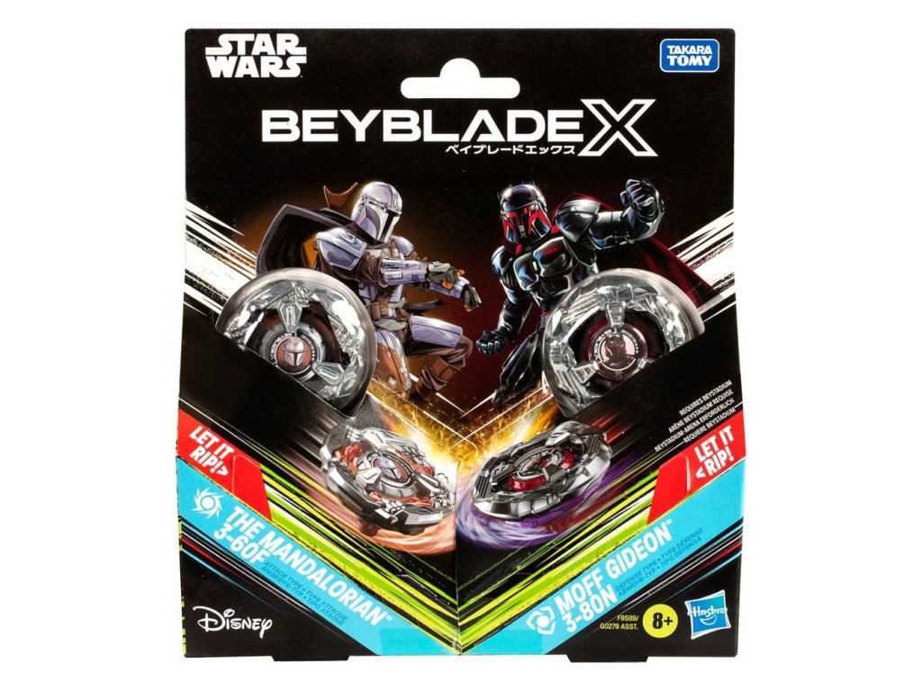 Beyblade X and Star Wars Collab The Mandalorian 3-60F vs. Moff Gideon 3-80N
