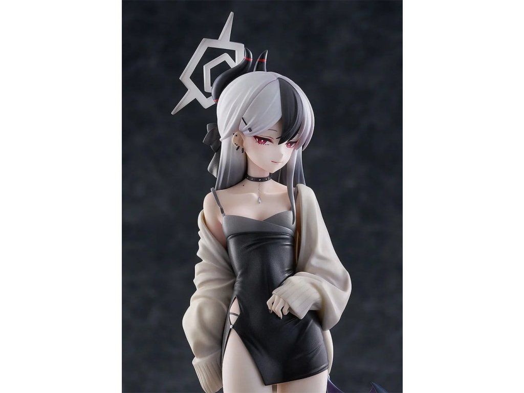 Z populární hry Blue Archive pochází figurka v měřítku 1/7 Kayoko, členky skupiny Problem Solver 68 z Gehenna Academy, v lesklých šatech, které nosila během utajené mise. Figurka zachovává Kayokinu typicky klidnou a vyrovnanou auru a zároveň vystihuje elegantní a jemnou krásu, která dokonale podtrhuje výjimečný večer. Dospělý, sofistikovaný vzhled původního výtvarného zpracování byl věrně přenesen do podoby figurky. Od Kayokiných charakteristických monochromatických vlasů přes jemně vykreslené křivky těla až po aureolu — pečlivě zpracované detaily této figurky jsou skutečnou podívanou. Kayokin outfit tvoří přiléhavé černé šaty, které zvýrazňují křivky postavy, doplněné oversize kardiganem dramaticky přehozeným přes jedno rameno. Kontrast materiálových textur je ztvárněn pomocí rozdílů v lesku a precizního malování, čímž je dosaženo realismu, který je možný jen u figurky. Součástí je také náhradní obličej s jemným úsměvem. Nepropásněte příležitost doplnit svou sbírku o tento vzácný záběr z Kayokina odpočinku!