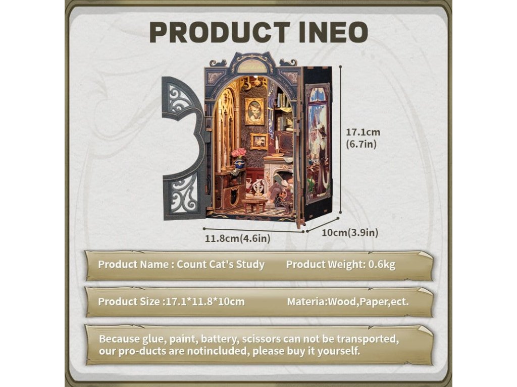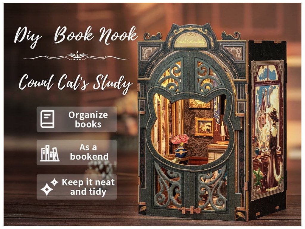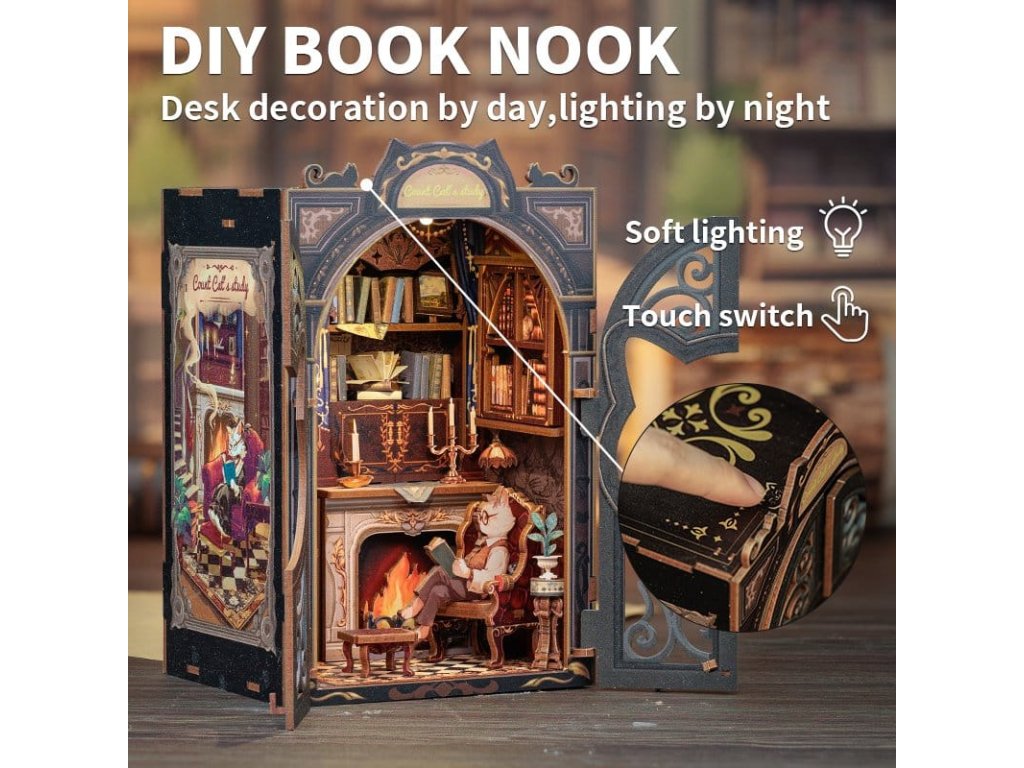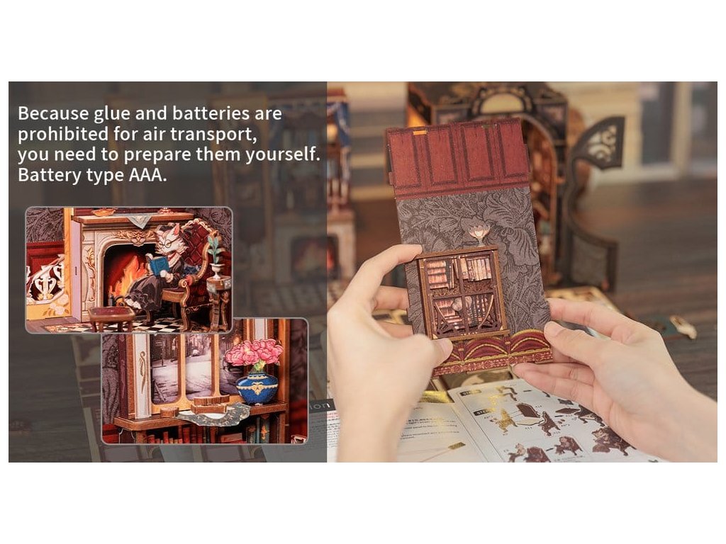Kreativní únik mezi vašimi knihami - Rohlíčky pro knihy CuteBee. Rohlíčky pro knihy CuteBee jsou více než dekorativní kusy na polici - jsou to poutavé kreativní zážitky pro děti, rodiny a dospělé, doporučené pro věk 12 let a více. Navržené jako detailní 3D dřevěné puzzle, nabízejí klidný, soustředěný proces stavění, který podporuje obrazovkový volný čas, snižující stres. Každý model má jasnou a logickou strukturu s lehce srozumitelnými instrukcemi, což vytváří rychlé okamžiky úspěchu během stavění. Rovnováha mezi zaujatým skládáním a nádherným konečným výsledkem přináší hluboký pocit uspokojení a relaxace. Ideální pro fanoušky LEGO, stavebnic, modelů v měřítku a japonských stavebnic. Dřevěné díly vyřezávané laserem poskytují prémiový pocit s přesným zapadáním, čistými hranami a vysoce kvalitním provedením. Díky systému Easy-Snap lze většinu prvků sestavit s minimálním množstvím lepidla, což činí proces přívětivým pro začátečníky, čistým a reverzibilním. S širokým spektrem témat včetně fantasy, středověkých světů, magie, scén inspirovaných Asií a útulných prostředí, nabízejí rohlíčky pro knihy CuteBee silnou sběratelskou a přeprodejní hodnotu - zřejmě nejde o jednorázový nákup. Poznámka: Baterie a dřevěné lepidlo nejsou součástí balení.