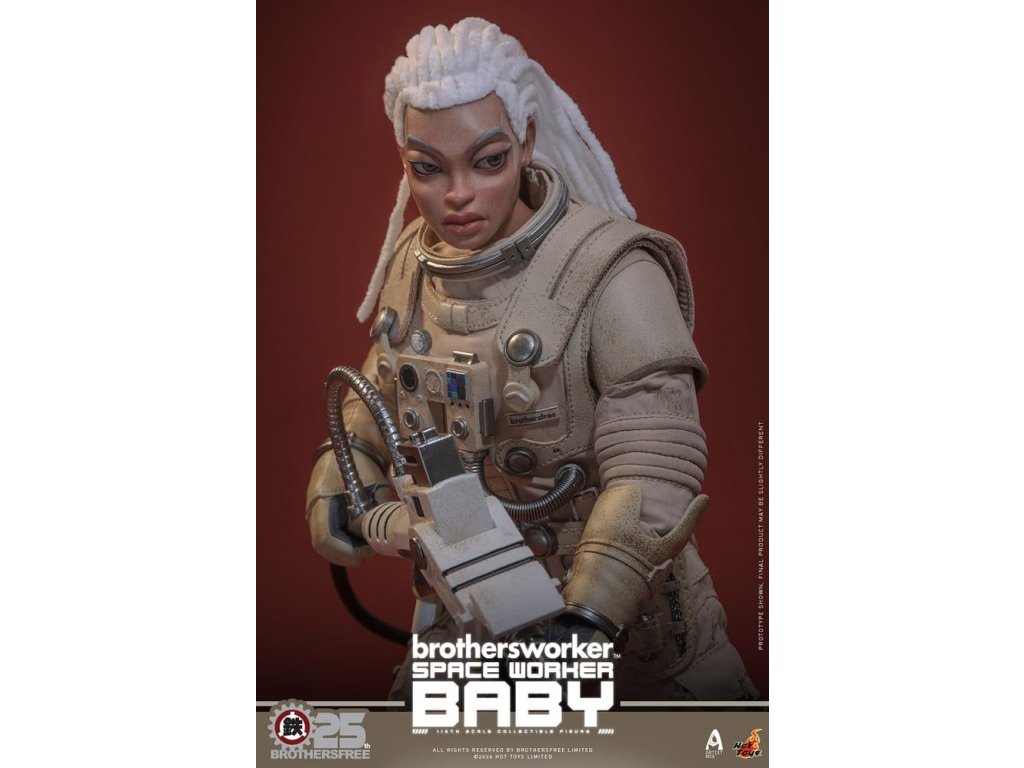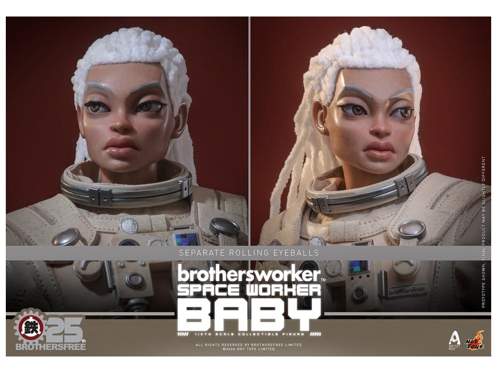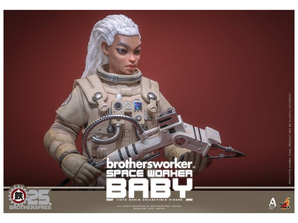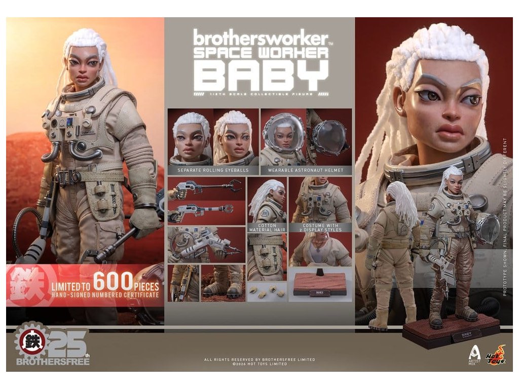 Na oslavu 25. výročí Brothersfree a Hot Toys jsou hrdí, že představují zbrusu nový spolupracovní projekt: Vesmírný dělník Baby. Tato sběratelská akční figurka spojuje tvůrčího ducha Brotherfree s řemeslným uměním Hot Toys, což poprvé vede milovaného Babyho za hranice městských ulic a motivů dělníků do vesmíru. Omezená edice jen 600 kusů je vizionářskou poctou 25 let inovací - nenechte si to ujít! Figurka pro sběratele Vesmírný dělník Baby v šesté míře nabízí nově vyvinutou Baby hlavu s oddělenými očními koulemi a bílými bavlněnými vlasy, což figurce dodává jedinečný stylizovaný kouzlo. Figurka měří 27,5 cm, má plně artikulované spoje a je vybavena čtyřmi vyměnitelnými rukavicovými rukama – včetně páru rukou pro volný postoj a páru rukou držících nástroje pro údržbu a akční polohy. Oblečený v béžovém skafandru s důstojnickou helmou s magneticky odnímatelným zvedacím štítkem, je výbava Vesmírného dělníka Baby doplněna krkavicí, podrobnou vestou s mechanickým ovládacím modulem, pásem s pouzdry na nástroje, vnitřní bundou, tričkem, náhrdelníkem s logem Brothersfree a botami, které dokončují estetiku vesmírného dělníka. Mezi nástroje patří chňapací nástroj, kleště a svařovací pistole, které kollektorům poskytnou zábavné rekvizity spojující sci-fi s pracovním stylem. Sada je dokončena na speciálně navrženém stojanu na figurky s motívem Marsu. Tuto limitovanou edici doprovází jednotlivě číslované potvrzení o pravosti, osobně podepsané Kenny Wongem, Winson Ma a William Tsang - vzácný trojitý podpis, který oslavuje tuto spolupráci výročí a zároveň zaručujé jedinečnost a odkaz každého kusu. Nenechte si ujít toto perfektní centrum pro fanoušky designových hraček a věrné sběratele Brothersfree!