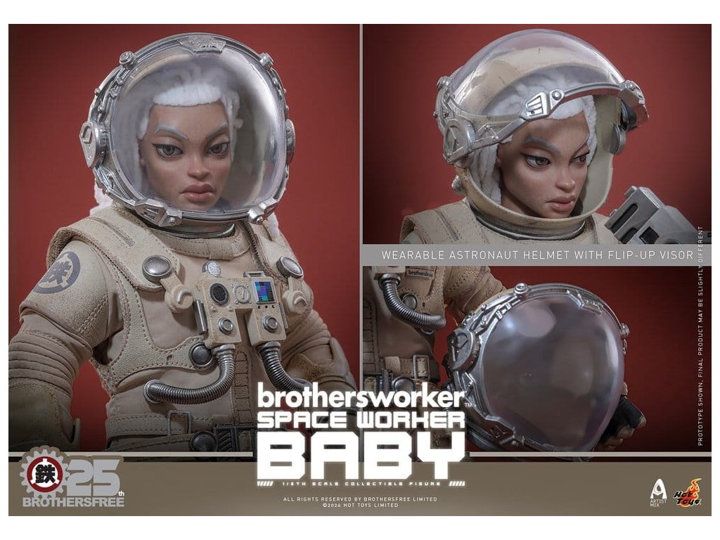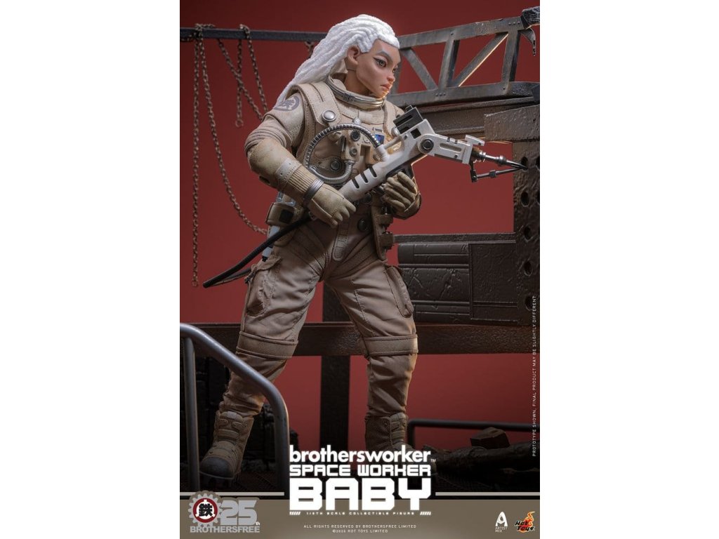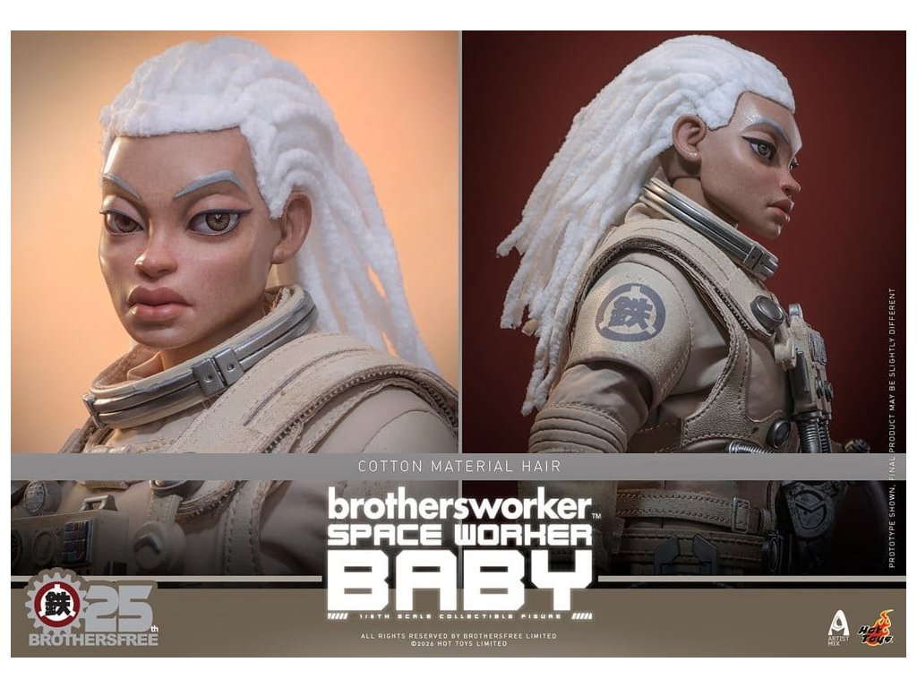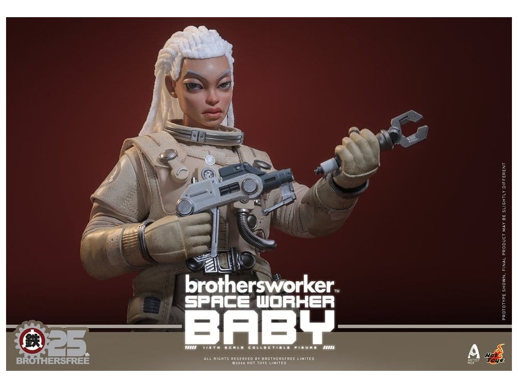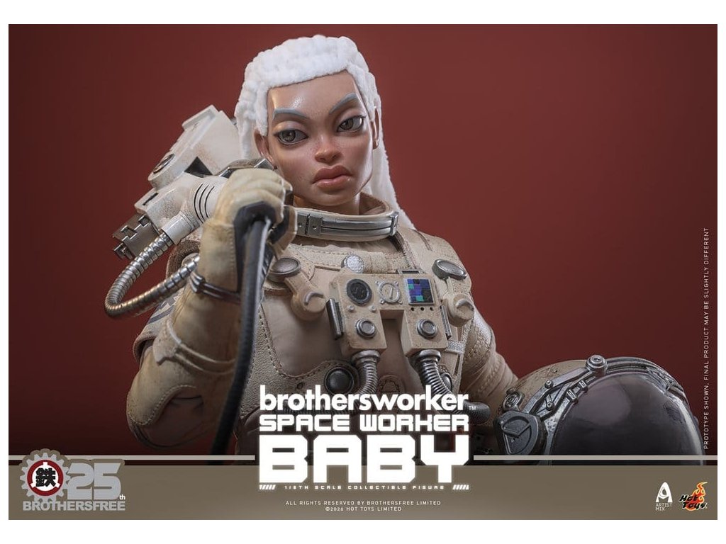 Na oslavu 25. výročí Brothersfree a Hot Toys jsou hrdí, že představují zbrusu nový spolupracovní projekt: Vesmírný dělník Baby. Tato sběratelská akční figurka spojuje tvůrčího ducha Brotherfree s řemeslným uměním Hot Toys, což poprvé vede milovaného Babyho za hranice městských ulic a motivů dělníků do vesmíru. Omezená edice jen 600 kusů je vizionářskou poctou 25 let inovací - nenechte si to ujít! Figurka pro sběratele Vesmírný dělník Baby v šesté míře nabízí nově vyvinutou Baby hlavu s oddělenými očními koulemi a bílými bavlněnými vlasy, což figurce dodává jedinečný stylizovaný kouzlo. Figurka měří 27,5 cm, má plně artikulované spoje a je vybavena čtyřmi vyměnitelnými rukavicovými rukama – včetně páru rukou pro volný postoj a páru rukou držících nástroje pro údržbu a akční polohy. Oblečený v béžovém skafandru s důstojnickou helmou s magneticky odnímatelným zvedacím štítkem, je výbava Vesmírného dělníka Baby doplněna krkavicí, podrobnou vestou s mechanickým ovládacím modulem, pásem s pouzdry na nástroje, vnitřní bundou, tričkem, náhrdelníkem s logem Brothersfree a botami, které dokončují estetiku vesmírného dělníka. Mezi nástroje patří chňapací nástroj, kleště a svařovací pistole, které kollektorům poskytnou zábavné rekvizity spojující sci-fi s pracovním stylem. Sada je dokončena na speciálně navrženém stojanu na figurky s motívem Marsu. Tuto limitovanou edici doprovází jednotlivě číslované potvrzení o pravosti, osobně podepsané Kenny Wongem, Winson Ma a William Tsang - vzácný trojitý podpis, který oslavuje tuto spolupráci výročí a zároveň zaručujé jedinečnost a odkaz každého kusu. Nenechte si ujít toto perfektní centrum pro fanoušky designových hraček a věrné sběratele Brothersfree!