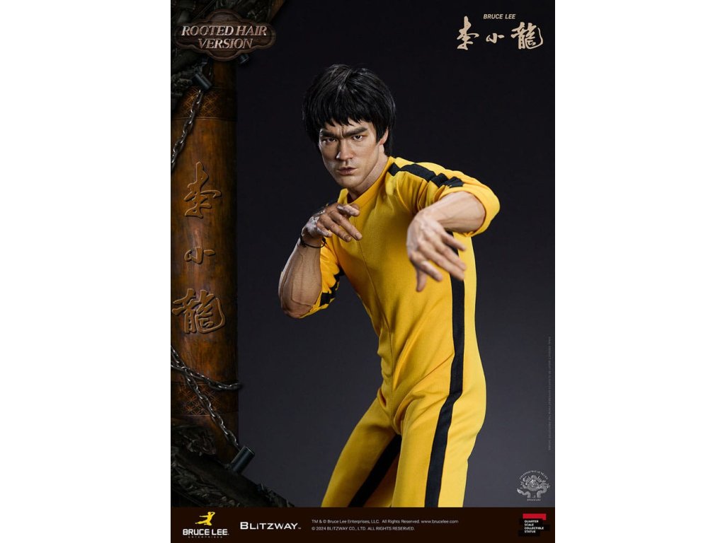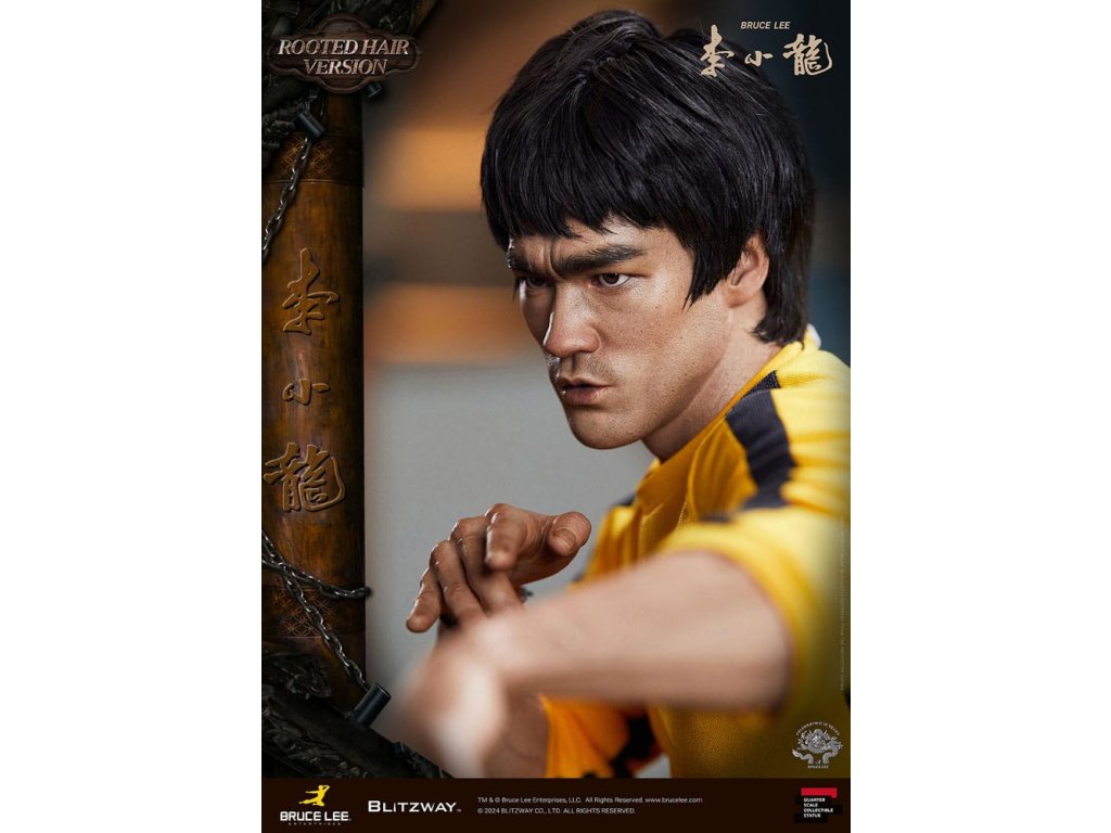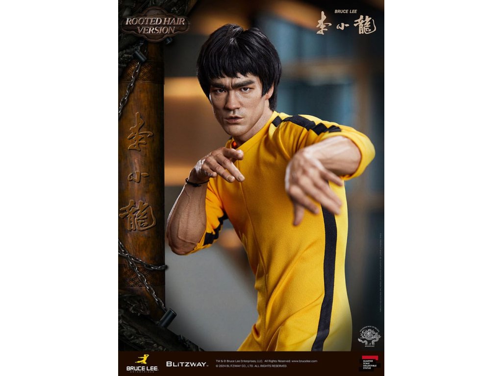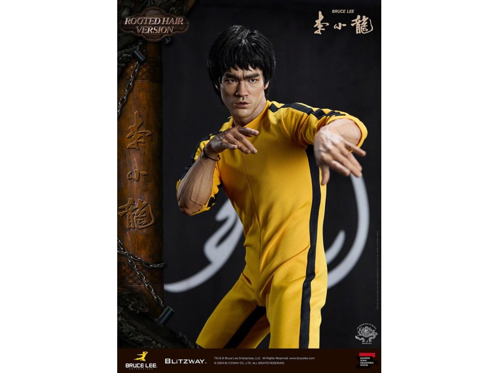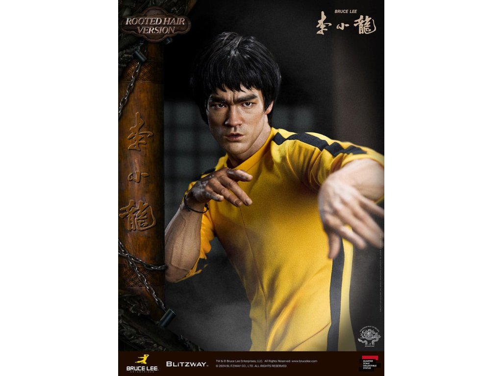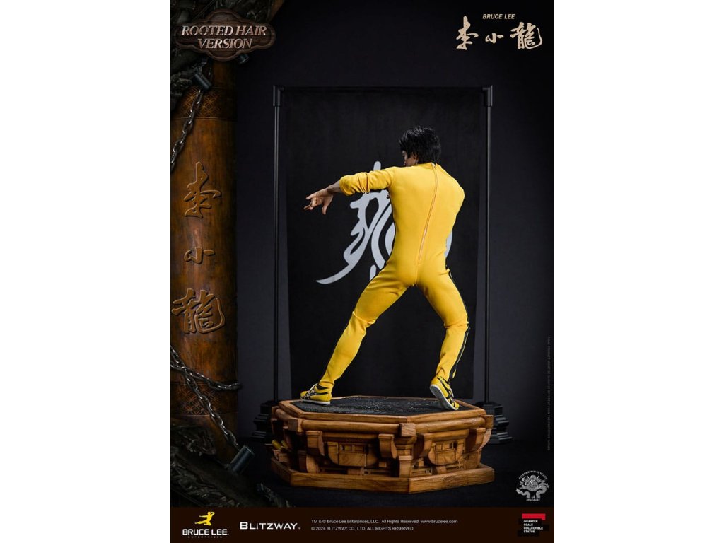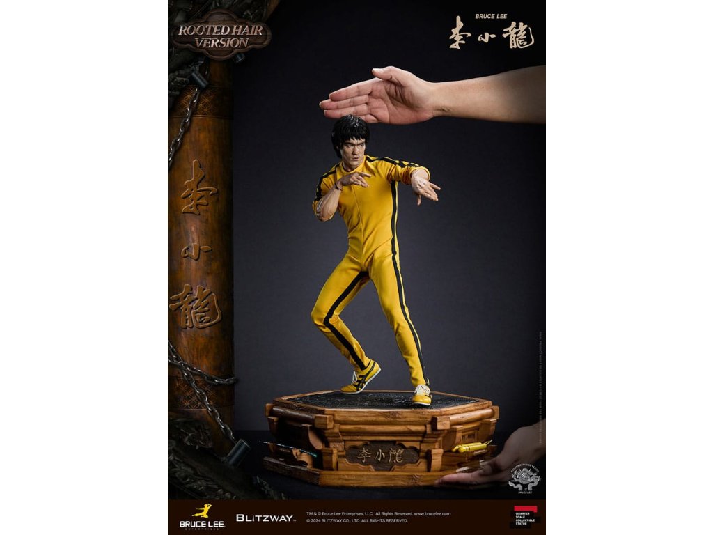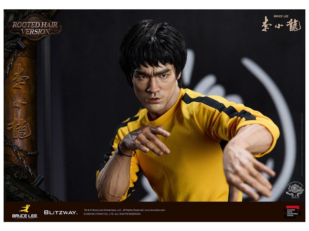 Po zavedení standardní verze minulou sezónu jsme nadšeni, že můžeme představit speciální sochu Bruce Lee ve verzi s rostlými vlasy pro jeho 50. výročí. Byla vytvořena ke 50. výročí jeho úmrtí a inspirovaly ji ikonické scény bojových umění z jeho filmů. Se dynamickými pózami odrážejícími jeho charakteristickou mistrovskou techniku, detailně vyřezávanými výrazy obličeje a jeho ikonickým žlutým overalem spolu s autentickými doplňky nunchaku, firma Blitzway věrně zachytila jeho podstatu v této speciální soše. Obě verze, standardní i s rostlými vlasy, mají své jedinečné kouzlo, takže se určitě podívejte na jejich jednotlivé kouzlo v detailu na oficiálních fotografiích. Navíc obě verze mají pryskyřičné hlavy pro lepší realismus a detail. Blitzway také představil novou metodu vkládání očí pro realističtější výrazy očí u těchto dvou produktů. Na počest 50. výročí Bruce Leeho směřujeme naši poctu všem sběratelům, kteří oslavují jeho trvalé dědictví. Zažijte bezkonkurenční pozornost k detailům na vlastní kůži! Specifikace produktu: - Velikost sochy přibližně 21,4 palce vysoká [Š 360 mm x Hl 320 mm x V 545 mm (včetně základny)] - Vysoce detailní podobizna sochy Bruce Leeho - Vychytaně upravené a navržené oblečení - Základna ve stylu orientální dřevěné architektury - 1 x Nunchaku - 1 x tyč - 2 x dioramové vlajky - 1 x náramek.
