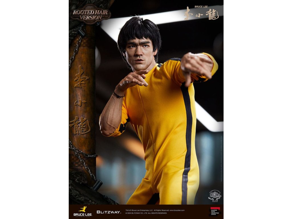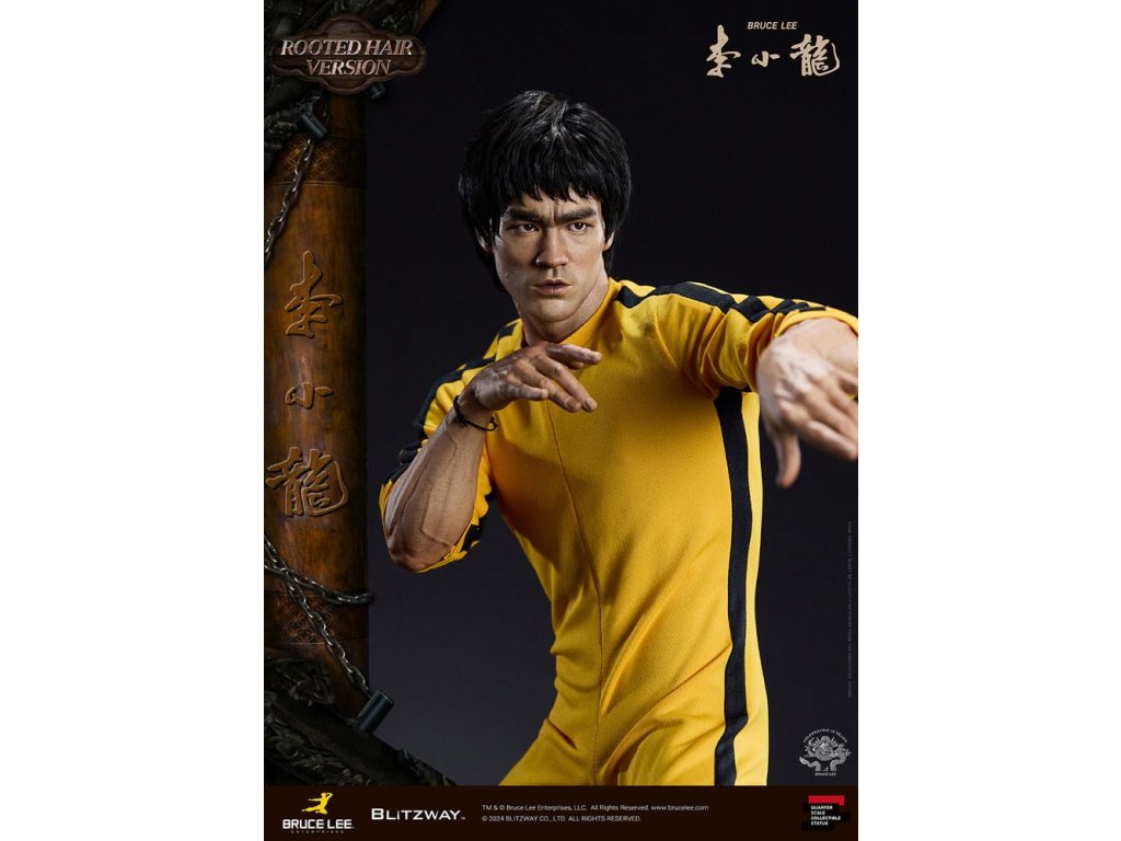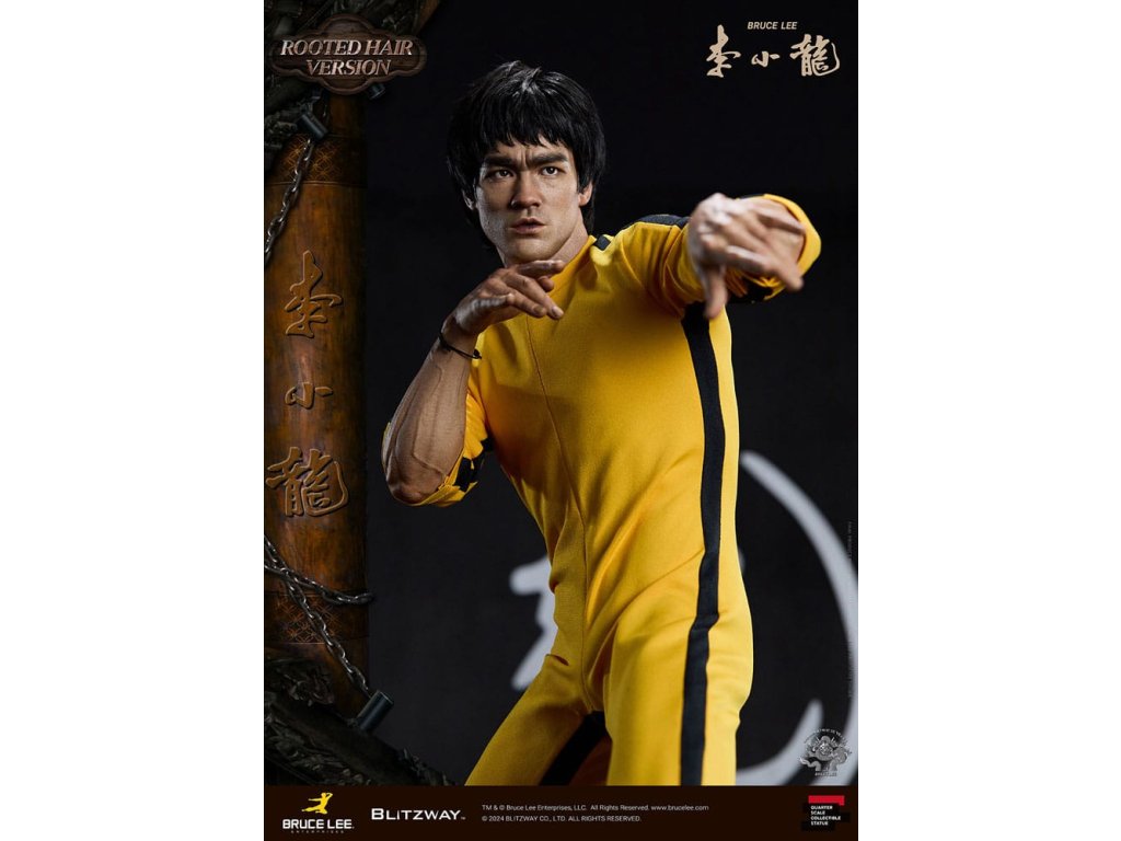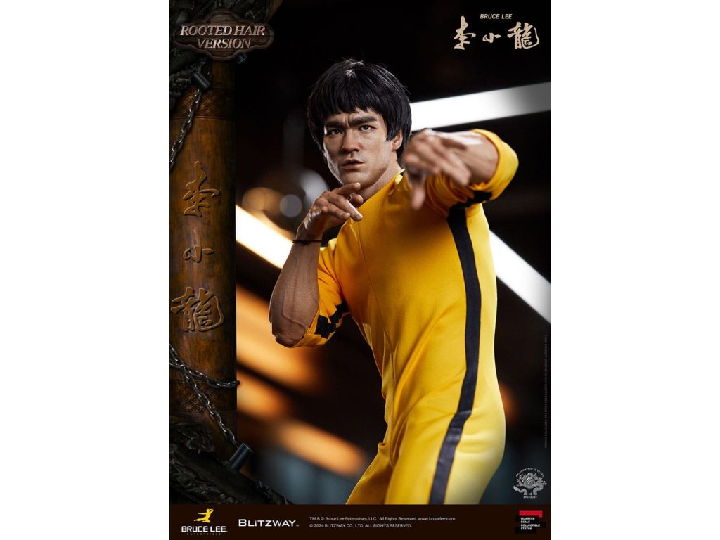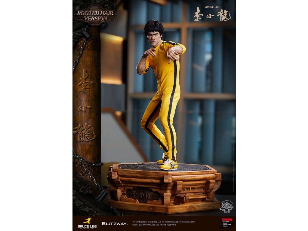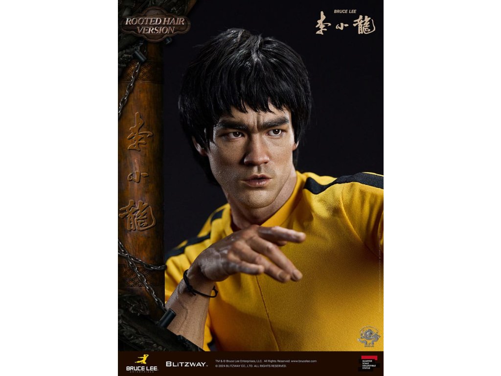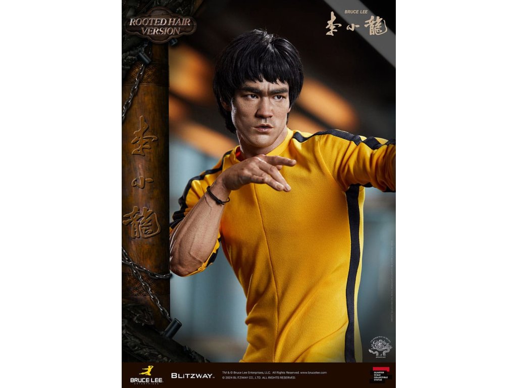 Po zavedení standardní verze minulou sezónu jsme nadšeni, že můžeme představit speciální sochu Bruce Lee ve verzi s rostlými vlasy pro jeho 50. výročí. Byla vytvořena ke 50. výročí jeho úmrtí a inspirovaly ji ikonické scény bojových umění z jeho filmů. Se dynamickými pózami odrážejícími jeho charakteristickou mistrovskou techniku, detailně vyřezávanými výrazy obličeje a jeho ikonickým žlutým overalem spolu s autentickými doplňky nunchaku, firma Blitzway věrně zachytila jeho podstatu v této speciální soše. Obě verze, standardní i s rostlými vlasy, mají své jedinečné kouzlo, takže se určitě podívejte na jejich jednotlivé kouzlo v detailu na oficiálních fotografiích. Navíc obě verze mají pryskyřičné hlavy pro lepší realismus a detail. Blitzway také představil novou metodu vkládání očí pro realističtější výrazy očí u těchto dvou produktů. Na počest 50. výročí Bruce Leeho směřujeme naši poctu všem sběratelům, kteří oslavují jeho trvalé dědictví. Zažijte bezkonkurenční pozornost k detailům na vlastní kůži! Specifikace produktu: - Velikost sochy přibližně 21,4 palce vysoká [Š 360 mm x Hl 320 mm x V 545 mm (včetně základny)] - Vysoce detailní podobizna sochy Bruce Leeho - Vychytaně upravené a navržené oblečení - Základna ve stylu orientální dřevěné architektury - 1 x Nunchaku - 1 x tyč - 2 x dioramové vlajky - 1 x náramek.