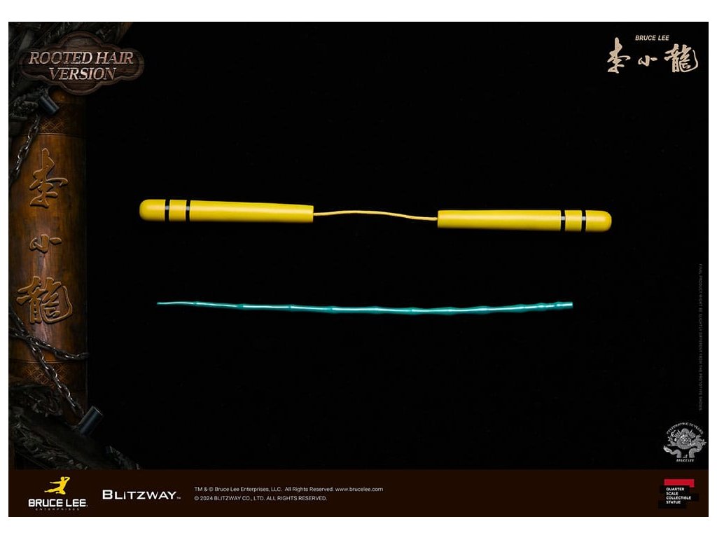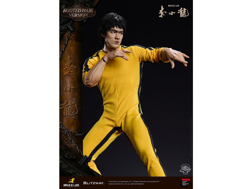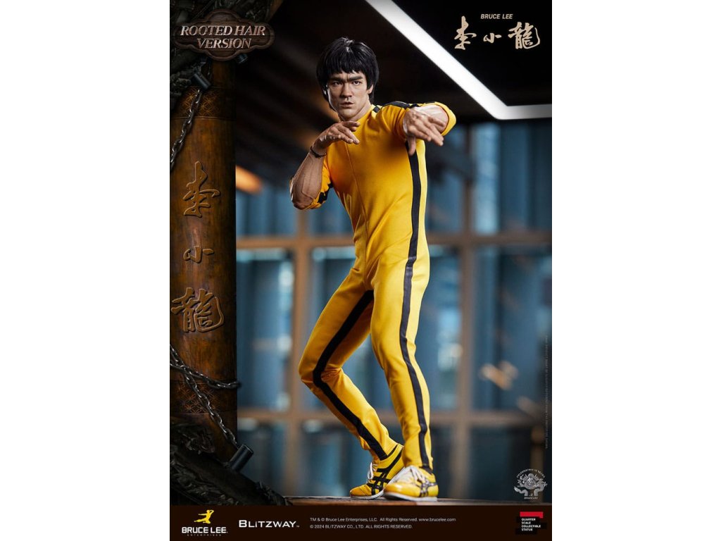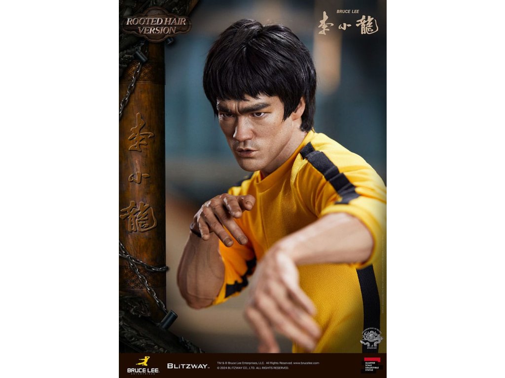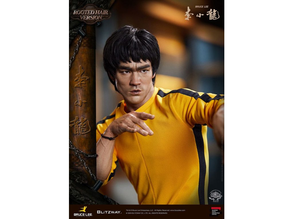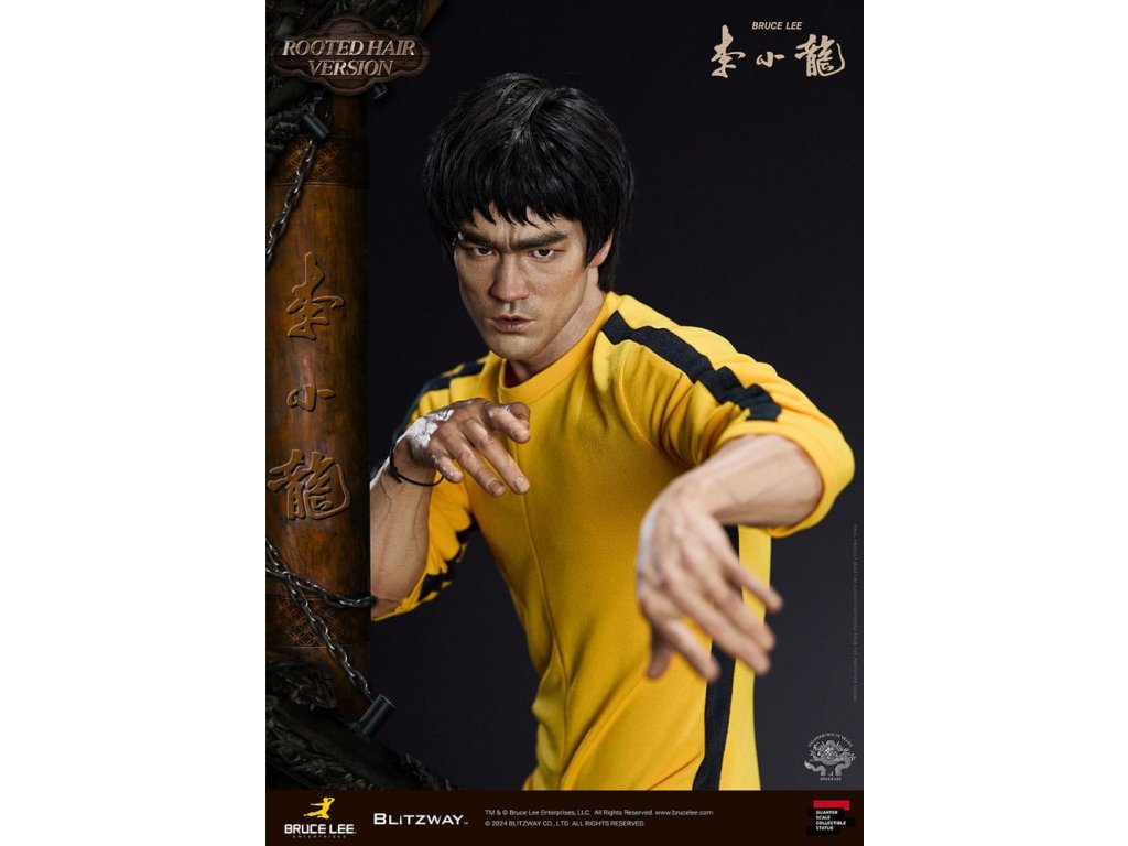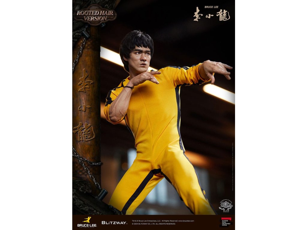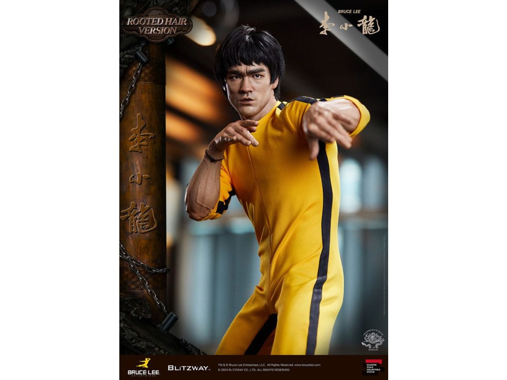 Po zavedení standardní verze minulou sezónu jsme nadšeni, že můžeme představit speciální sochu Bruce Lee ve verzi s rostlými vlasy pro jeho 50. výročí. Byla vytvořena ke 50. výročí jeho úmrtí a inspirovaly ji ikonické scény bojových umění z jeho filmů. Se dynamickými pózami odrážejícími jeho charakteristickou mistrovskou techniku, detailně vyřezávanými výrazy obličeje a jeho ikonickým žlutým overalem spolu s autentickými doplňky nunchaku, firma Blitzway věrně zachytila jeho podstatu v této speciální soše. Obě verze, standardní i s rostlými vlasy, mají své jedinečné kouzlo, takže se určitě podívejte na jejich jednotlivé kouzlo v detailu na oficiálních fotografiích. Navíc obě verze mají pryskyřičné hlavy pro lepší realismus a detail. Blitzway také představil novou metodu vkládání očí pro realističtější výrazy očí u těchto dvou produktů. Na počest 50. výročí Bruce Leeho směřujeme naši poctu všem sběratelům, kteří oslavují jeho trvalé dědictví. Zažijte bezkonkurenční pozornost k detailům na vlastní kůži! Specifikace produktu: - Velikost sochy přibližně 21,4 palce vysoká [Š 360 mm x Hl 320 mm x V 545 mm (včetně základny)] - Vysoce detailní podobizna sochy Bruce Leeho - Vychytaně upravené a navržené oblečení - Základna ve stylu orientální dřevěné architektury - 1 x Nunchaku - 1 x tyč - 2 x dioramové vlajky - 1 x náramek.
