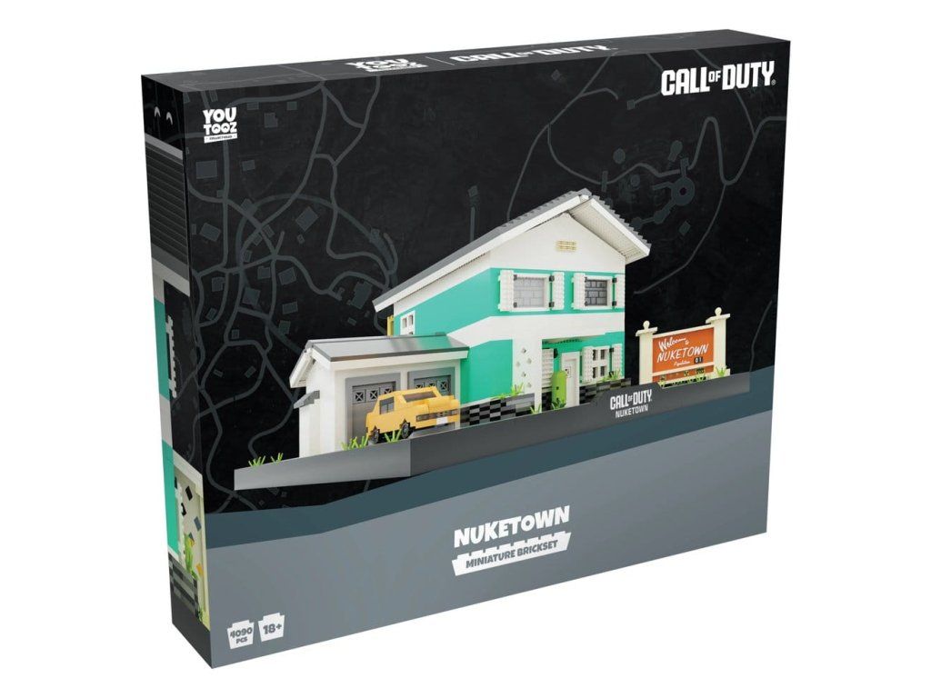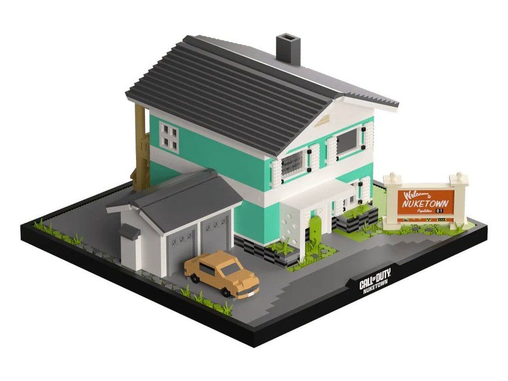 Vítejte v Nuketown, hezký den! Jste připraveni dosáhnout prestiže po jedné kostičce s touto precizně zpracovanou stavebnicí Nuketown z Call of Duty? Na levé straně příjezdové cesty je zaparkované žluté auto, na pravé straně stojí béžovo-oranžová cedule s nápisem "Welcome to Nuketown - Population 01" na bujné zelené trávě. Okna domu s bílým orámováním jsou zatarasená, aby zabránila vniknutí protivníků, a kolem stěn vede dvojice světle modrých pruhů až k bledě žlutému schodišti vzadu. Tato stavebnice obsahuje 4 090 dílků a má rozměry 38 × 38 × 20 cm. Je dodávána s precizně napsaným návodem, který vám pomůže postavit si vlastní kousek z Call of Duty, a je perfektním pozadím pro vaši Call of Duty Youtooz nebo kohokoli, kdo je MVP!