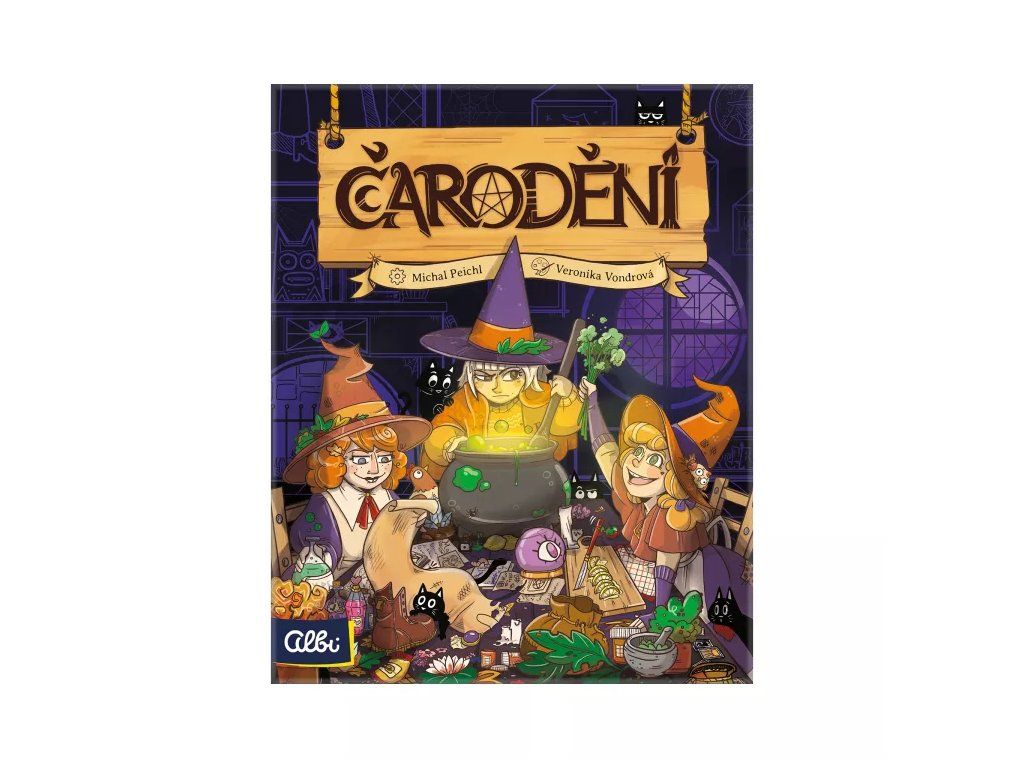 V rodinné hře Čarodění povedete vlastní klan čarodějnic, do kterého budete přijímat nadané kouzelnice. Jejich úkolem bude získat magické suroviny, předměty, recepty lektvarů a další adeptky.