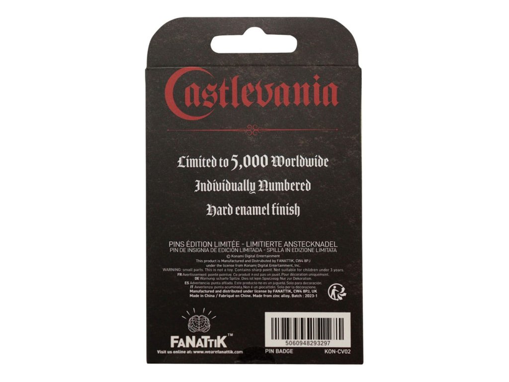 Staňte se lovcem upírů a vstupte do exkluzivního klanu Belmont! Zobrazuje Simona Belmonta a jednu z jeho legendárních citací, tento sběratelský předmět je omezen na 9 995 kusů po celém světě, přičemž každá mince je individuálně číslována. Dokončeno smaltovými detaily, tento sběratelský předmět má v průměru 38 mm. Každá mince je dodávána v ochranném akrylovém poháru a obal lze recyklovat.Doplňkové parametry