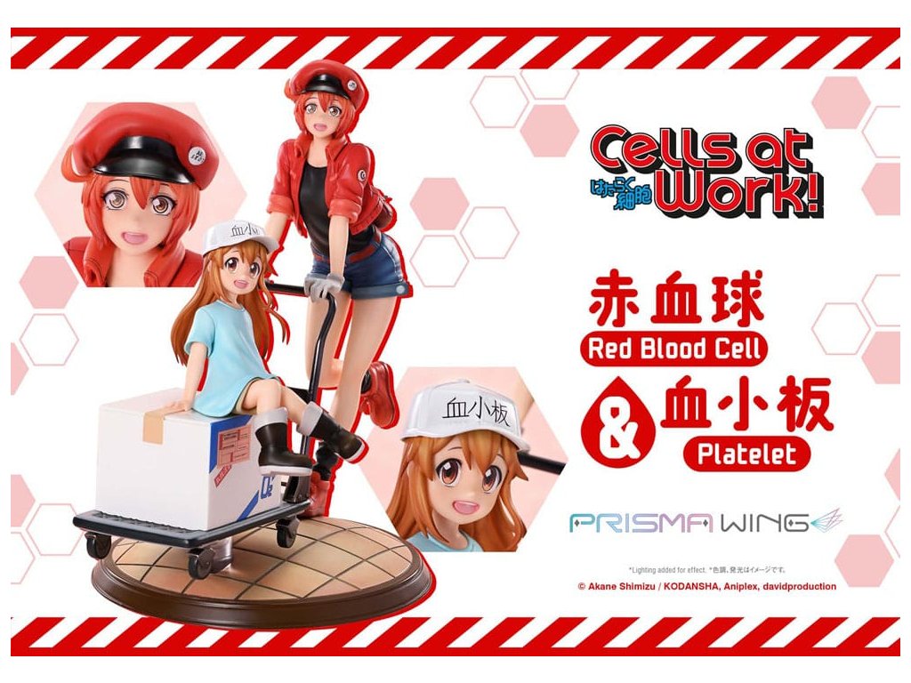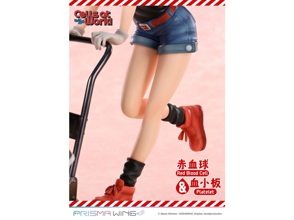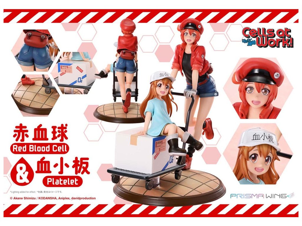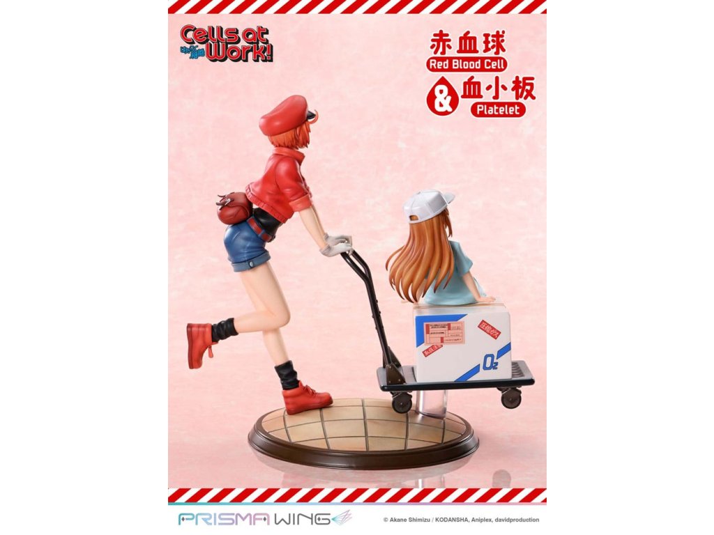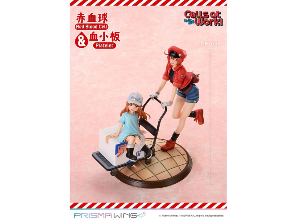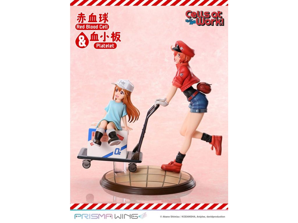 Nesoucí kyslík do buněk ve všech koutech těla, "Červená krevní buňka" a zacelující rány a zastavující krvácení, "Krevní destička". Ze seriálu "Bunky v práci!" přichází živá postavička znázorňující tento pracovitý pár! Při plnění svých specifických rolí spolupracuje červená krevní buňka a krevní destička k udržení míru v těle. Jejich okouzlující a dojemné každodenní životy jsou zachyceny v této dynamické a detailní soše. Od štíhlých proporcí ukazující červenou bundu a džínové šortky, až po vlající hnědé vlasy a rozverně pružící nohet na vozíku, každý pohyb a detail byl pečlivě zpracován. Živé barvy a jemné sochařství oživují podstatu seriálu. Od jejich jasných, vpřed se dívajících výrazů po krabici stlačeného kyslíku, každý element vypráví příběh z útrob těla. "Velka sestra, červená krevní buňka!" "Malá krevní destička!" Jejich veselé hlasy jako by ozývaly v této dojemné scéně. Nechte tuto rozkošnou dvojici přinést moment štěstí i vám! Orientační datum vydání: březen 2027