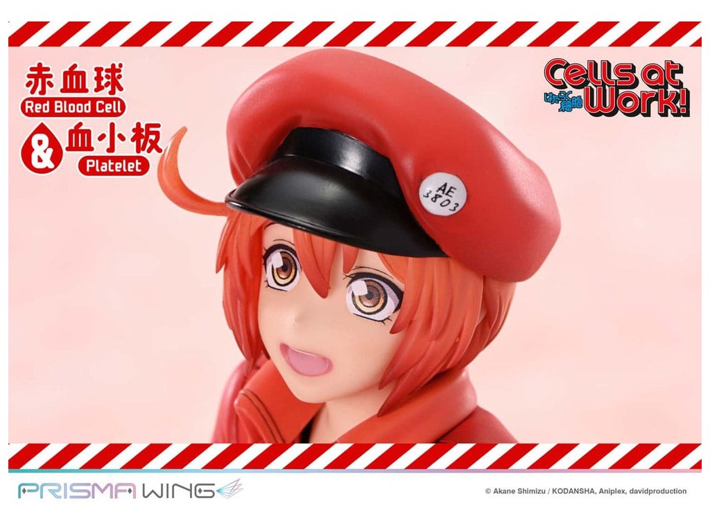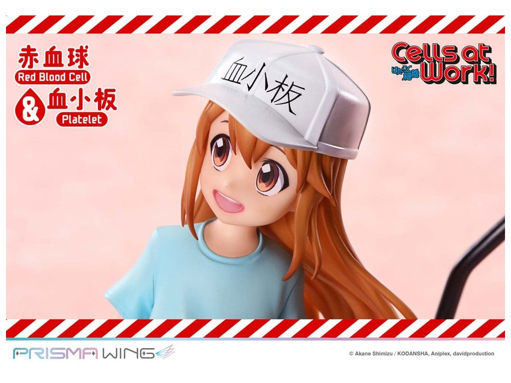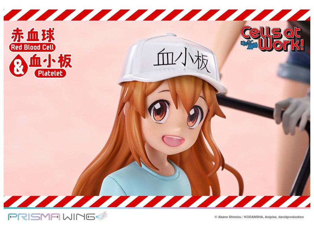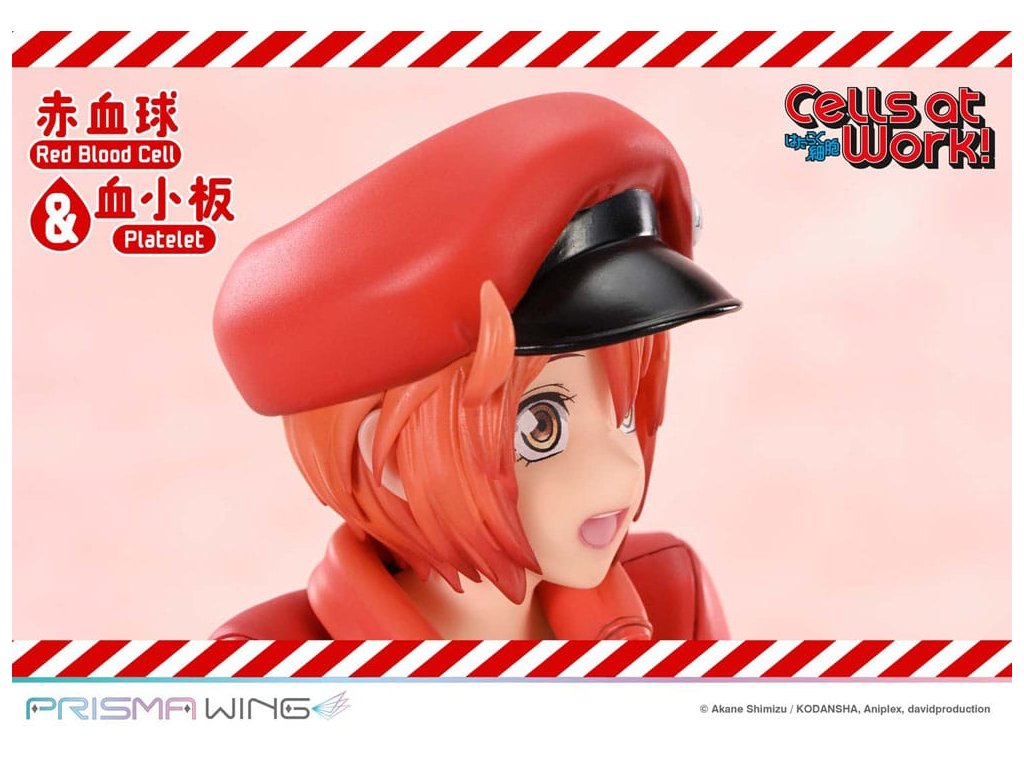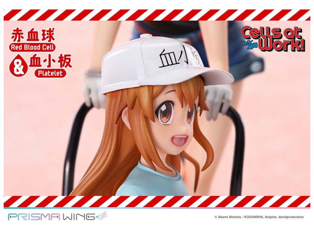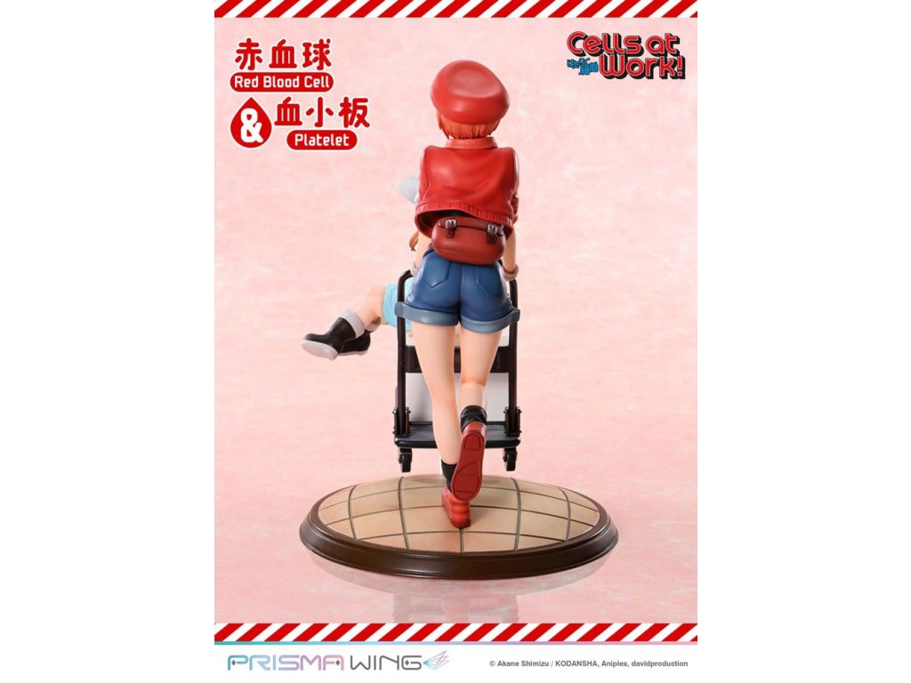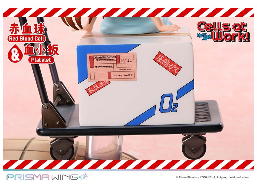 Nesoucí kyslík do buněk ve všech koutech těla, "Červená krevní buňka" a zacelující rány a zastavující krvácení, "Krevní destička". Ze seriálu "Bunky v práci!" přichází živá postavička znázorňující tento pracovitý pár! Při plnění svých specifických rolí spolupracuje červená krevní buňka a krevní destička k udržení míru v těle. Jejich okouzlující a dojemné každodenní životy jsou zachyceny v této dynamické a detailní soše. Od štíhlých proporcí ukazující červenou bundu a džínové šortky, až po vlající hnědé vlasy a rozverně pružící nohet na vozíku, každý pohyb a detail byl pečlivě zpracován. Živé barvy a jemné sochařství oživují podstatu seriálu. Od jejich jasných, vpřed se dívajících výrazů po krabici stlačeného kyslíku, každý element vypráví příběh z útrob těla. "Velka sestra, červená krevní buňka!" "Malá krevní destička!" Jejich veselé hlasy jako by ozývaly v této dojemné scéně. Nechte tuto rozkošnou dvojici přinést moment štěstí i vám! Orientační datum vydání: březen 2027