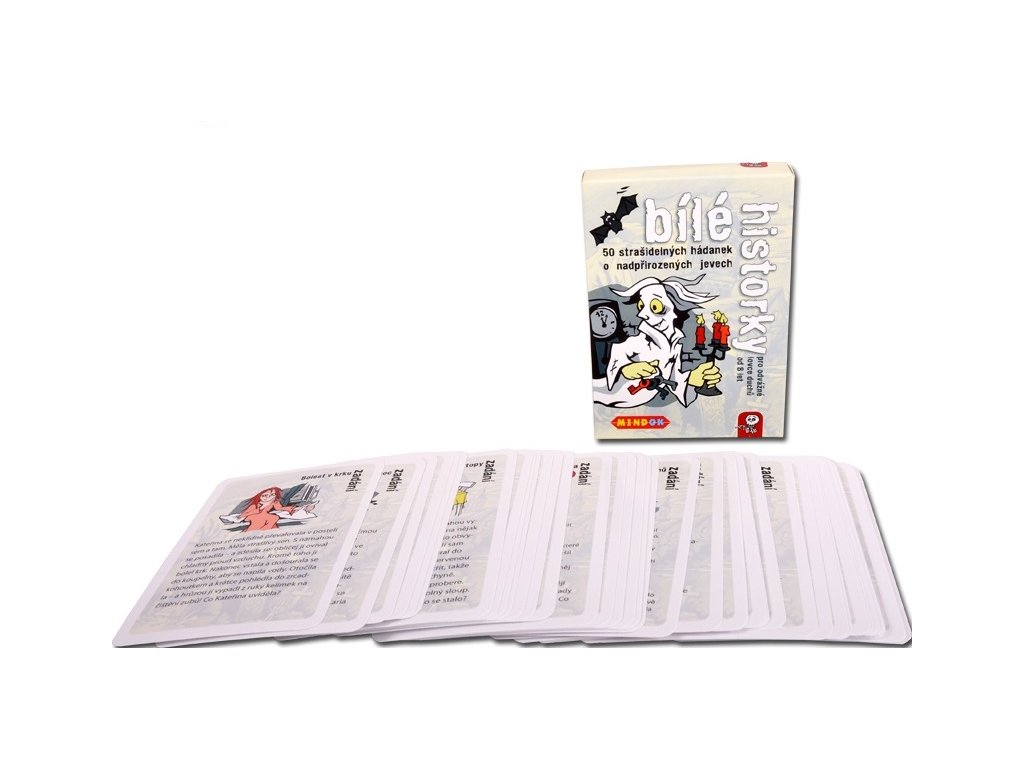 V bílých historkách vystupují duchové a další tajemné bytosti. Hráči se snaží zrekonstruovat celou historku pomocí otázek, na které jim moderátor odpovídá pouze "ano" nebo "ne". Strašidelná hra na jakoukoliv oslavu, k vodě nebo třeba na cestu autem.