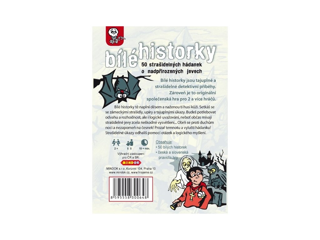 Po velkém úspěchu hry Černé historky je tu i varianta pro děti od 8 let. Bílé historky jsou zapeklité, mysteriózní záhady pro děti i dospělé s jakýmkoliv vztahem k hrám.