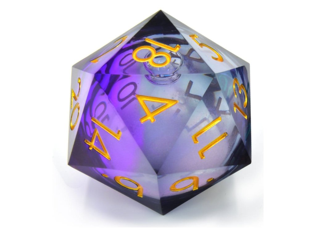 Buďte ve velkém nebo jděte domů! Tyto d20 jsou podstatně větší než váš normální d20. Jsou to skutečně konverzační kus a něco, co můžete použít na ty speciální hody! Vyrobeno z prémiové pryskyřice, tento d20 je odlitý ručně a má ostré hrany. Uvnitř má tekuté jádro s třpytivými částicemi. Tento d20 je pečlivě vyvážený, aby zajistil férovou hru, mají na nich čitelná čísla.