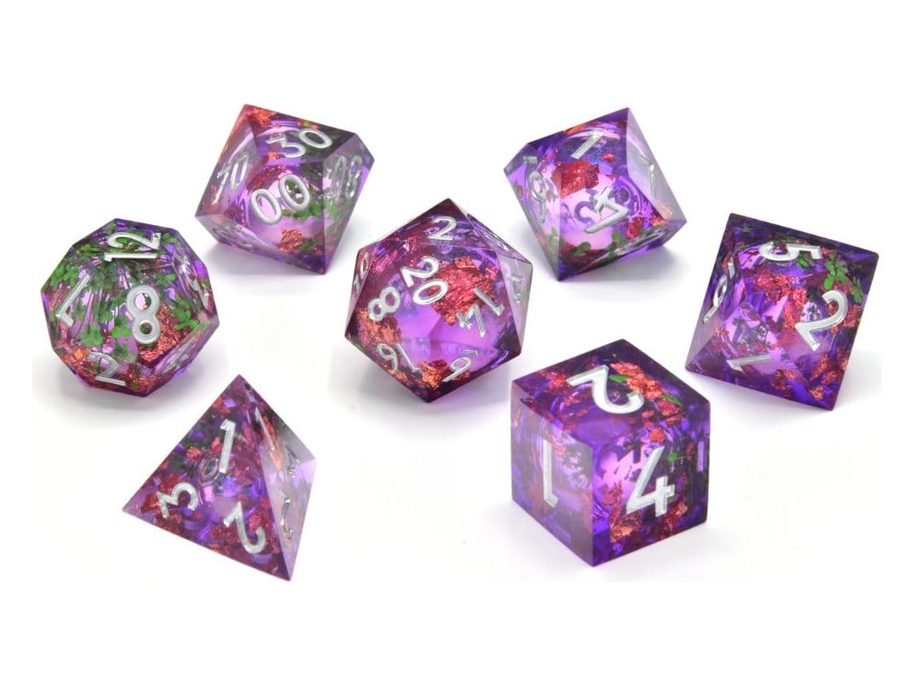 Tyto RPG kostky jsou vyrobeny z vysoce kvalitní pryskyřice a mají ostré hrany. Uvnitř každé kostky je tekuté jádro, které dodává jejich charakteristický efekt sněhové koule! To znamená, že když se tyto kostky hodí, tekutina uvnitř se zakrouží a částice uvnitř budou třpytit a lesknout se. Můžete si být jisti, že každého uchvátíte, když budete házet těmito třpytivými kostkami! Jsou vyrobeny z prémiové pryskyřice, tyto kostky jsou odlévány ručně a mají ostré hrany. Uvnitř mají tekuté jádro s třpytivými částicemi v nich. Tato sada obsahuje všechny standardní polyhedrální kostky - d4, d6, d8, d10, d12, d20 a procentuální kostku (d10 označených desítkami). Obsahuje: 7 kostek.