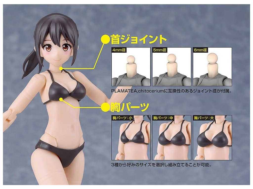 Jednoduchá a bezproblémová montáž! Představujeme artikulovaný plastový model bishojo těla, Muse Tělo: Ichika - Bikini Ver. pro sérii PLAMATEA! Model má výšku cca 145 mm. Klouby modelu jsou plně artikulovány. Hlavní tělo obsahuje přibližně 70 dílů. Předem natřený obličej s úsměvem a sada dvou tváří (s úsměvem x 1, neutrální tvář x 1), které lze přizpůsobit s očními nálepkami, jsou součástí balení. Model obsahuje čtyři typy dílů rukou: zavřené ruce, otevřené ruce, ruce s pokojovým znamením a držící ruce. Díry pro držící ruce mají průměr 3 mm, což modelu umožňuje držet předměty, které jsou kompatibilní s velikostí otvoru. Součástí balení jsou tři typy krčních dílů s různými průměry kuličkových kloubů (4 mm, 5 mm a 6 mm). Hlavové díly dříve vydaných výrobků PLAMATEA lze také připevnit k tomuto výrobku. Součástí balení jsou také tři typy hrudních dílů (malé, střední a velké). Na rukou a nohách jsou také součástí kovové části ve stejné barvě jako části bikin. K dispozici jsou také typy B a C, které mají odlišné barvy vlasů, stejně jako exkluzivní verze zlatých bikin dostupná pouze v internetovém obchodě GSC! Orientační datum vydání: září 2026