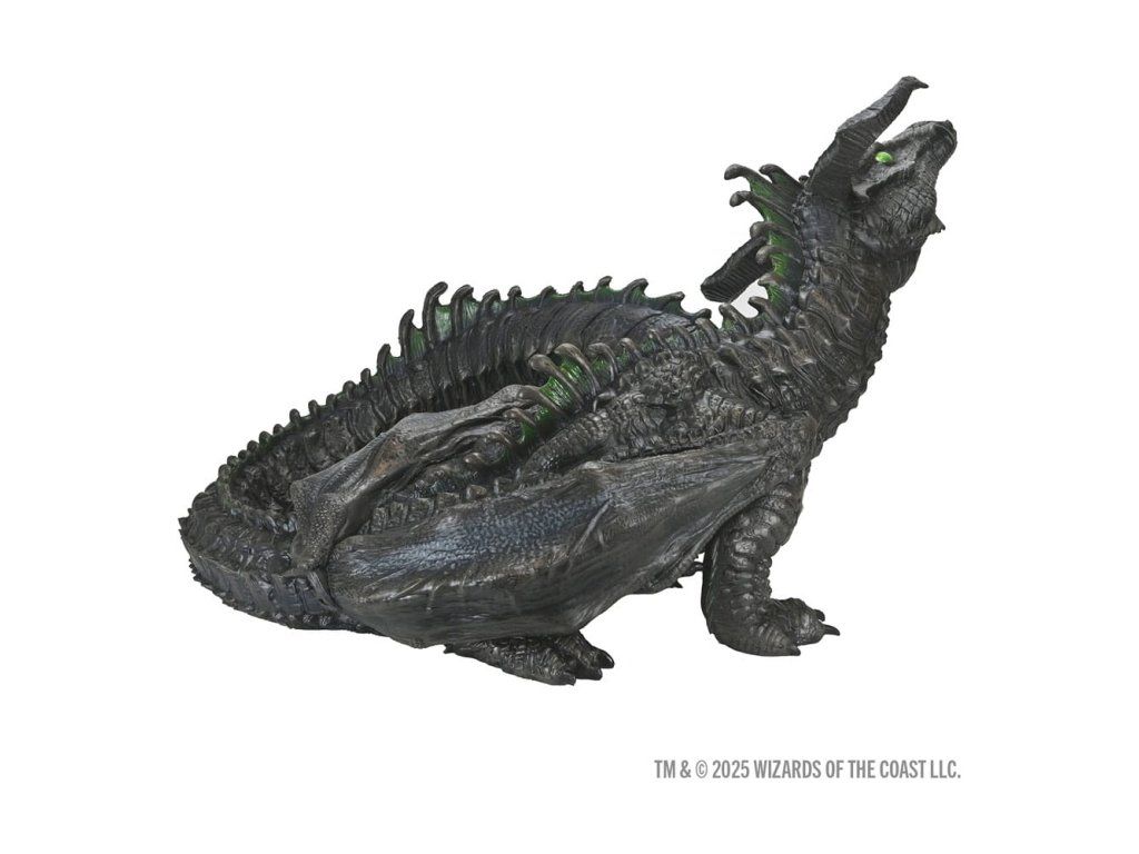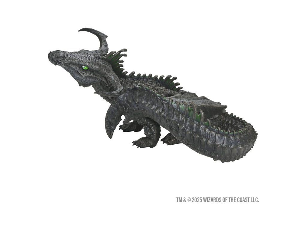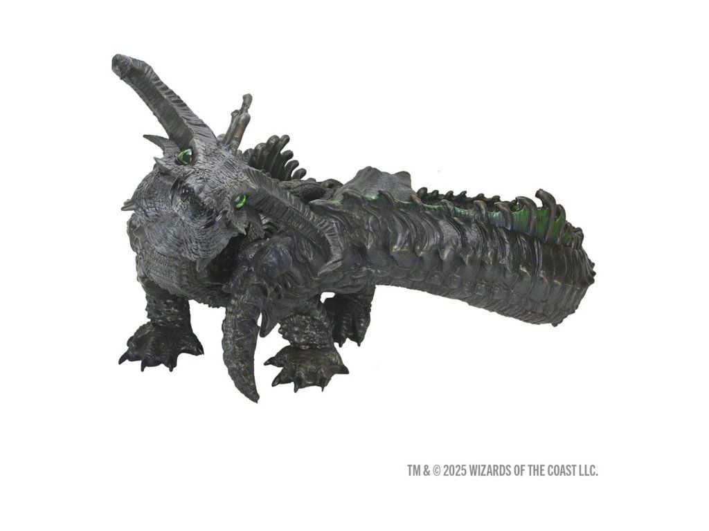 Inspirováno černým drakem z Monster Manualu 2025, tato pěnová figurína mladého černého draka (wyrmling) je dokonalým doplňkem do vaší herny, obchodu i domova. Prakticky žadoní o pohlazení po hlavě — jen si dejte pozor na kyselý dech! S výškou 1,5 stopy (46 cm) je figurína D&D – Repliky světa Realms: Černý drak (wyrmling) vyrobena z lehké, odolné pěny a ručně malovaná tak, aby vynikla každá šupina, hřeben i dráp.