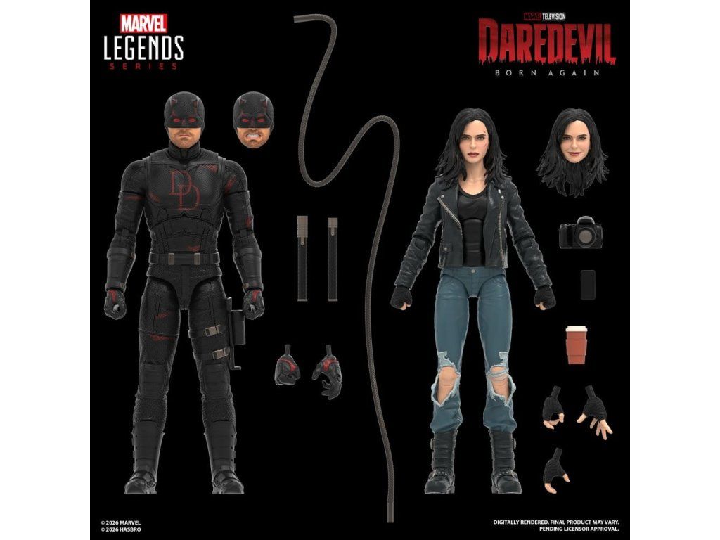 Přineste vzrušení a úžas ze světa Marvel do své sbírky s akční sadou Hasbro Marvel Legends: Daredevil & Jessica Jones. Tato sběratelská sada figurek v měřítku 6 palců (cca 15 cm) je propracovaná tak, aby odpovídala vzhledu postav ze seriálu Daredevil: Born Again od Marvel Television. Každá figurka je plně artikulovaná s prémiovým designem a pohyblivou hlavou, pažemi a nohama. Sada obsahuje 13 doplňků: Jessica Jones má 3 náhradní ruce, náhradní hlavu, zrcadlovku (SLR), mobilní telefon a kelímek na kávu; Daredevil má 2 náhradní ruce, náhradní hlavu, 2 obušky (billy club) a propojovací lanko. Šestipalcové figurky Hasbro Marvel (cca 15 cm) jsou ideální pro vystavení ve sbírkách fanoušků. Vytvořte na své poličce scény inspirované seriálem s figurkami Marvel Legends a dalšími Marvel sběratelskými kousky.