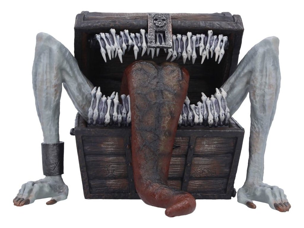 Oficiálně licencovaný sběratelský kus známého Mimic z série DARK SOULS, jehož velikost je 11,2 cm a je vyroben s důkladnou precizností. Vyznačuje se odnímatelným víkem, roztaženýma rukama, vyčnívajícím jazykem a ostrými, hrozivými zuby, všechny vylit z vysoce kvalitní pryskyřice a ručně malované. Bezpečně balené, aby všechny složité části dorazily v bezchybném stavu, což jej činí ideálním pro výstavu nebo dárek. Perfektní pro fanoušky DARK SOULS, sběratele videoher, nadšence pro fantasy a milovníky jedinečné hororově laděné dekorace. Tato skříňka Mimic je nutností pro jakoukoli sbírku DARK SOULS, dokonale zachycuje neklidný kouzlo nejzrádnější pokladnice hry.Rozměry: 11.2 x 18.5 x 9 cm.