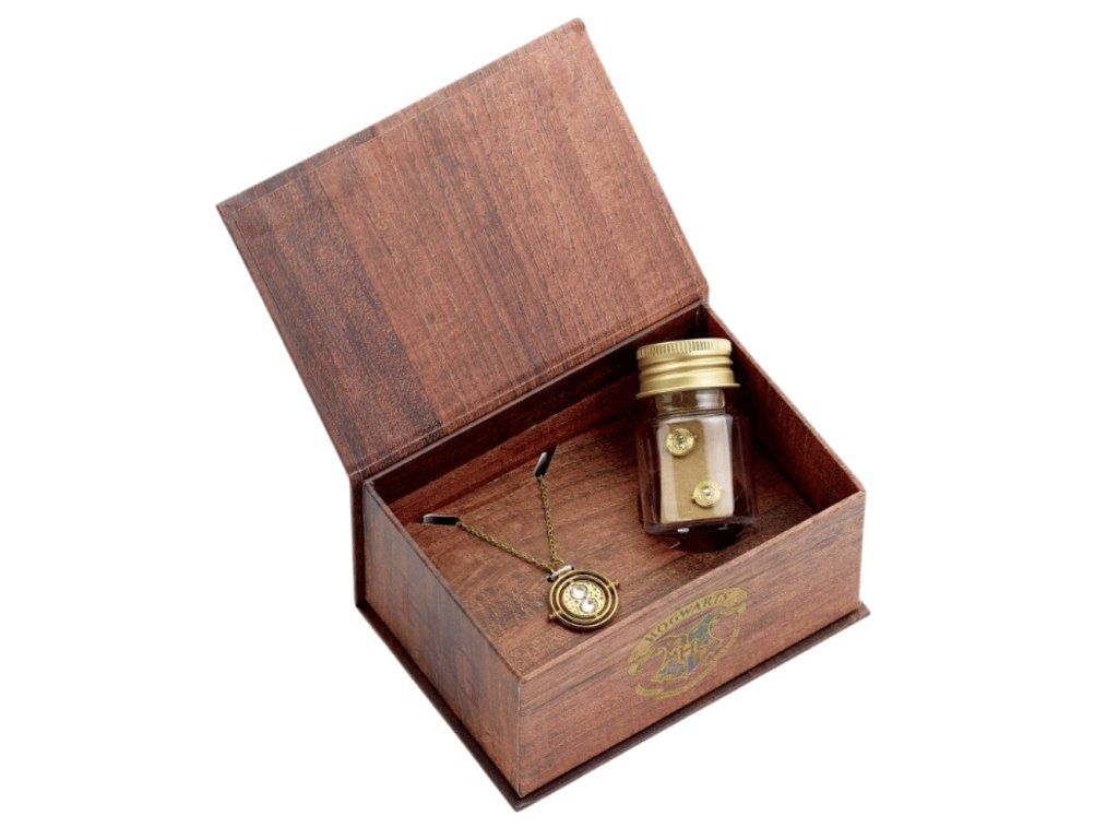 Dárková sada Obraceč času je perfektní volbou pro každého fanouška Harryho Pottera – a zvlášť pro ty, kdo obdivují bystrou Hermionu Grangerovou. Uvnitř najdeš elegantní náhrdelník a náušnice ve tvaru ikonického Obraceče času, se kterým se dá (alespoň v Bradavicích) zvládnout víc hodin najednou. To celé je zabalené v krásné magické papírové krabičce, takže sadu můžeš rovnou darovat – nebo si ji vystavit mezi své poklady.
