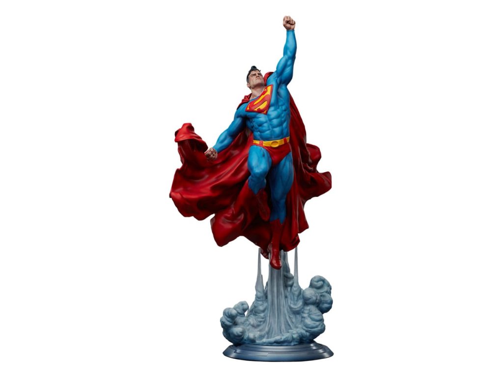 "Nejde o to, kde jsi se narodil nebo jaké máš schopnosti, ani o to, co nosíš na prsou. Jde o to, co děláš... jde o čin." Sideshow představuje sochu Superman ve formátu Premium™, vzrušující DC sběratelský kus, který ztělesňuje neochvějný závazek tohoto superhrdiny k spravedlnosti.Socha Superman ve formátu Premium měří 33" na výšku, 18" na šířku a 15" na hloubku, jelikož se Kal-El vznáší do nebe, aby zachránil den. S pláštěm, který mu vlaje za širokými rameny a zády, se Superman rezolutně vydává do atmosféry a zem pod ním se třese, když odstartuje. Zvedá jednu sevřenou pěst, aby si ukázal cestu k další osobě v nouzi - nebo k dalšímu superschopnému zloduchovi, kterého potřebuje praštit.Tato detailní, plně sochařsky zpracovaná socha Superman ve formátu Premium prezentuje Supermana v jeho nejvýjimečnější podobě. Zahrnuje dvě vyměnitelné podoby, každá s variacemi v účesu a výrazu, takže fanoušci mohou vystavit svou oblíbenou verzi hrdiny. Clark Kentův obětavý alter ego nosí svůj klasický červený, modrý a žlutý komiksový kostým s ikonickým symbolem domu El na svých impozantních prsou. Poslední syn Kryptonu startuje z báze z vířících oblaků, vytvořených čistou silou a grácií jeho pohybu. Od natáčení jeho černých vlasů po zářivou barvu jeho bot a pláště, každý detail ukazuje neuvěřitelnou sílu a odhodlání Supermana.Povýšte svou sbírku do výšek, když si dnes přivezete domů sochu Superman ve formátu Premium!Velikost produktu: 84 x 46 x 38 cm Kvůli velikosti tohoto produktu mohou nastat dodatečné náklady na dopravu. Kromě vaší polohy je třeba zjistit skutečnou velikost a hmotnost balíku, aby se určily tyto náklady. Obojí je v tuto chvíli neznámé a nemusí být k dispozici, dokud produkt nedorazí do našeho skladu.