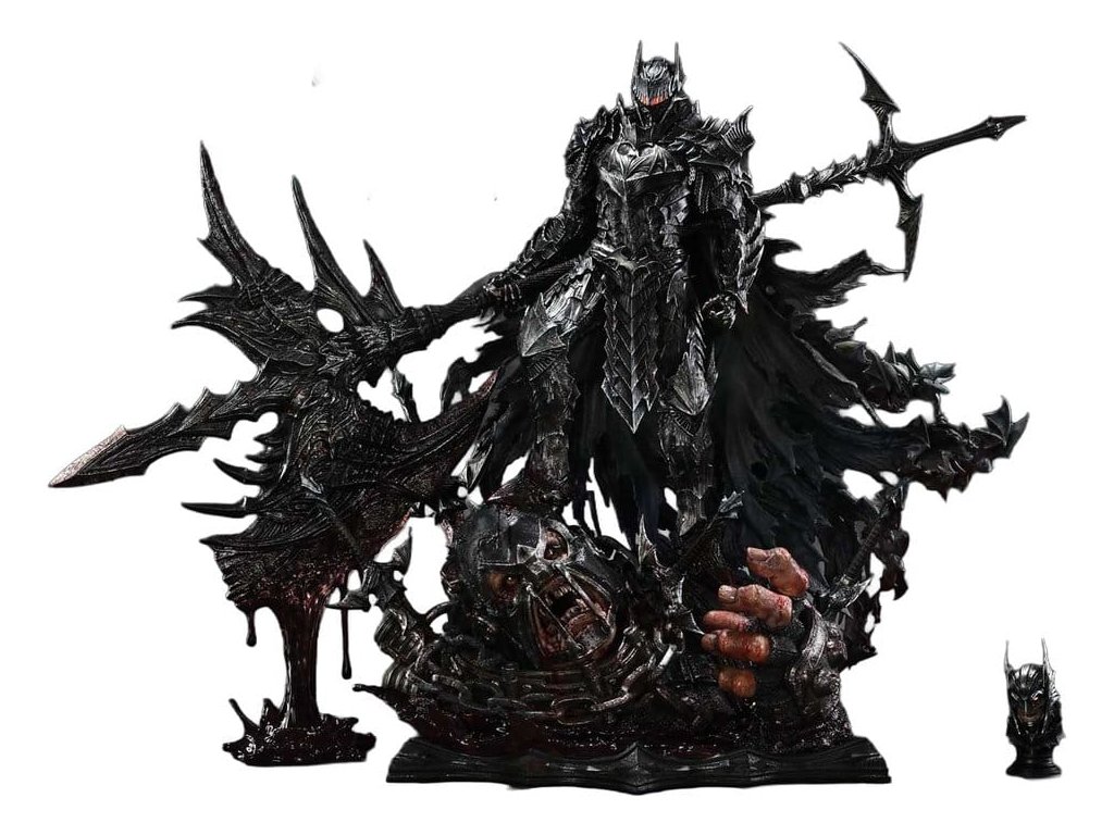 Kolosální úder sekerou přináší rozsudek světu bez spravedlnosti. Rozzuřený Temný rytíř je ztvárněn v měřítku 1/4. Nový hrdina se objevuje v Omnivesmíru DC-Batman: Rozzuřený Režim se připojuje k řadě Ultimate Premium Masterline. Batman, který se sám vydal do světa plného démonů, využívá moc temnoty k boji proti temnotě samotné. Socha ztvárňuje tohoto temného hrdinu navrženého Prime 1 Studiem ve měřítku 1/4. Batman je zde ztvárněn s mohutnou sekerou „Judgment of Faith“ - fúzí čtyř zbraní, která vytváří silnou siluetu a hustě propracované detaily. Celotvářová helma představuje konečnou formu přeměny, která reaguje na prudké emoce. Červená LED osvětlení v očích vyjadřuje vztek téměř požírající veškerou rozumovost. Brnění, které tělo svazuje jako pouta, bylo vytvořeno v duchu temné ochrany a zdůrazňuje zlověstnou přítomnost. Z široce se rozprostírajícího pláště vzlétají netopýři, čímž se zvyšuje drama momentu. U jeho nohou leží Bane, přeměněný v démonickou bytost a probodnutý mečem. Jeho rozostřené oči, ztuhlé prsty a těžká přítomnost helmy a řetězů jsou provedeny s pečlivým důrazem na texturu a barvu, což zachycuje realismus posledního, umírajícího křiku. Meč Smrtonoše, Kopí Spravedlnosti, Phantom Sekera a Démonský zabiják. Všechny čtyři zbraně jsou zahrnuty také v jejich původních, před fúzových formách. Ve spojení s hlavou první formy, která odhaluje ústa, a levou paží vybavenou prodlouženou čepelem na zápěstí, můžete vytvořit řadu dramatických scén. Představuje Prime 1 Studio, rozzuřený Temný rytíř. Ve vaší sbírkové místnosti se otevírá příběhový oblouk, který dosud nikdo neviděl. Specifikace výrobku: - Batman: Rozzuřený - tématem základny - 2 x vyměnitelné hlavy (konečná forma; první forma) - 5 x vyměnitelné pravé paže (Rozsudek víry, Meč smrtonoše, Kopí spravedlnosti, Phantom sekera, Démonský zabiják) - 2 x vyměnitelné levé paže (holá ruka, čepel na zápěstí) - 1 x stojan na hlavu - LED osvětlení (Batmanovy oči) Způsob napájení LED: TBD * Připravte si prosím baterie, USB kabely nebo jiné potřebné předměty v závislosti na konečné metodě napájení. Orientační datum vydání: říjen 2027