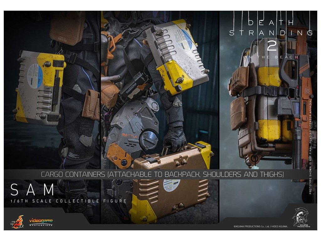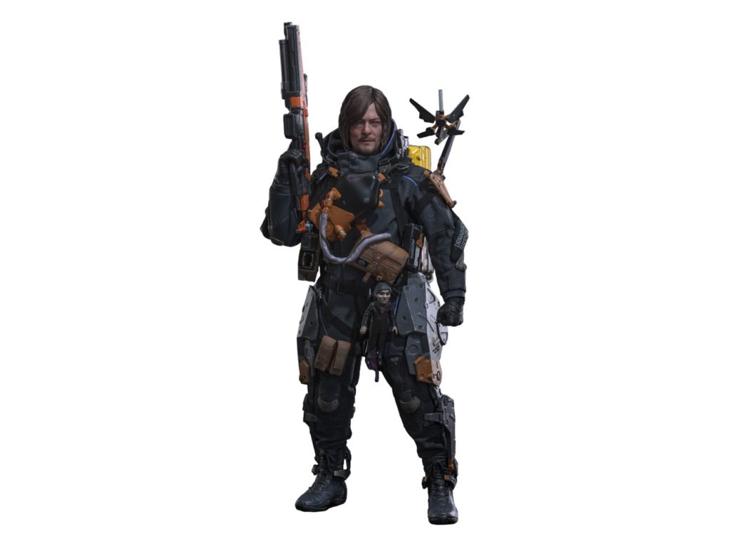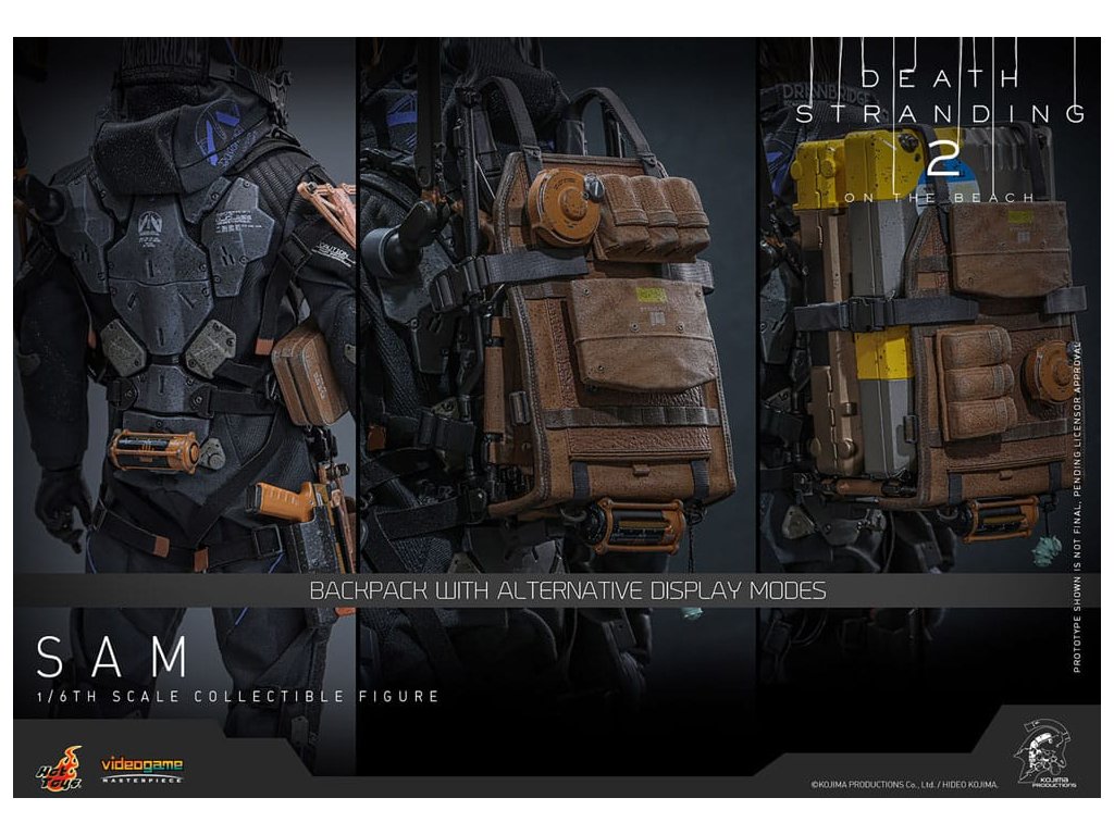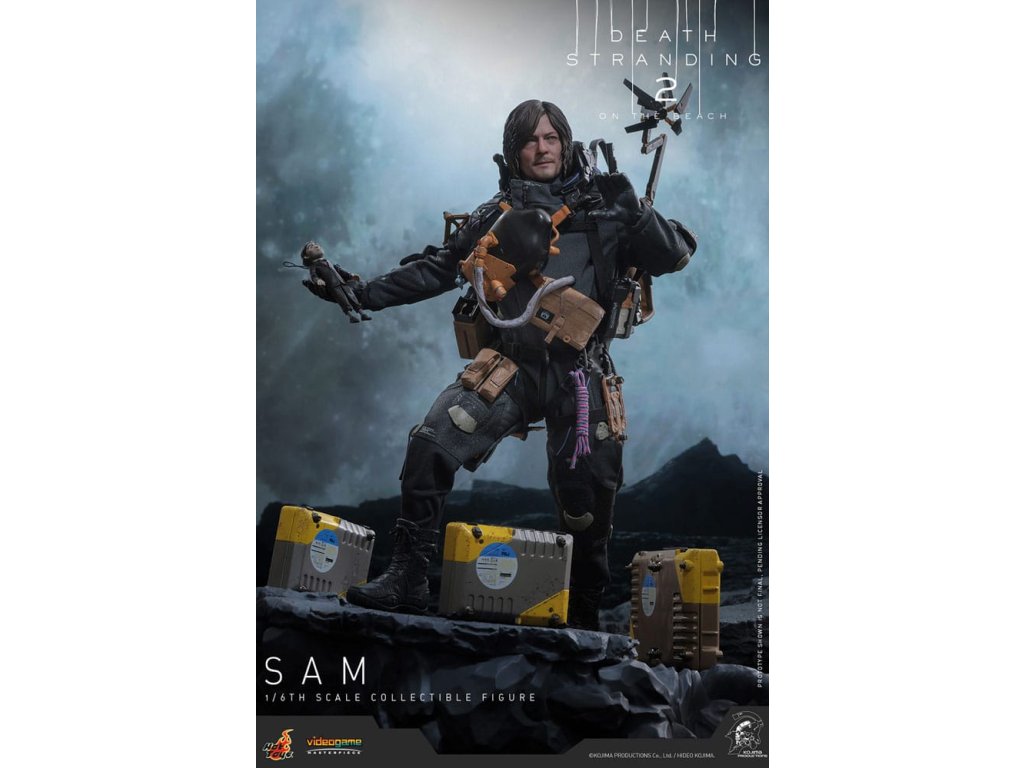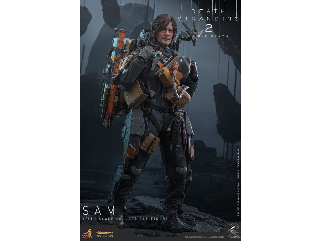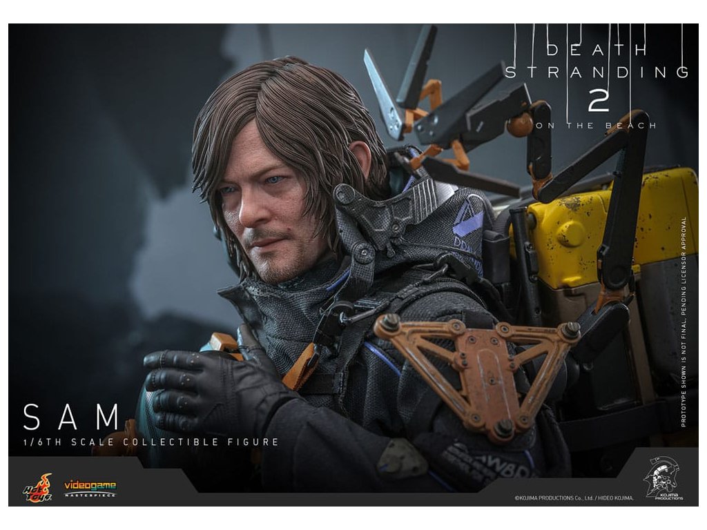 V Death Stranding 2: Na Pláži se hlavní postava Sam Porter Bridges vydává na misi napříč postapokalyptickou Austrálií, snaží se znovu spojit izolované komunity prostřednictvím sítě Chiral v prostředí nových ekologických hrozeb a výzev v boji. Sideshow a Hot Toys s hrdostí oznamují Samovu sbíratelnou figuru v šesté velikosti, přesně zachycující vzhled Reeduse ve hře. Akční figurka má nově vytesanou hlavu s oddělenými otáčivými očními bulvami a přesně detailní tmavě hnědými vlasy. Jeho oblek Drawbridge incorporuje účinek UV luminózní reflexe, doplněný celotělovým utilitárním postrojem, odnímatelným Bojovým Skeletonem, zádovou brnění s Odradek skenerem a transportními botami - vše předstárlané pro autentický, opotřebovaný realismus. Vybaven devíti rukavicovými rukama je Sam připraven pro jakoukoli scénografii. Jeho arzenál zbraní obsahuje Pramen, Strojovou pistoli, Útočnou pušku Lv2 a složený Krevní Bumerang, který lze připojit k jeho postroji.Figurka je doplněna rozsáhlou sestavou příslušenství. Řada položek je magneticky připojitelných na zadní stranu batohu, včetně zádové ochrany, antigravitačního zařízení Chiral, držáku krystalů Chiral a sady granátových pouzder. Nádoby na náklad jsou k dispozici v středních a velkých velikostech, což umožňuje sběratelům svobodně uspořádat a umístit náklad do batohu nebo na oblek. Příslušenství, které lze připevnit k postroji, zahrnuje velký kontejner na náhradní náboje, pouzdra na granáty, pouzdro na pistoli, polní láhev a utilitární kapsu.Nakonec ale rozhodně ne méně důležitě je součástí ikonický BB Pod s dvěma vyměnitelnými pouzdry k rekreaci různých typů statusu. Nepřehlédněte malé, ale významné detaily, jako je šarm Electrobiote připevněný na Samův batoh, nebo šarm na BB Pod, obojí tak, jak je vidět ve hře. A co se týče kouzla, také Samův výstřední společník Dollman je součástí sady. Figurka je podporována speciálně navrženým stojanem pro figurky. Přineste do svého domova osamělého nosiče, který chodí po okraji světa, Sam spojuje více než jen města, spojuje celou vaši sbírku Death Stranding!