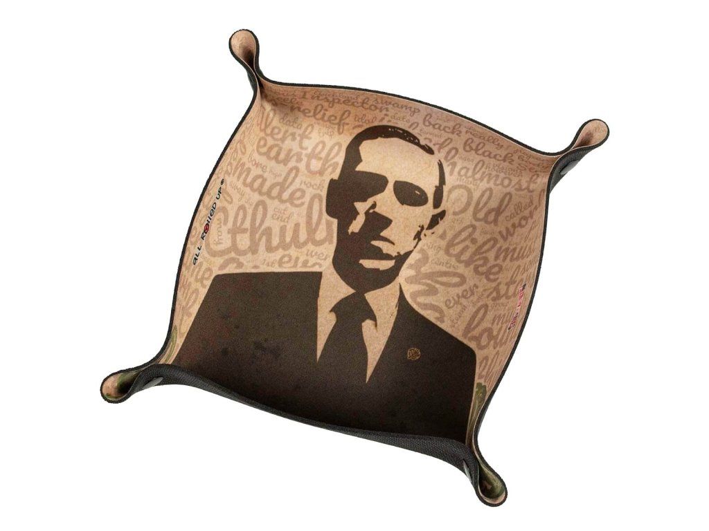 Čtvercová neoprenová skládací podložka na házení kostek s grafikou mistra hororu Mr. Lovecrafta a jeho mýtu Cthulhu se hodí pro všechny hry, kde používáte kostky! Pan Lovecraft skvěle doplní hry na hrdiny jako Call of Cthulhu RPG nebo deskovky Arkham Horror či Temné znamení. Skladnou podložku sestavíte pomocí cvočků v rozích do tvaru misky o rozměrech cca 15 x 15 cm. V rozloženém stavu má tento dice tray rozměry 20,5 x 20,5 cm.