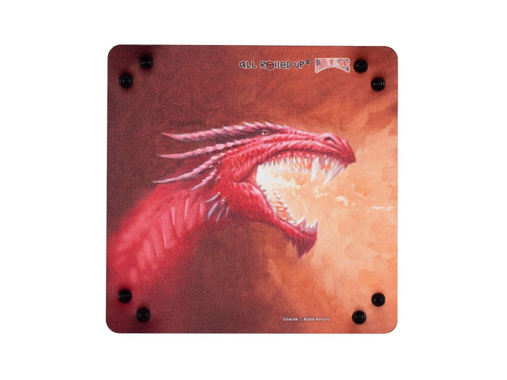 Skládací čtvercový dice tray z neoprenu s grafikou ohnivého draka od Ralpha Horsleye se hodí pro kostkové hry a bude skvělým doplňkem pro hry na hrdiny (např. Jeskyně a draci) či vaše oblíbené deskovky. Skladný Dice Tray sestavíte pomocí cvočků v rozích do tvaru misky o rozměrech cca 15 x 15 cm a v pohodě ji založíte mezi své oblíbené RPG příručky nebo do krabice k deskovce. V rozloženém stavu má házecí podložka rozměry 20,5 x 20,5 cm.skladná a praktická pomůcka