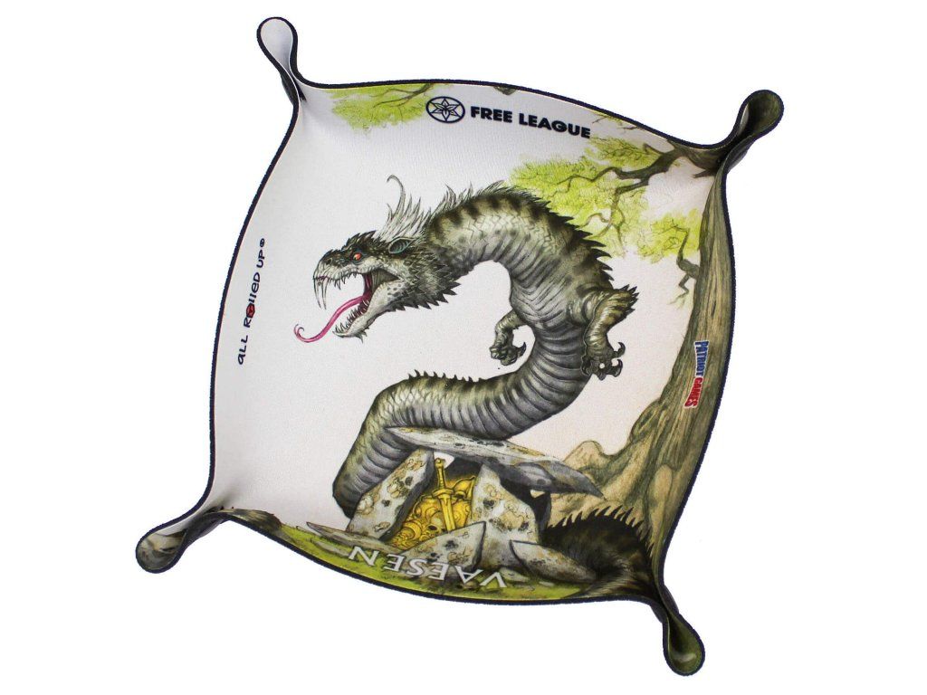 Hezká a šikovná skládací neoprenová podložka s obrázkem červího netvora pro hru na hrdiny Vaesen - RPG. Podložka bude skvělým doplňkem pro vaše kostky. Skladný Dice Tray sestavíte pomocí cvočků v rozích do tvaru misky o rozměrech cca 15 x 15 cm a v pohodě ji založíte mezi své oblíbené RPG příručky nebo do krabice k deskovce. V rozloženém stavu má házecí podložka rozměry 20,5 x 20,5 cm.