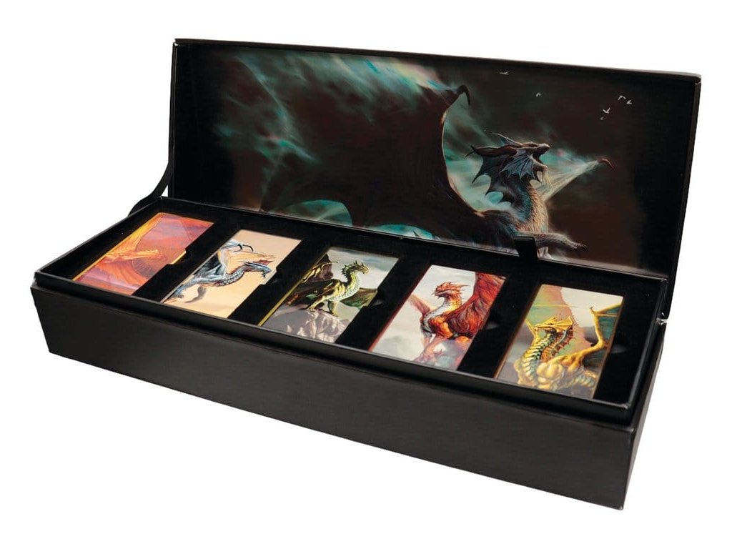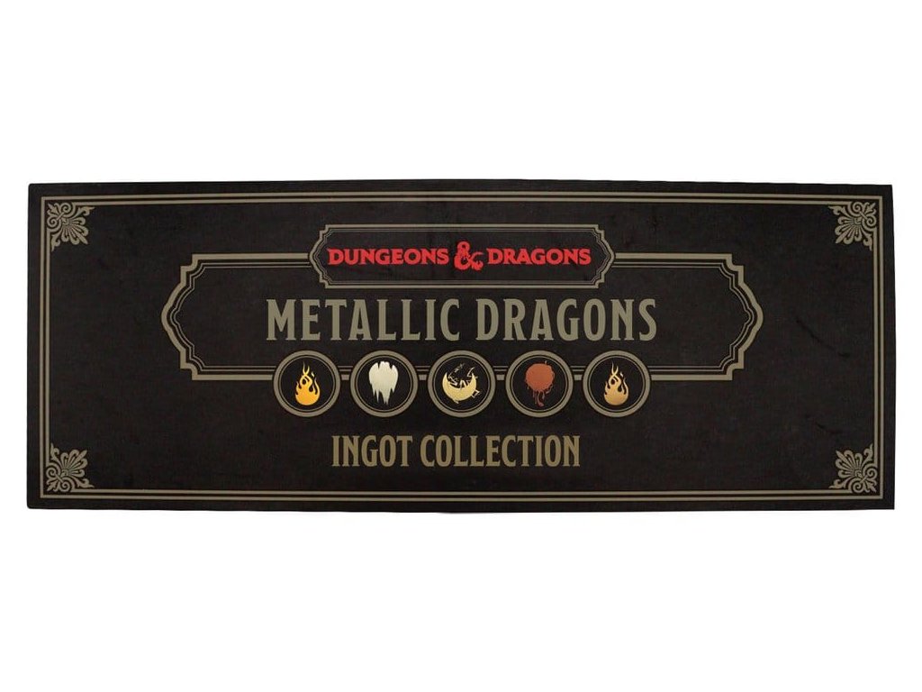 Oslavte legendární Kovové Draky z Dračího Doupěte s touto oficiálně licencovanou sběratelskou sadou 5 Ingots. Legendární draci jsou charakterizováni barvou jejich šupin a uctíváni pro jejich moudrost a sílu, a tito ikonické draci jsou nyní ztělesněni v unikátní kovové kolekci.Tato limitovaná sada obsahuje Zlatého, Stříbrného, Bronzového, Měděného, a Mosazného draka, každý reprezentovaný vlastním detailně propracovaným kovovým Ingotem. Každý kus má oboustranný design s bohatě detailním uměleckým dílem inspirovaným klasickou mytologií Dračí Doupě, což sadě propůjčuje nápadnou prezentaci. S počtem vydaných kusů v celosvětovém měřítku 1,974, na počest roku, kdy bylo Dračí doupě poprvé uvedeno, tato kolekce je pro fanoušky, nadšence fantasijního umění a sběratele jednotlivých suvenýrů z Dračího Doupě výjimečným a charakteristickým dílem. - Oficiálně licencováno - Limitováno na 1,974 - Jednotlivé kusy jsou číslovány - Zlatý Drak - pokrytí 24k zlatem - Bronzový Drak - antické mosazděné pokrytí - Měděný Drak - antické měděné pokrytí - Mosazný Drak - antické zlaté pokrytí - Stříbrný Drak - zamlžené stříbrné pokrytí - Každý Ingot má rozměr 90 x 45,9 mm - V zobrazovací krabičce
