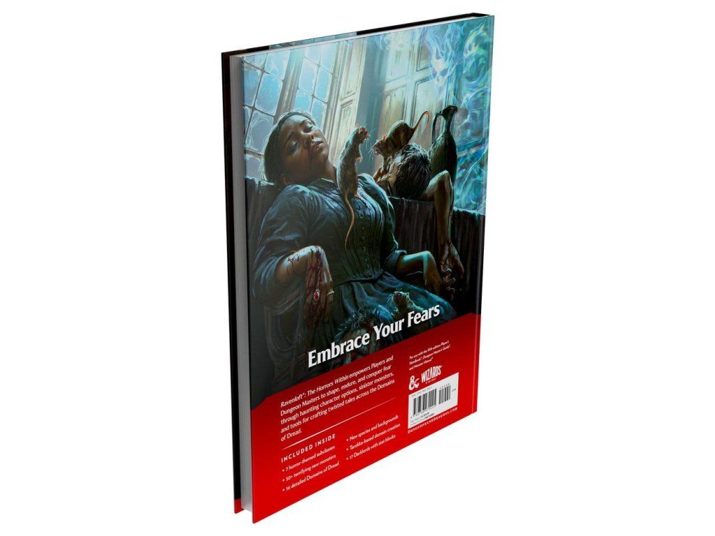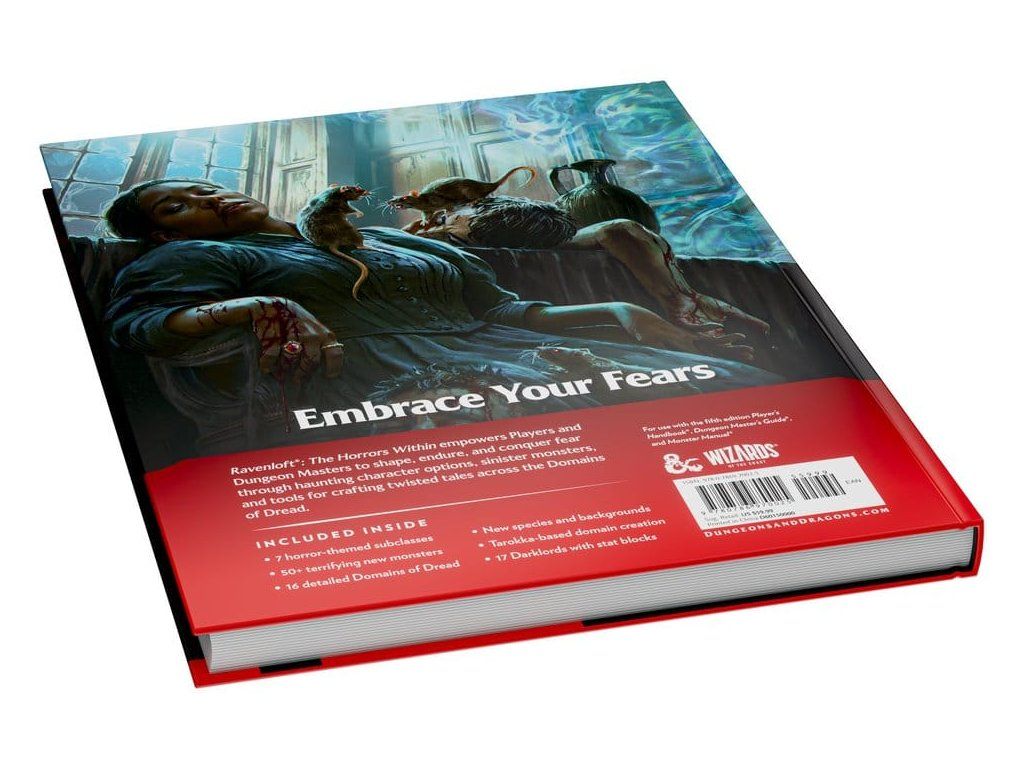 Přineste strach ke stolu s Ravenloft: The Horrors Within, ultimátním hororovým rozšířením. Jako Pán podzemí (Dungeon Master) jste mistr, který tahá za nitky — ovládáte různé žánry hrůzy, stinné Domény hrůzy, zlovolné Temné pány a groteskní příšery jako nástroje strachu ve své kampani teroru. V tomto prokletém trezoru vaši hráči odhalí nekrotické nové podtřídy, děsivá pozadí a nadpřirozené kletby. Ať se stane cokoli, jen jedno je jisté: tohle je noční můra, ze které se vaše družina nemůže probudit... a vy máte kontrolu. Obsah: 7 podtříd s hororovou tematikou Nové rasy a pozadí Více než 50 děsivých nových monster Tvorba domén založená na Tarokce 16 podrobných Domén hrůzy 17 Temných pánů s herními statistikami