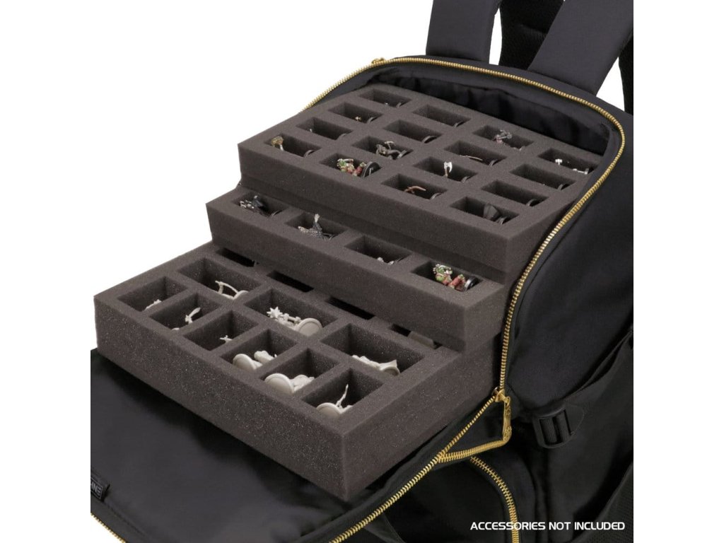 Batoh na uskladnění malovaných miniatur Enhance nabízí cestovní přátelské uskladnění pro bezpečný transport figur a připravené použití pro hobby. - Vejde se do něj více než 101 miniatur - Dvě pěnové podložky pro figurky o velikosti 2-2,5 cm - Tři pěnové podložky pro figurky o velikosti 3-4 cm - Upravitelná podložka pro větší modely - Speciální sloty pro 12 štětců a 30 barev