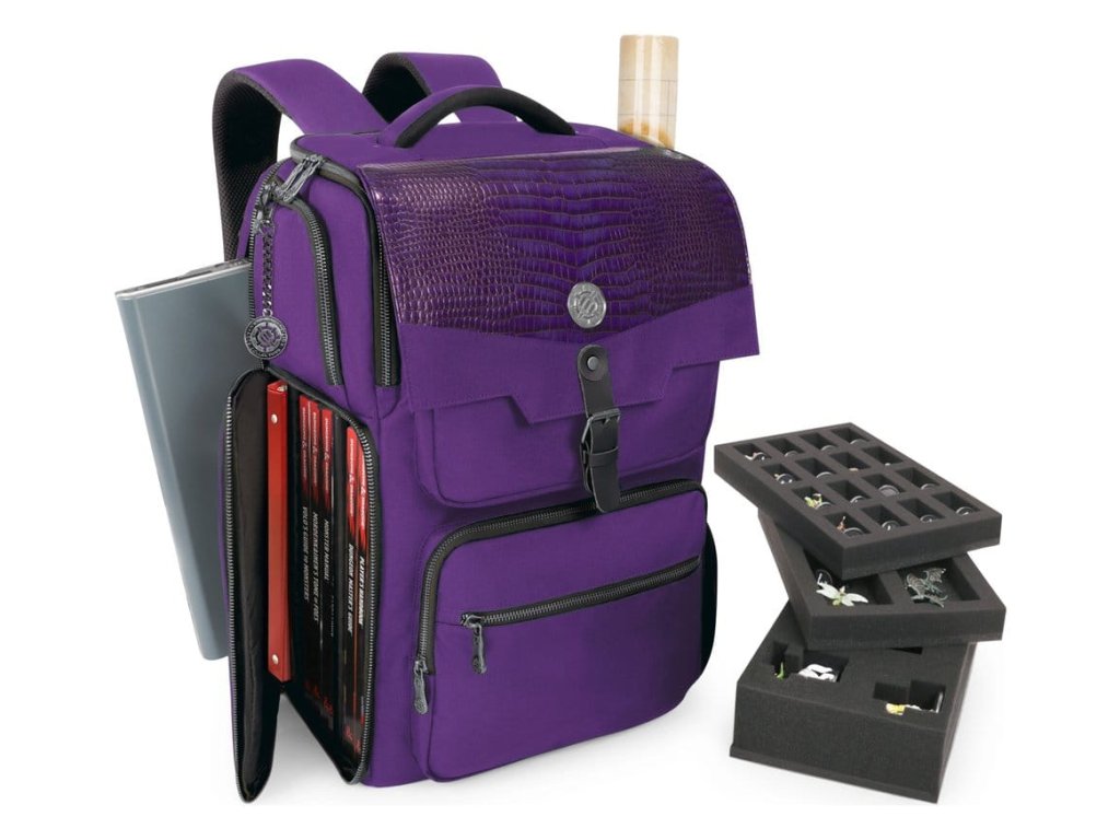 Sběratelský batoh RPG Enhance je nejvyšší organizátor TTRPG a cestovní taška, navržený pro uskladnění všech vašich dobrodružných pokladů. - Dostatek prostoru pro knihy, desky, DM obrazovky a figurky - Polstrovaná kapsa pro notebook nebo tablet - Vestavěné polstrované popruhy pro pohodlný transport
